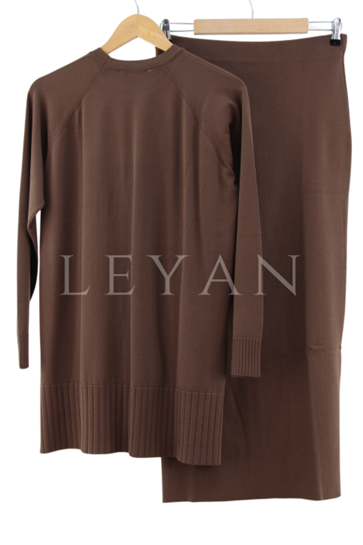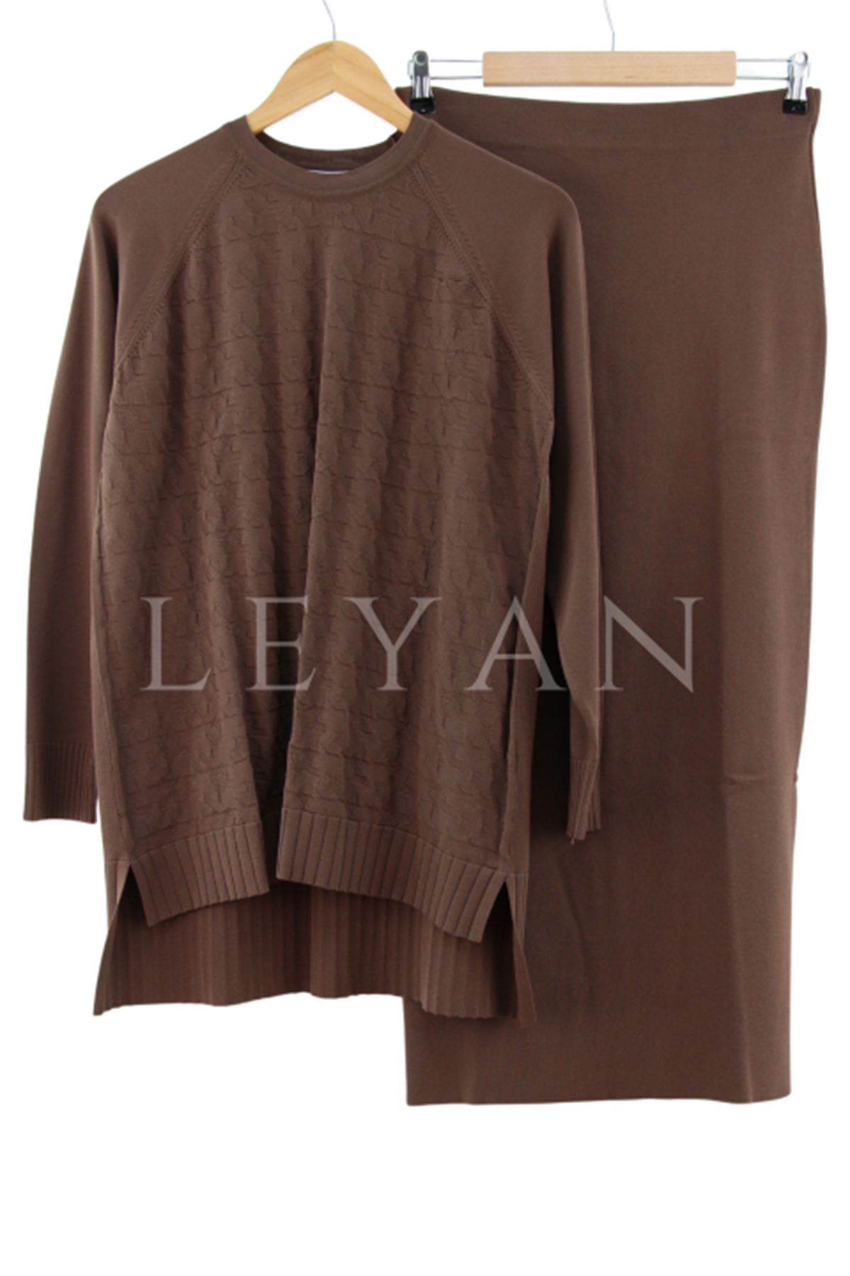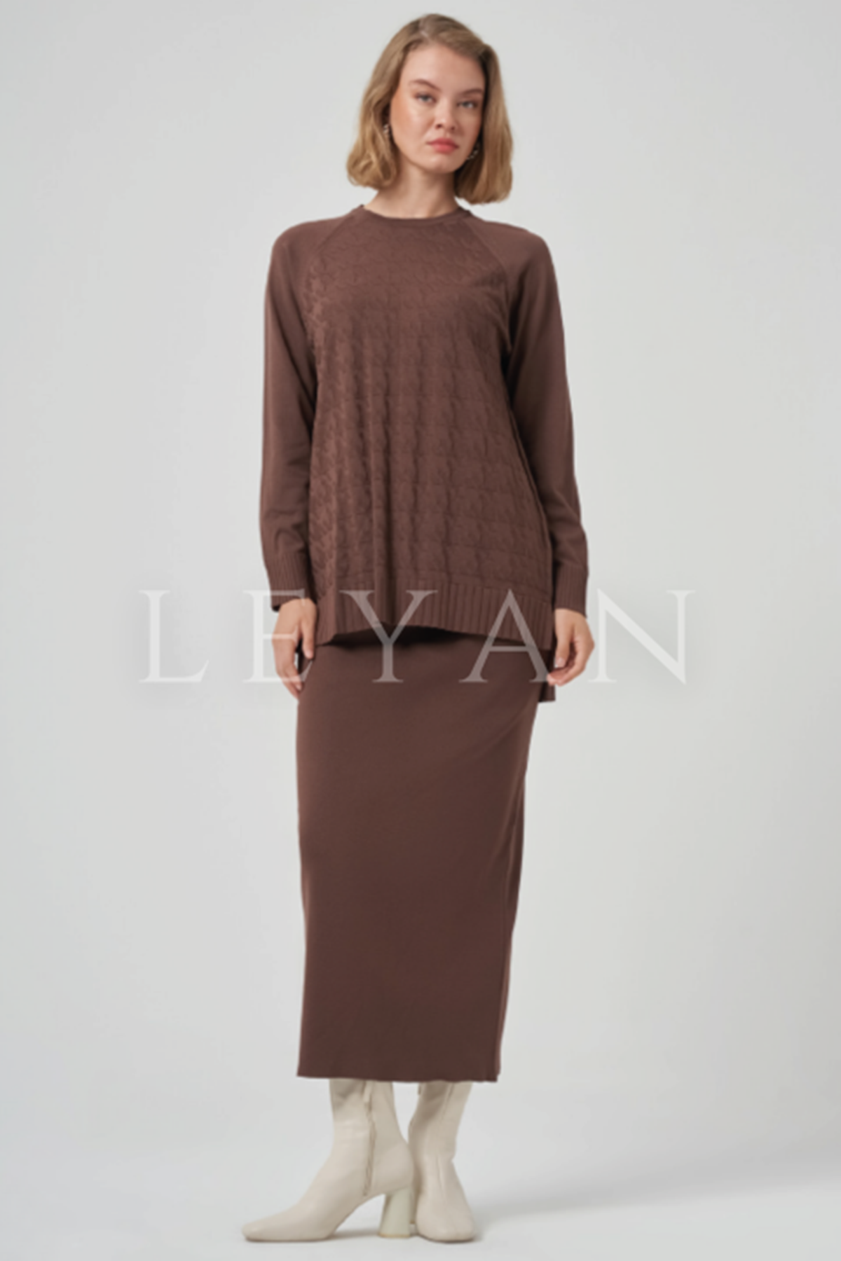 Nuss Kazayağı Desen Etekli Takım- LYN04205 Kahve