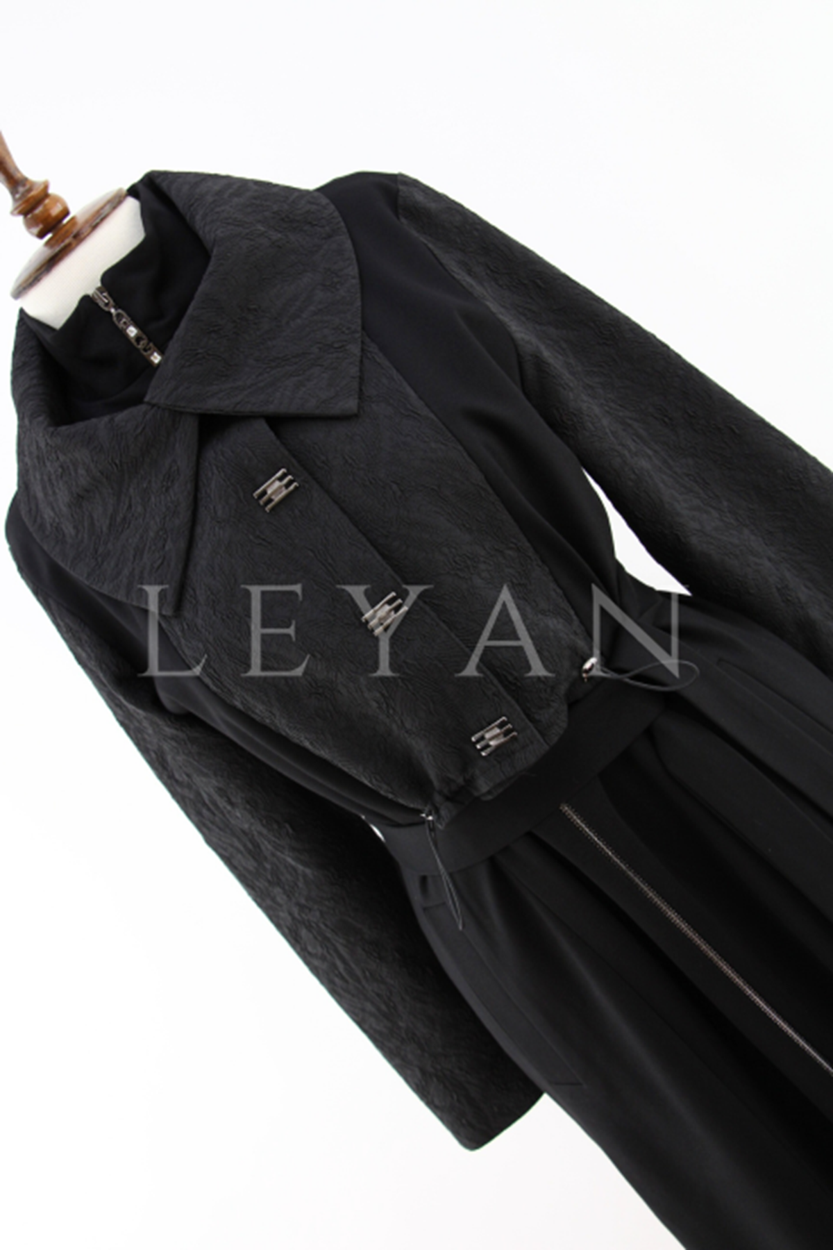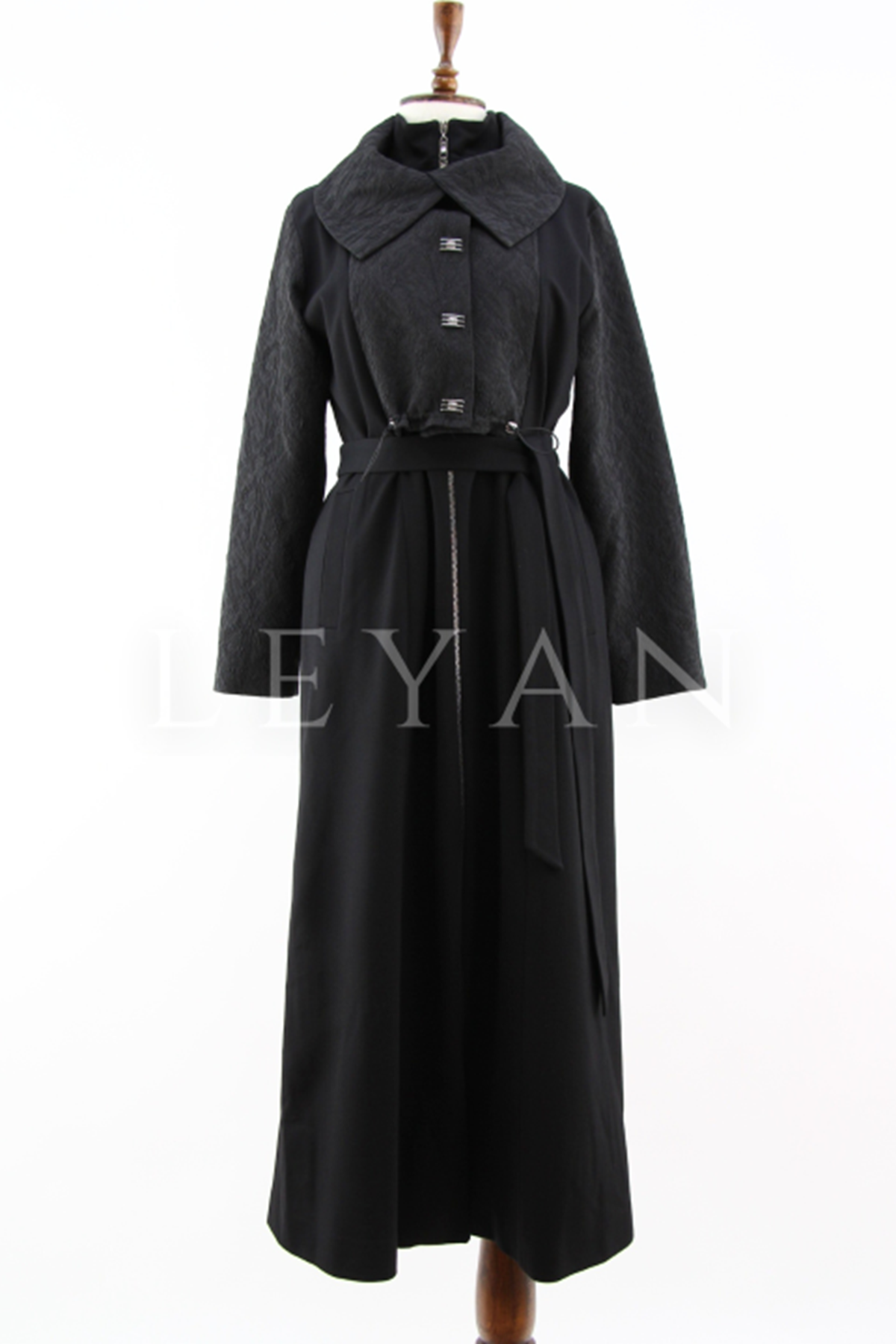 Dule Simli Uzun Ceket- LYN03984 Siyah