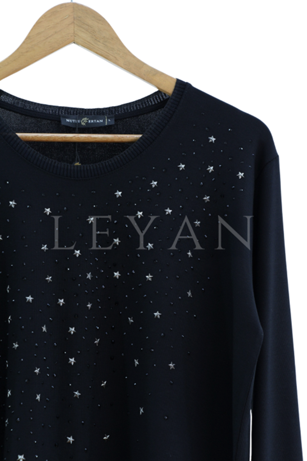 Mutlu Ertan Yıldız Taşlı Bluz- LYN04244 Siyah