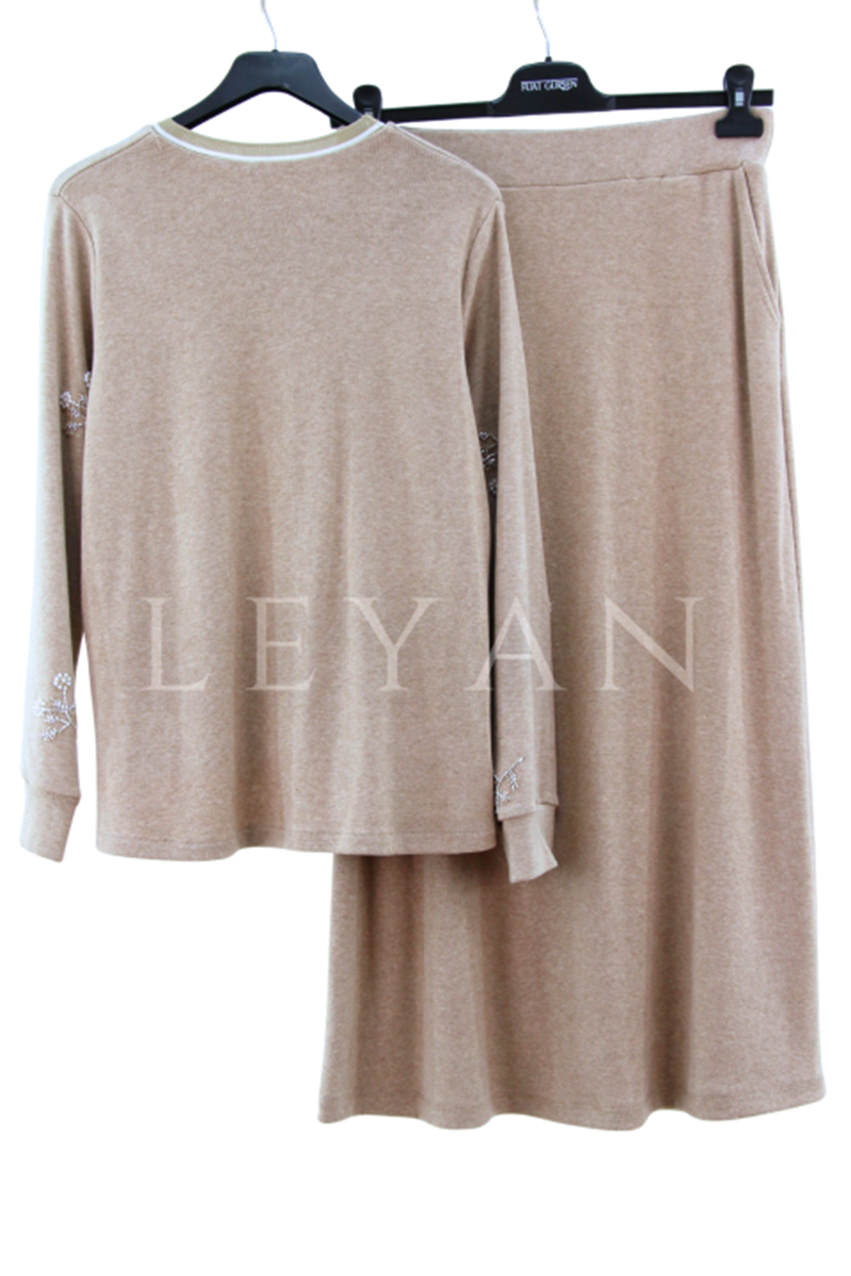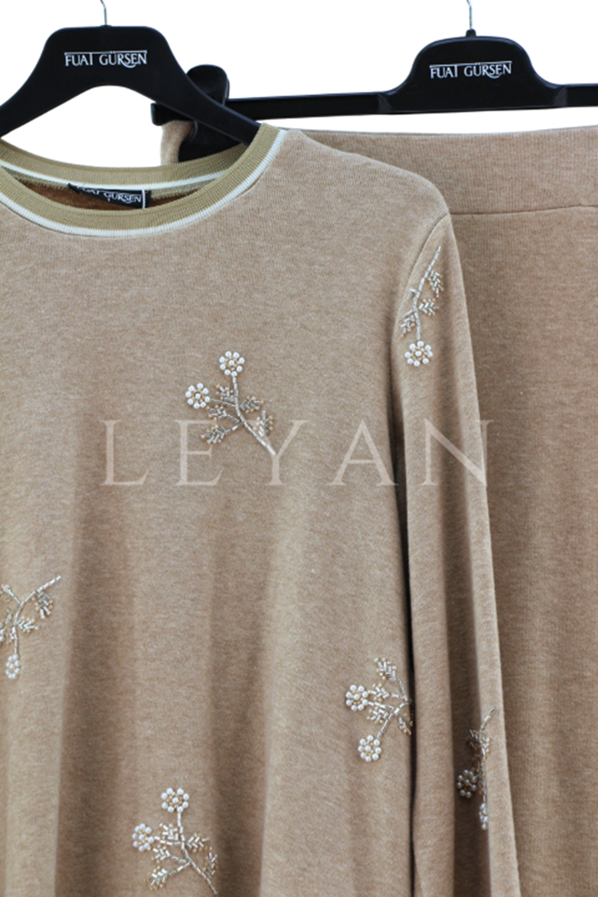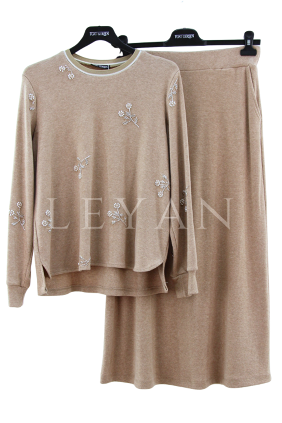 Fuat Gürşen Çiçek Figürlü Etekli Takım- LYN04182 Bej