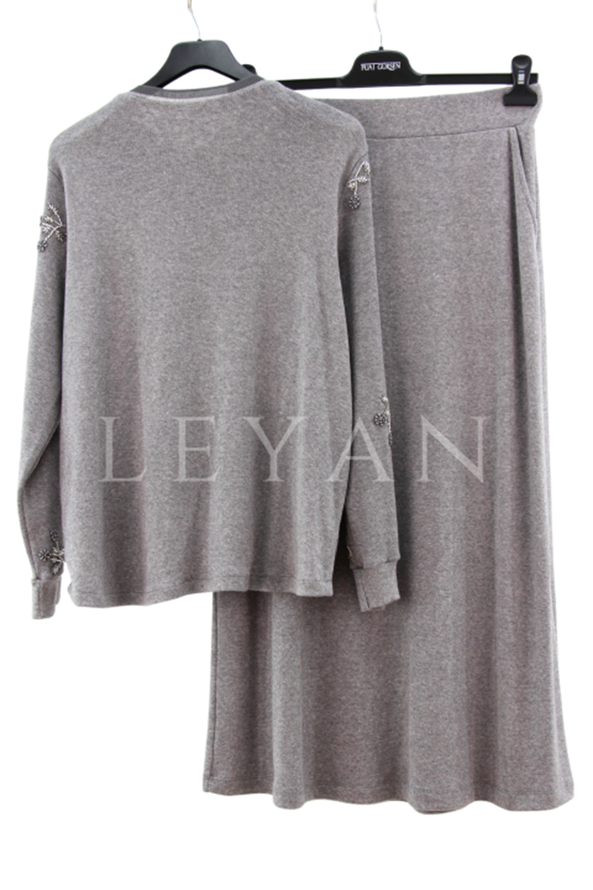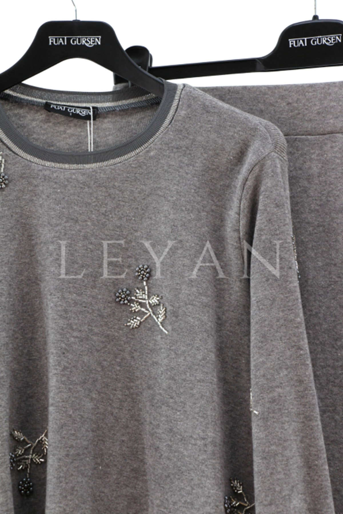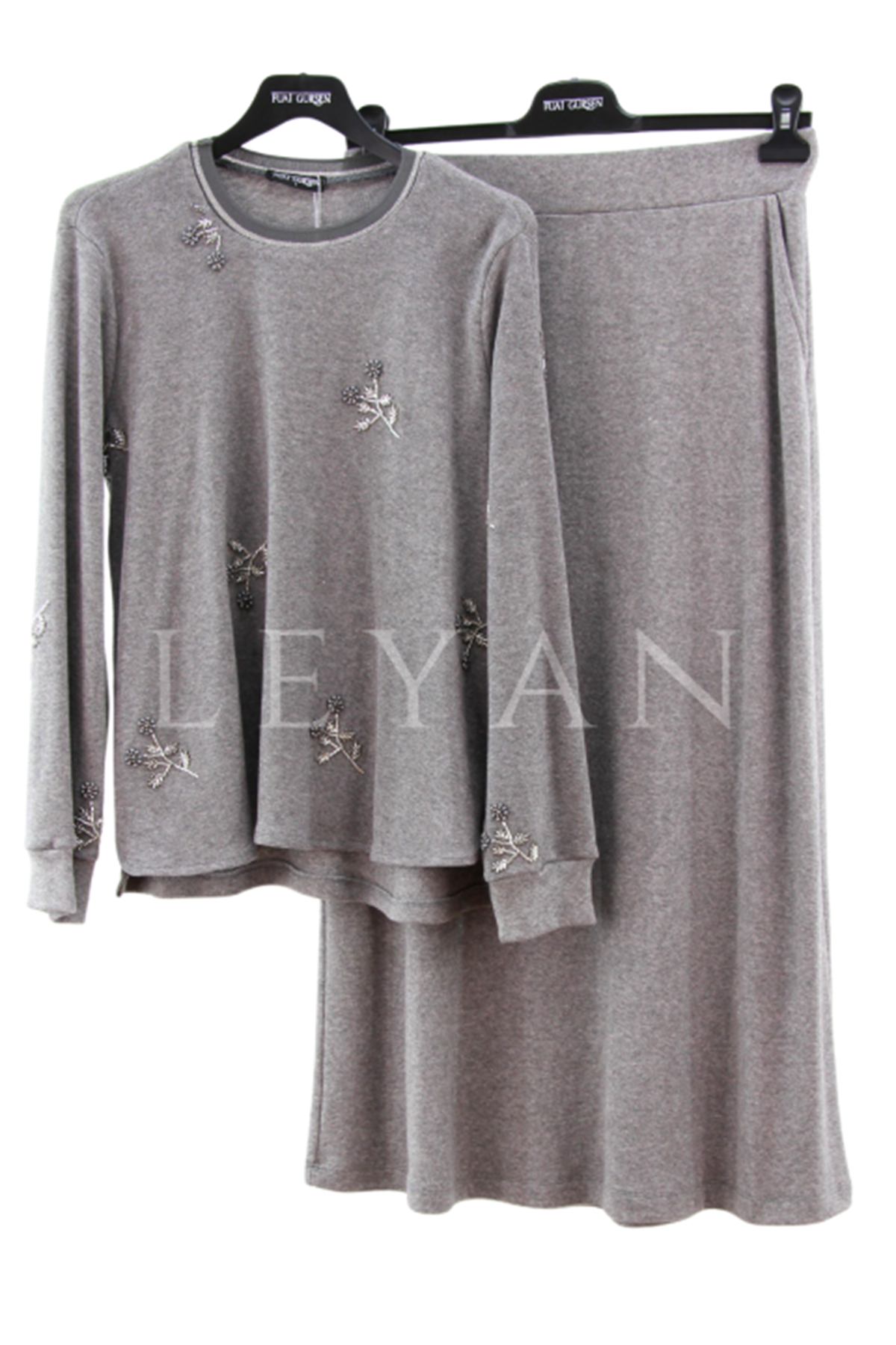 Fuat Gürşen Çiçek Figürlü Etekli Takım- LYN04182 Gri