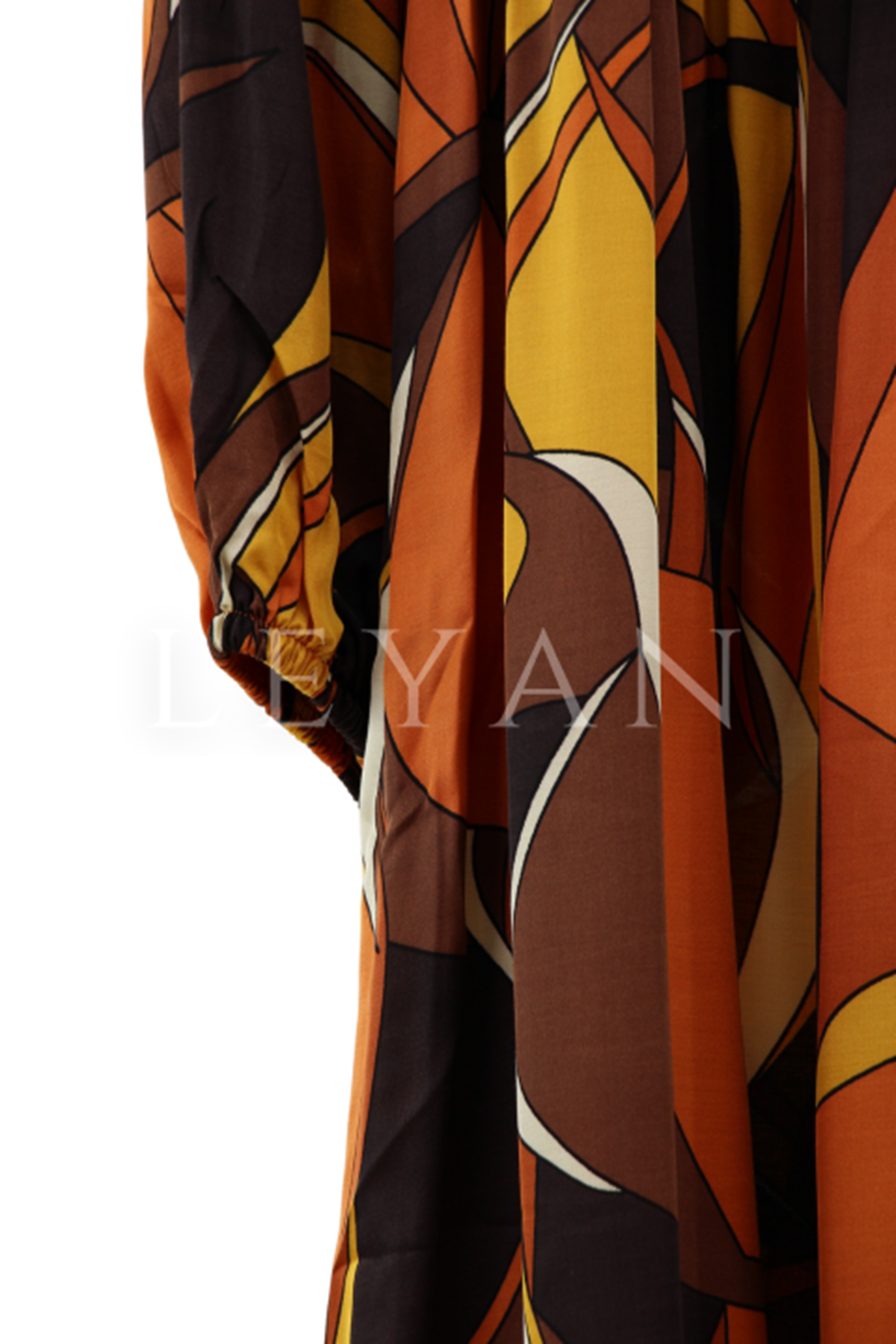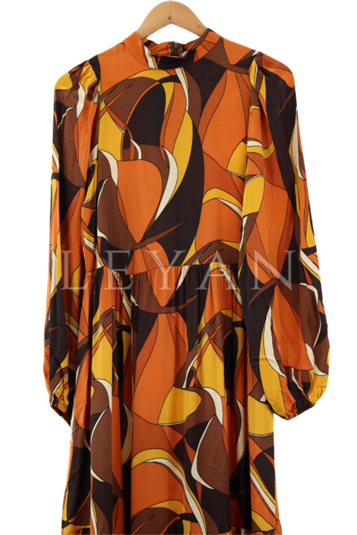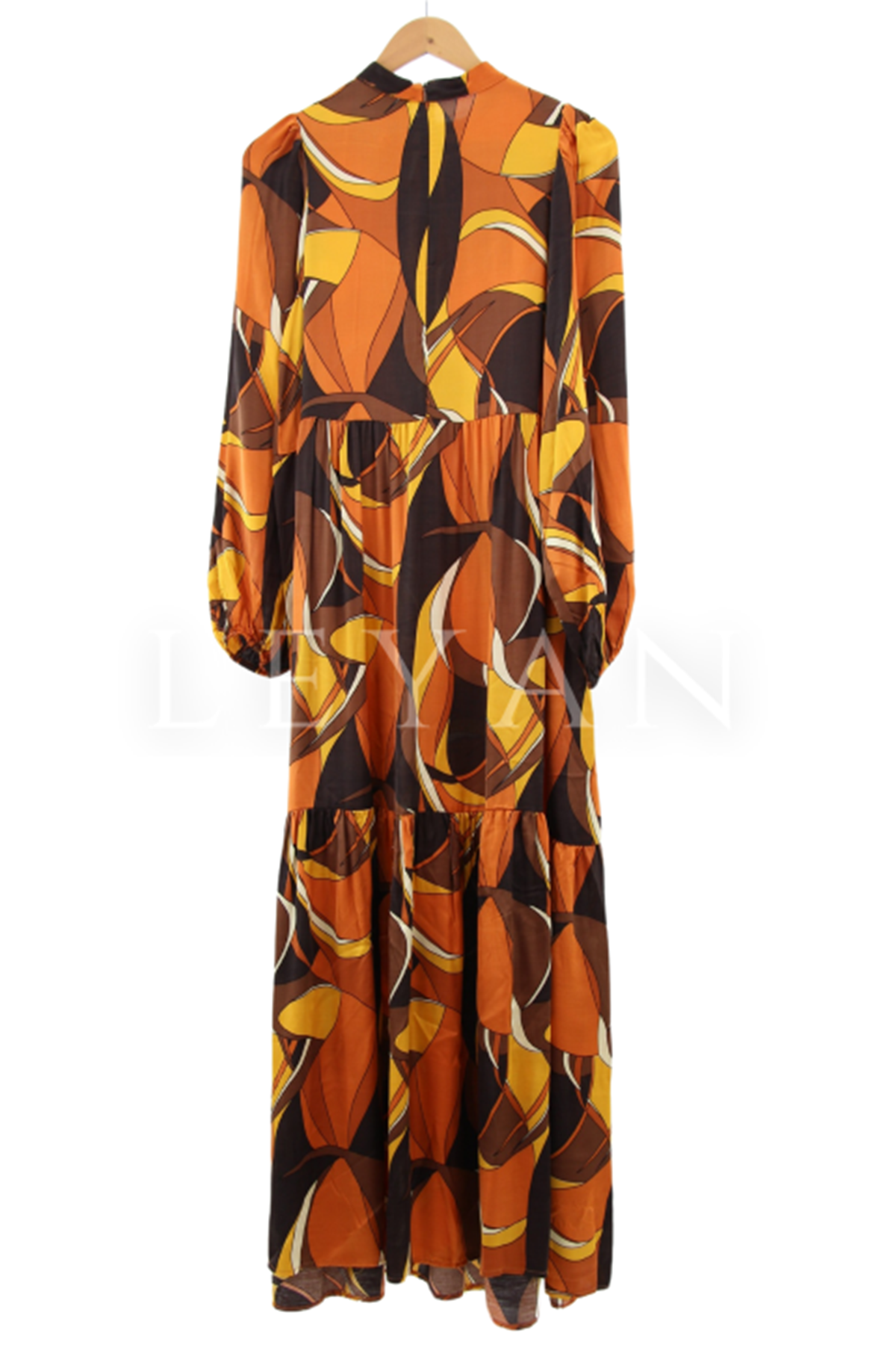 Armine Trend Desenli Viskon Elbise- LYN02678 Taba