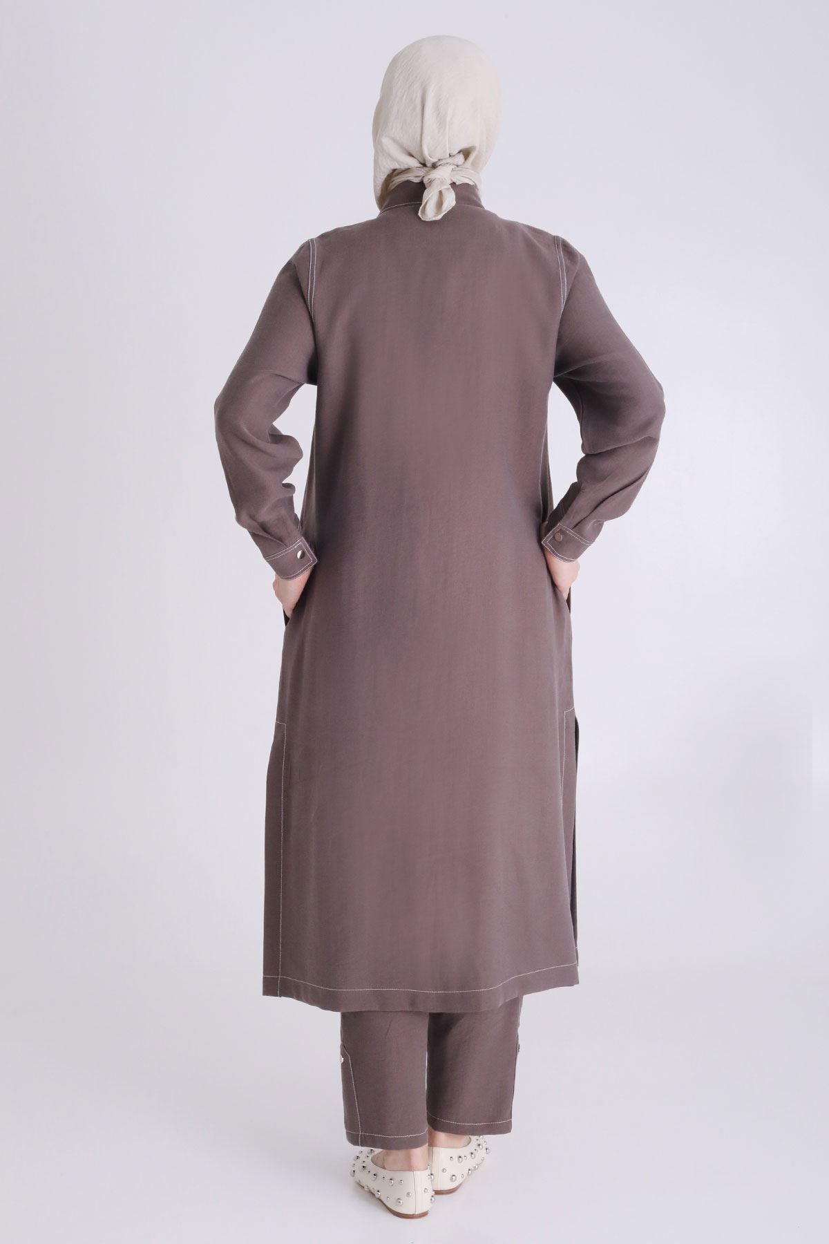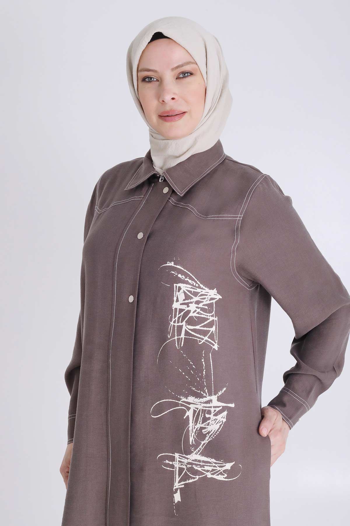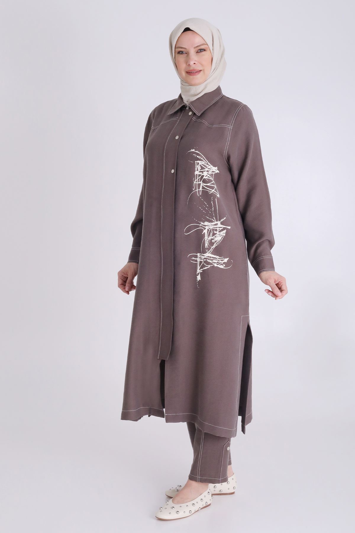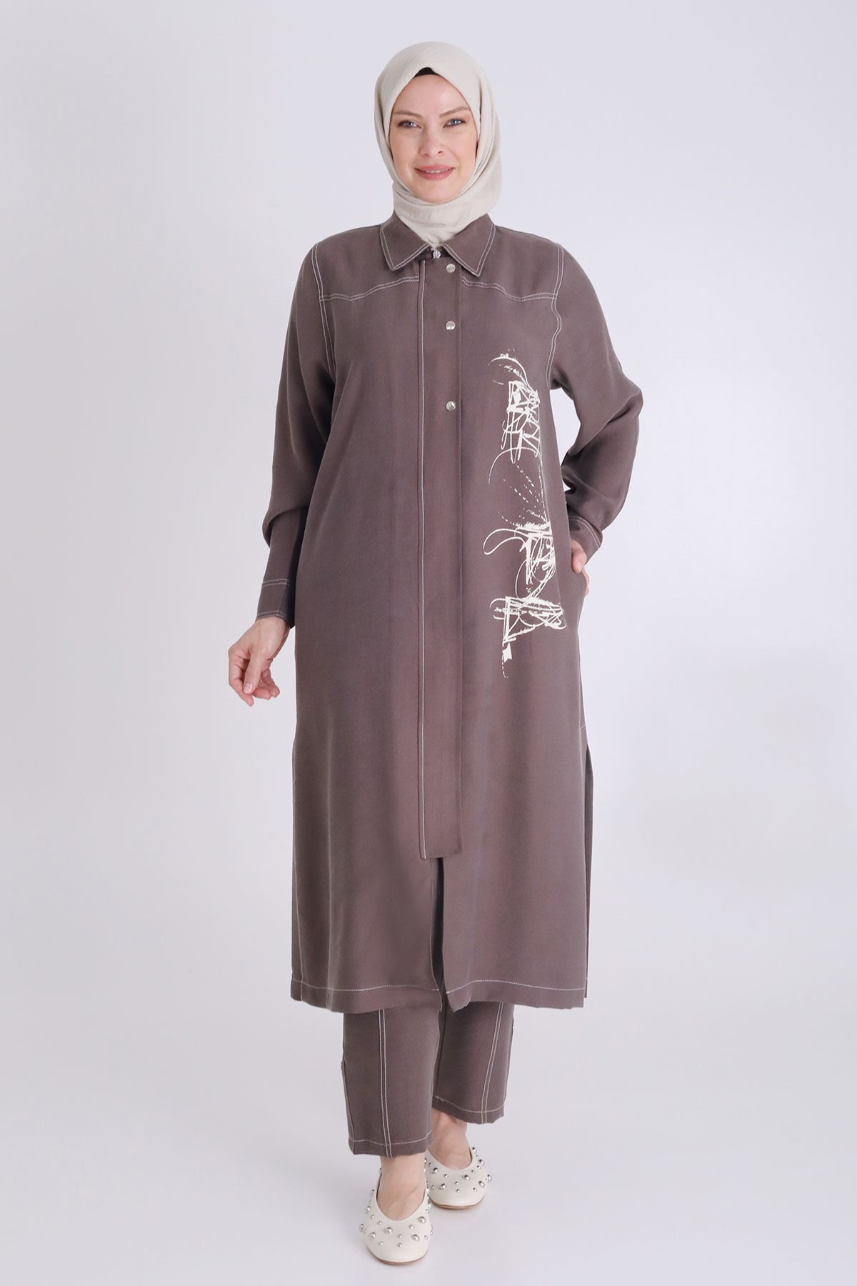 Behrem Baskı Detaylı İkili Takım- LYN03679 Kahve