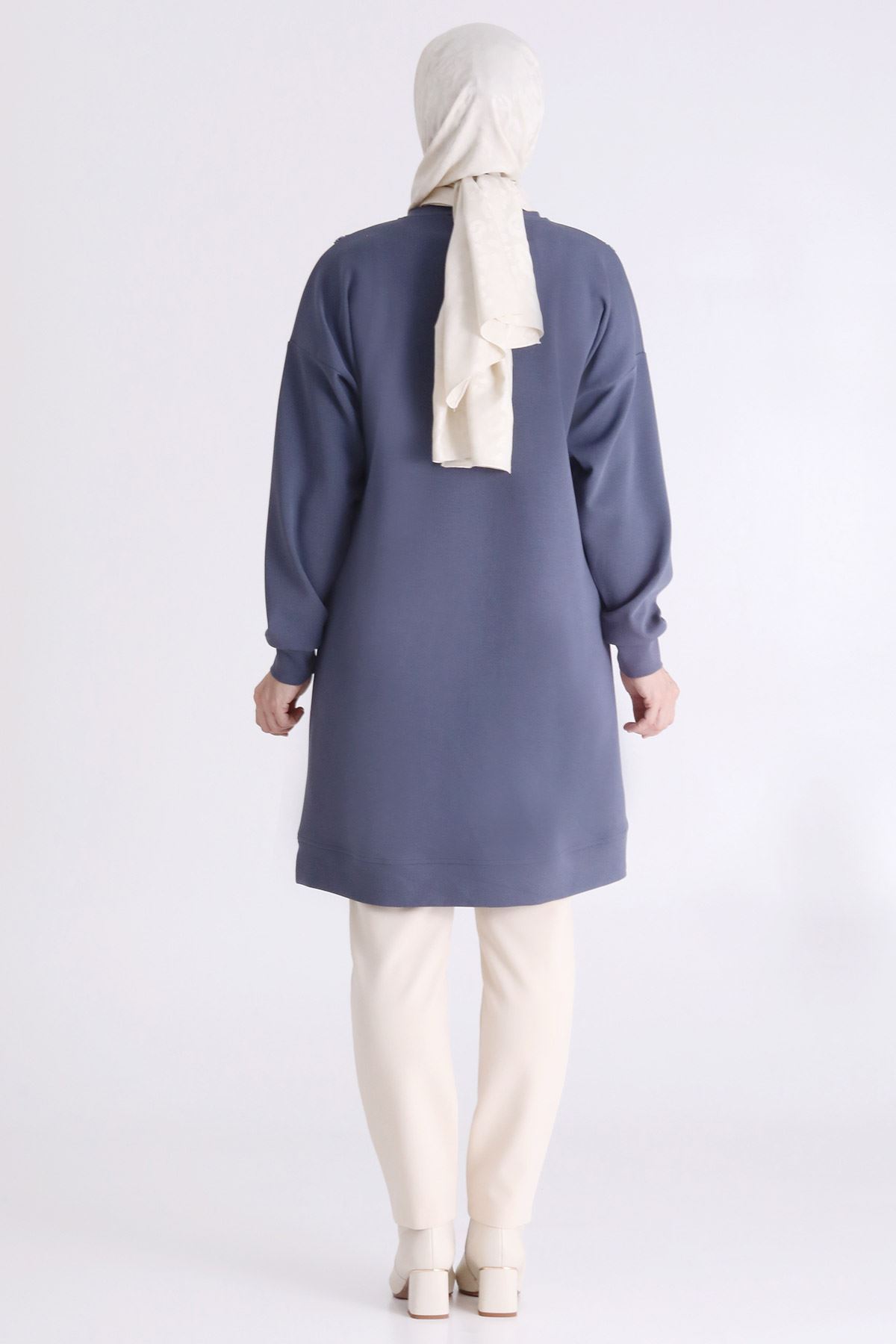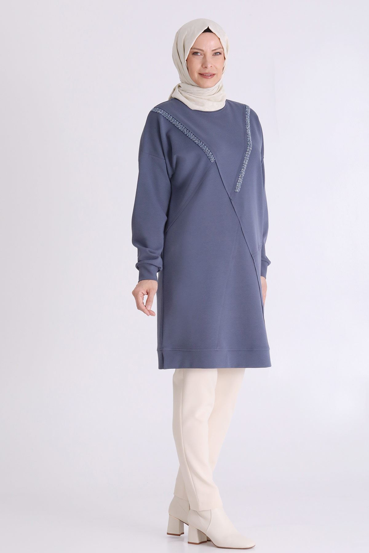 Behrem Boncuk İşlemeli Tunik- LYN03986 Duman Mavi