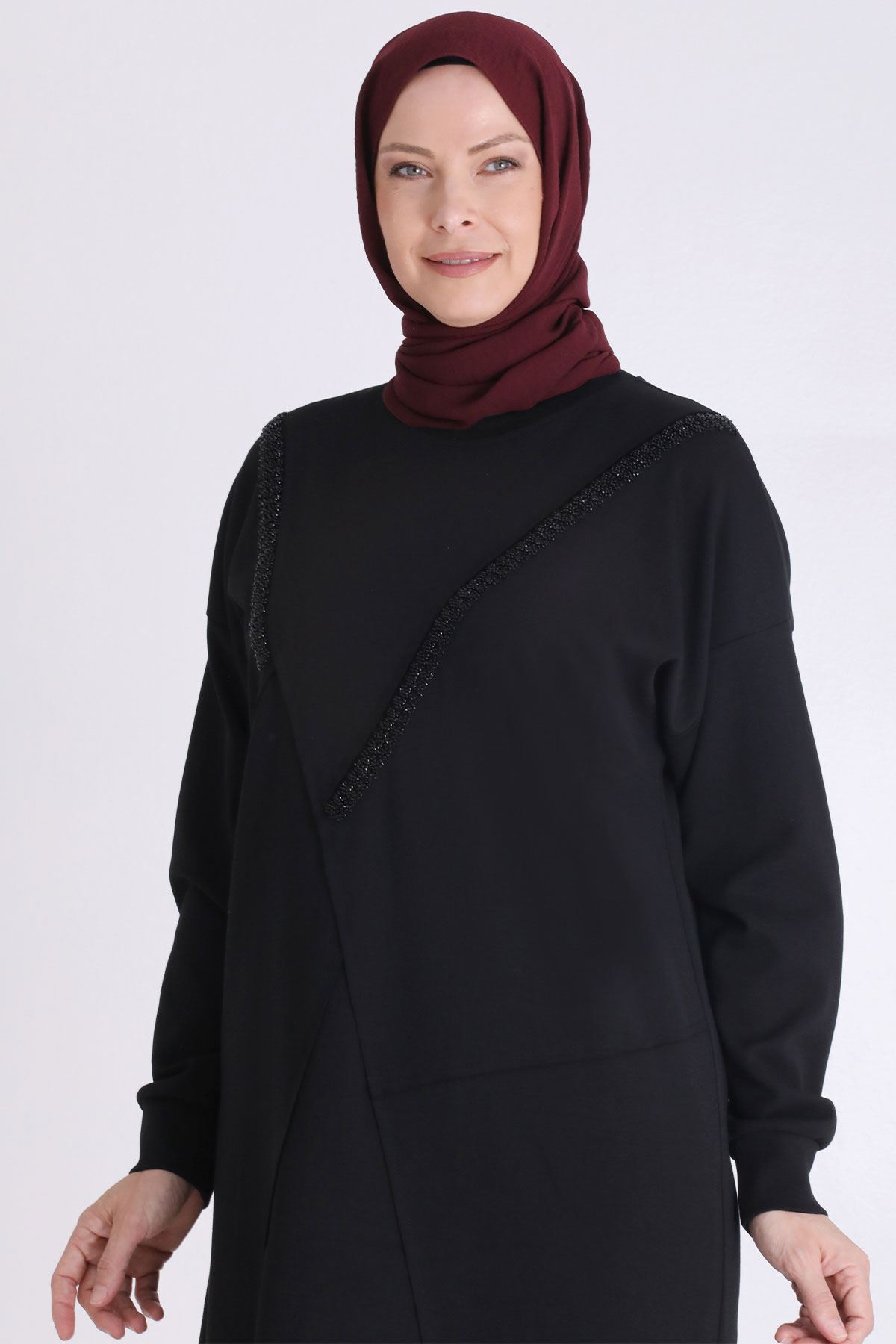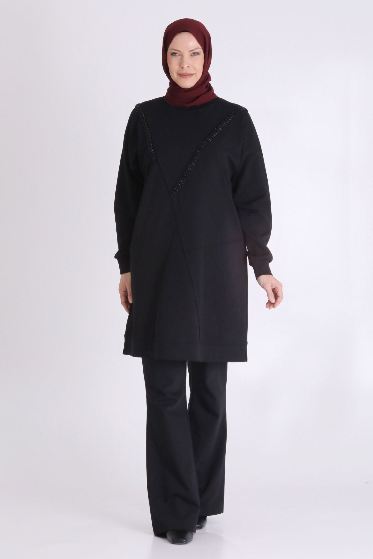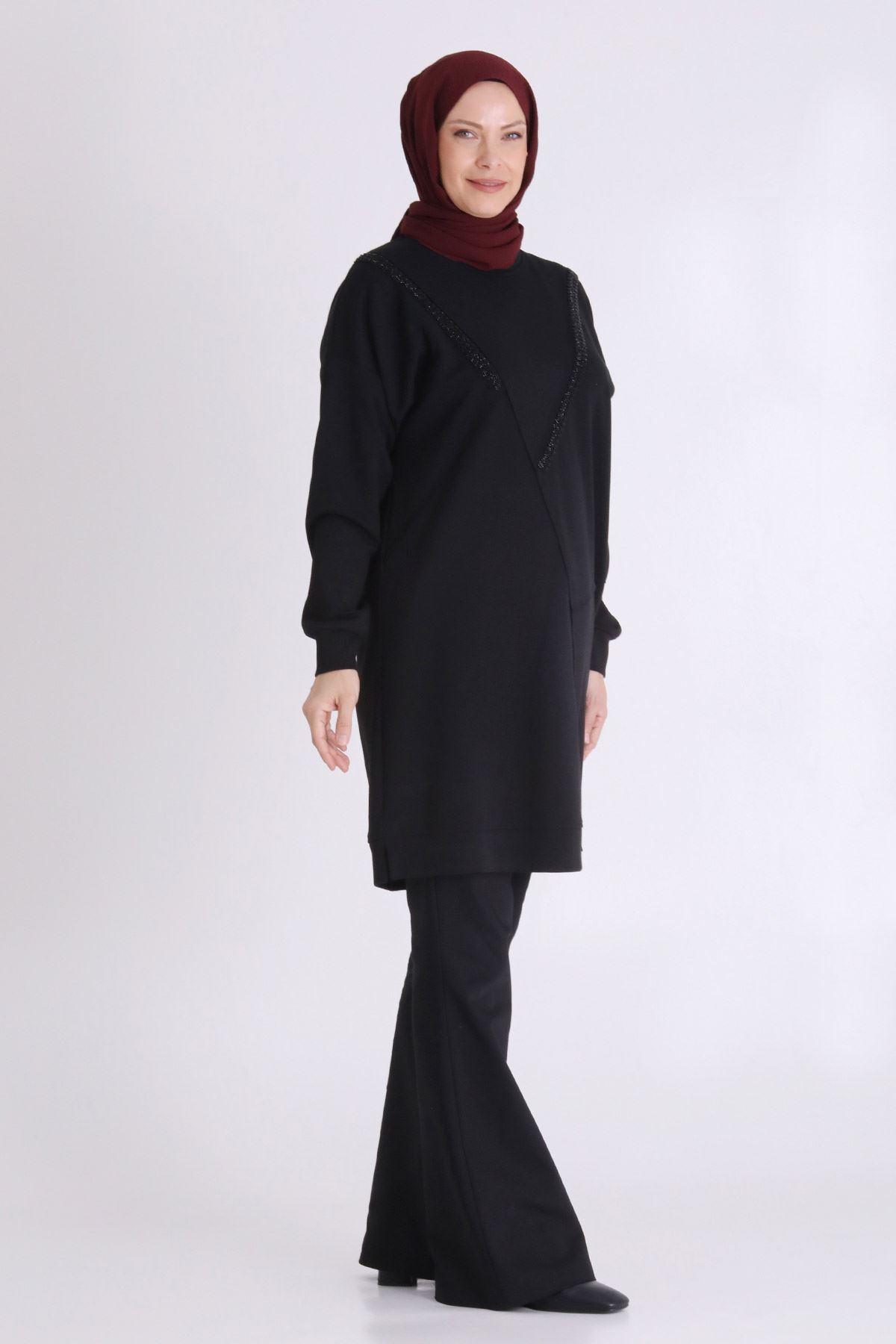 Behrem Boncuk İşlemeli Tunik- LYN03986 Siyah