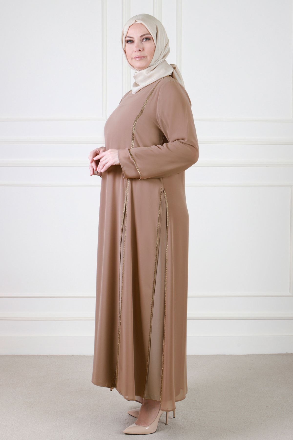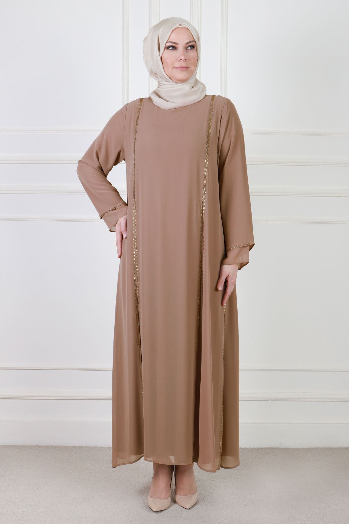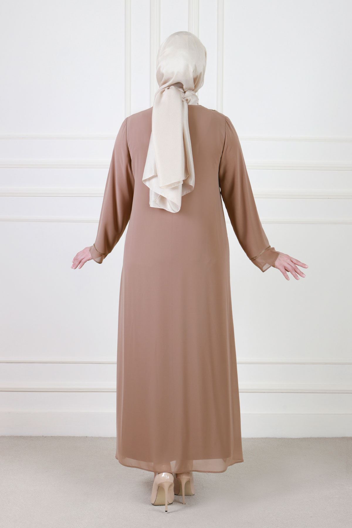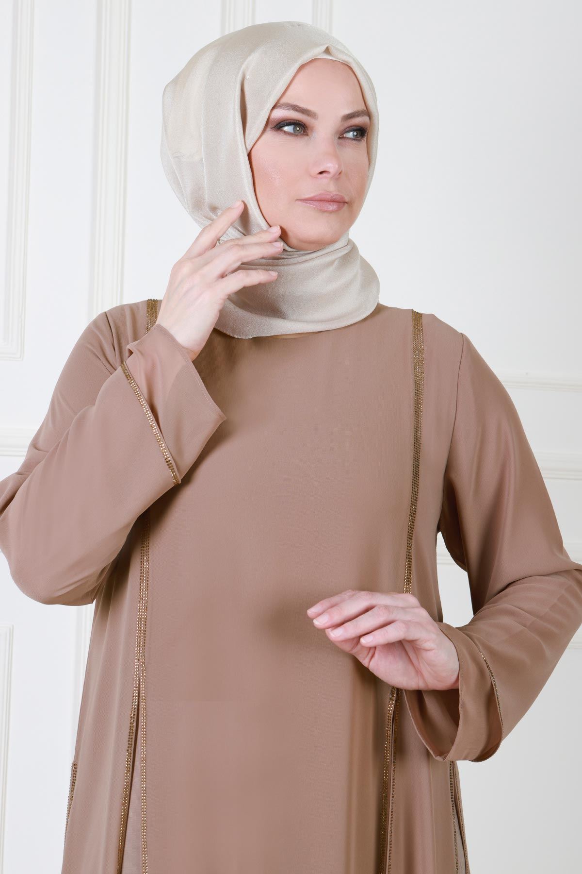 Ürün Detayları: Ürünün İçi Sandy Dışı Şifon Kaplama Olup Arka Yakada Düğme Detayı Bulunmaktadır. Yırtmaç Kenarları Sıra Taş Detaylarıyla Hareketlendirilmiştir.