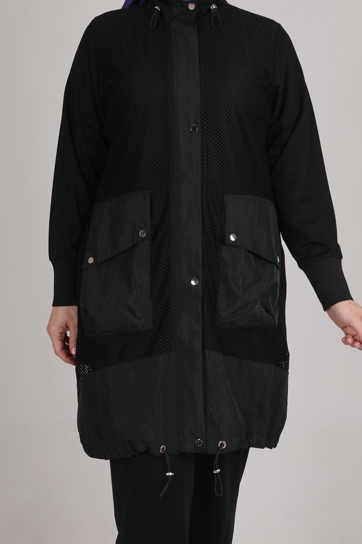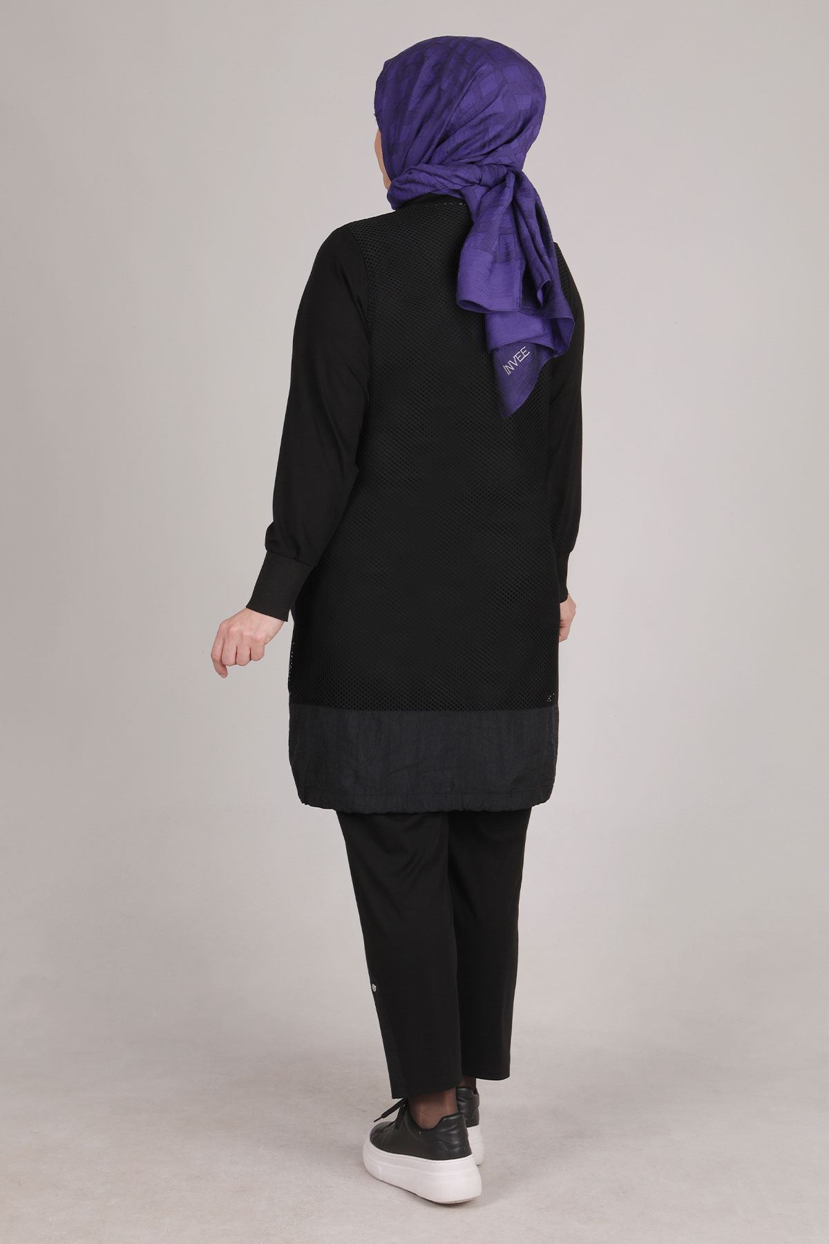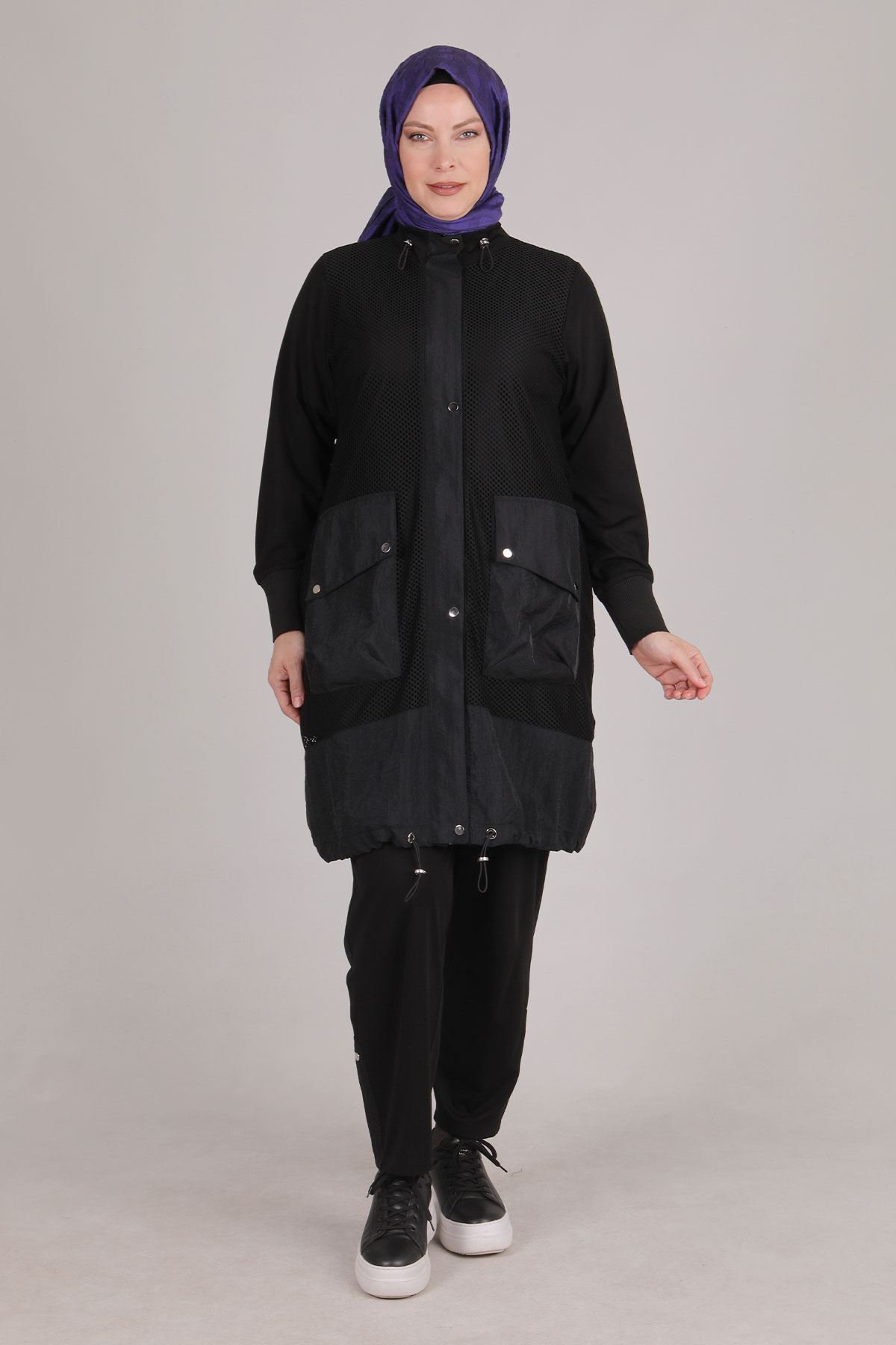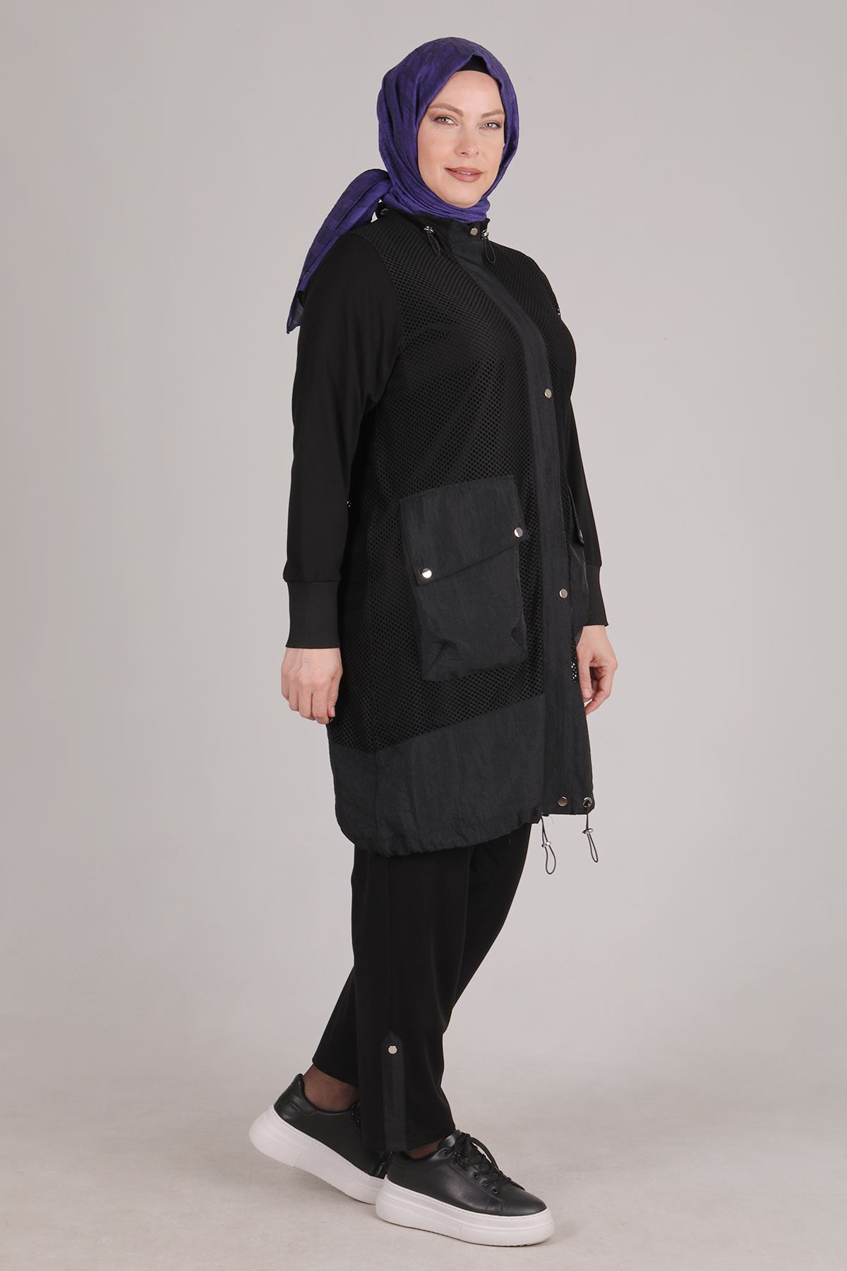 Büyük Beden Tesettür File Ceketli Pantolonlu Üçlü Takım 70014