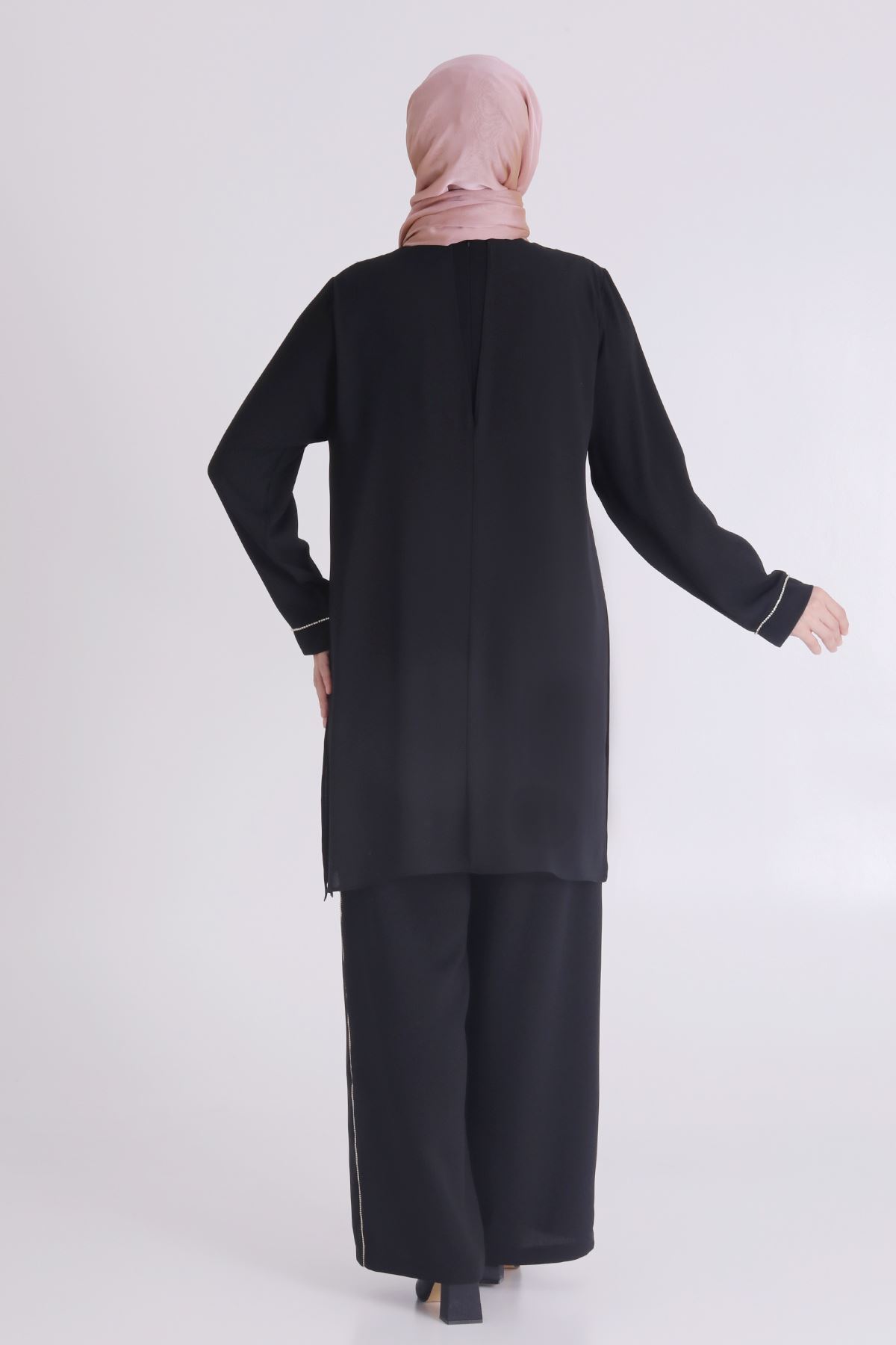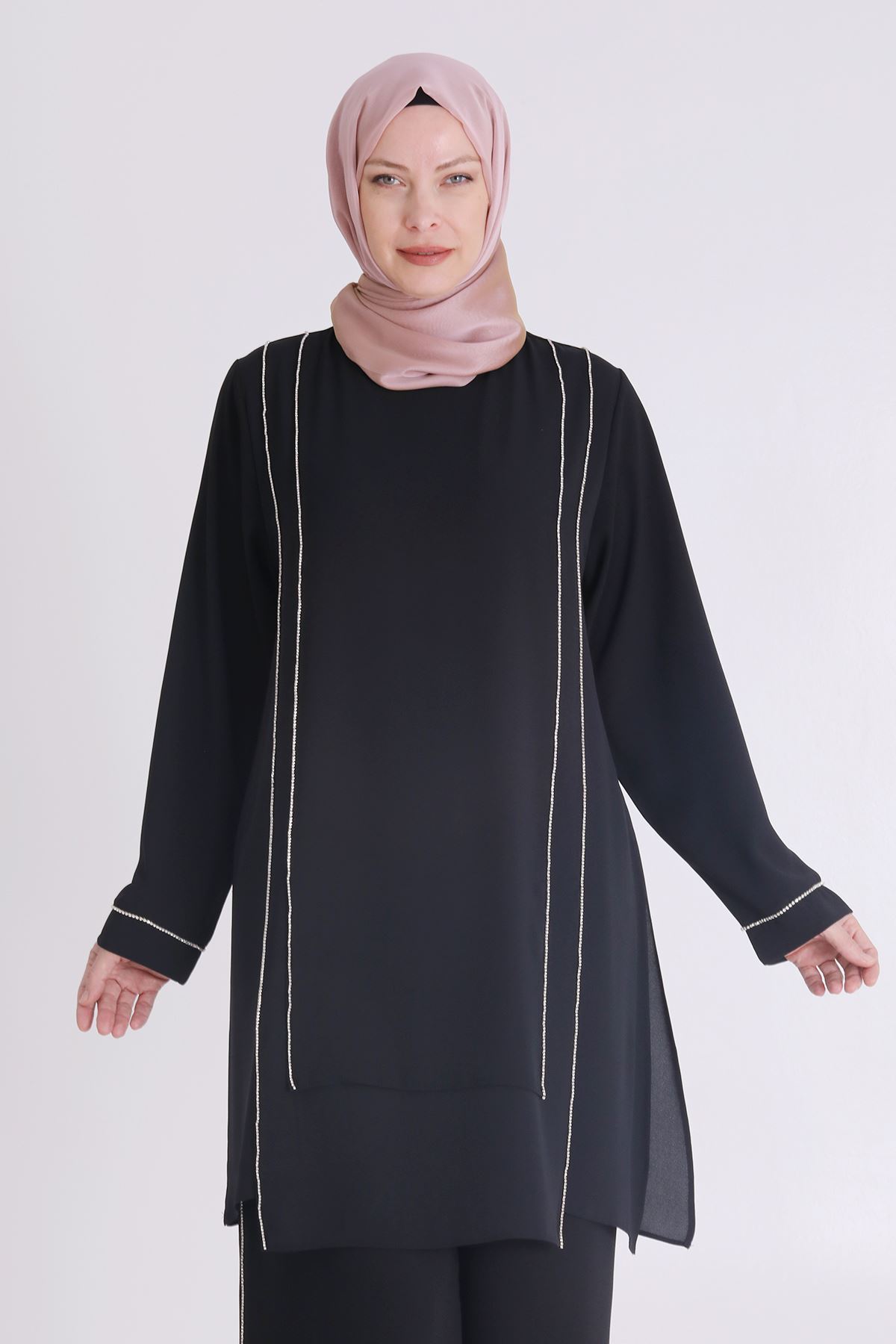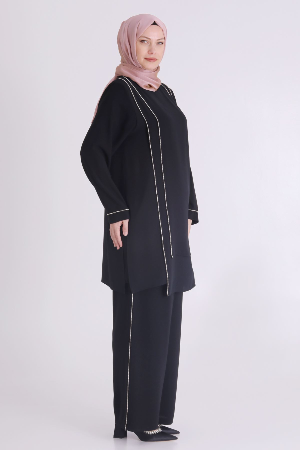 Büyük Beden Tesettür Krep Taşlı Pantolonlu Takım 60022