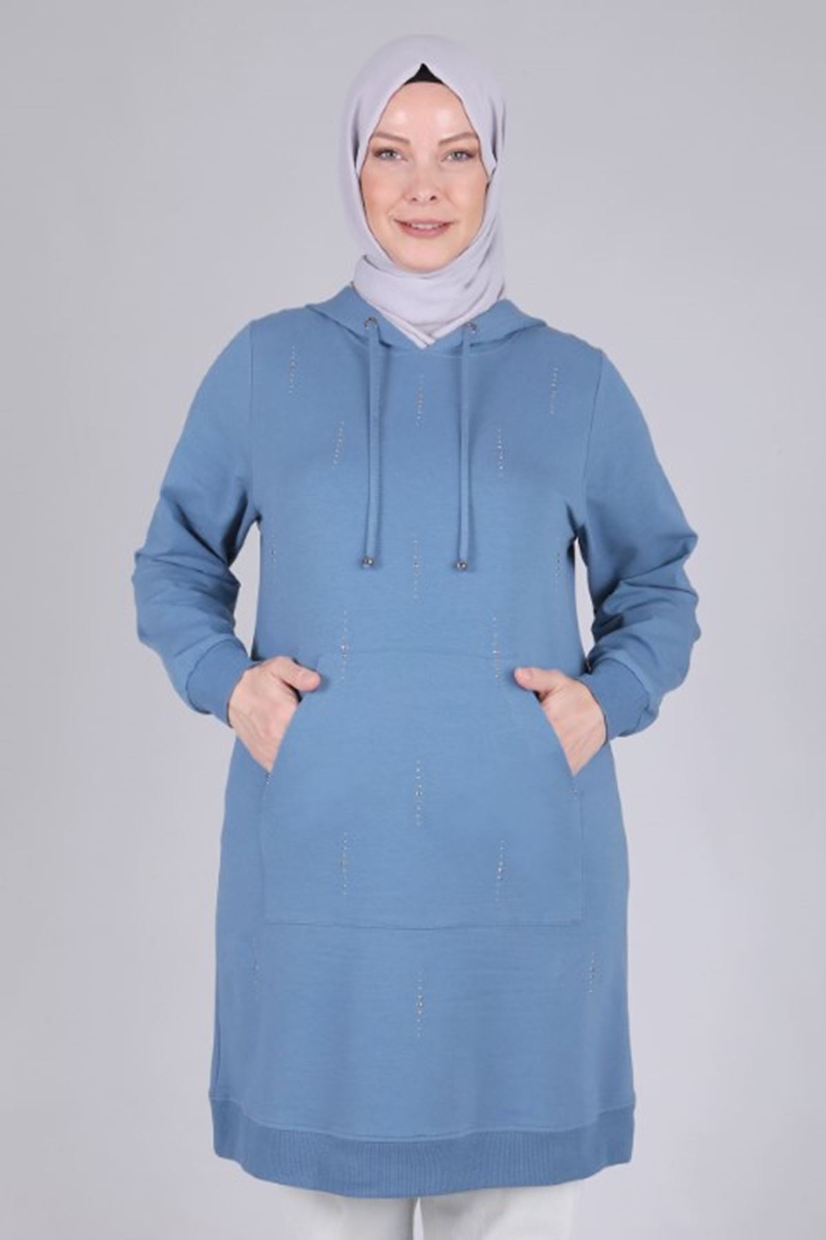 Büyük Beden Tesettür Kapüşonlu Tunik 2042