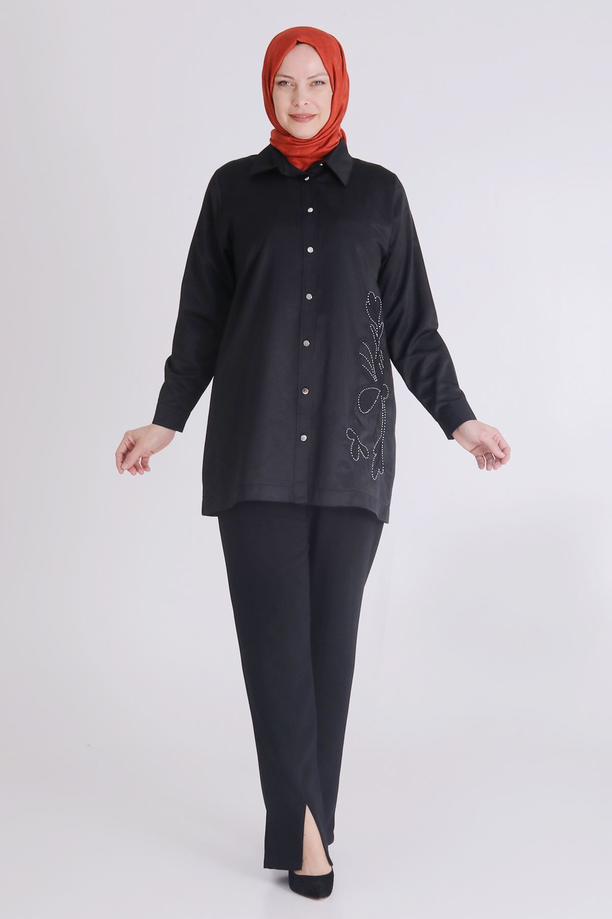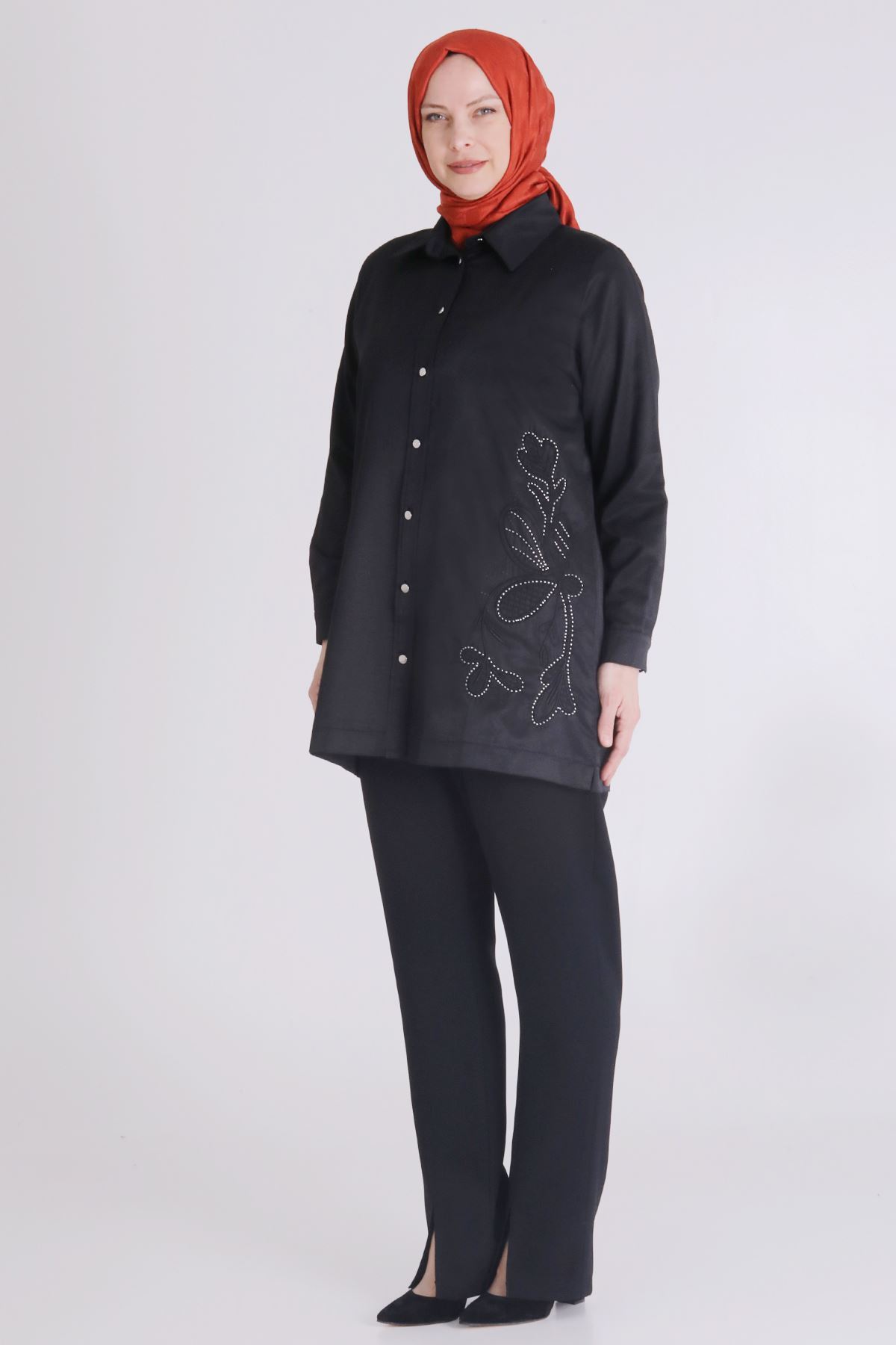 Büyük Beden Tesettür Nakışlı Poplin Tunik 23029
