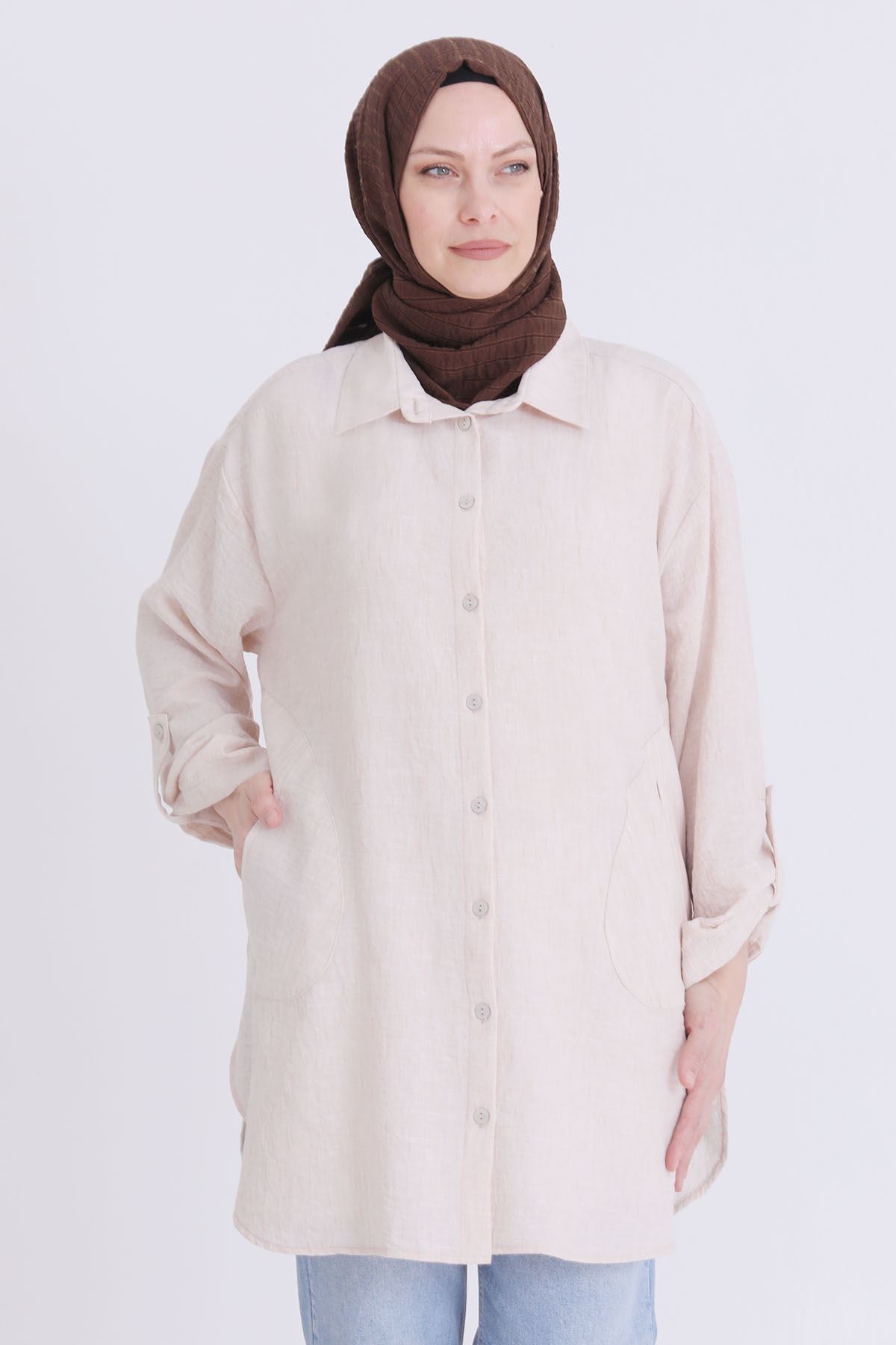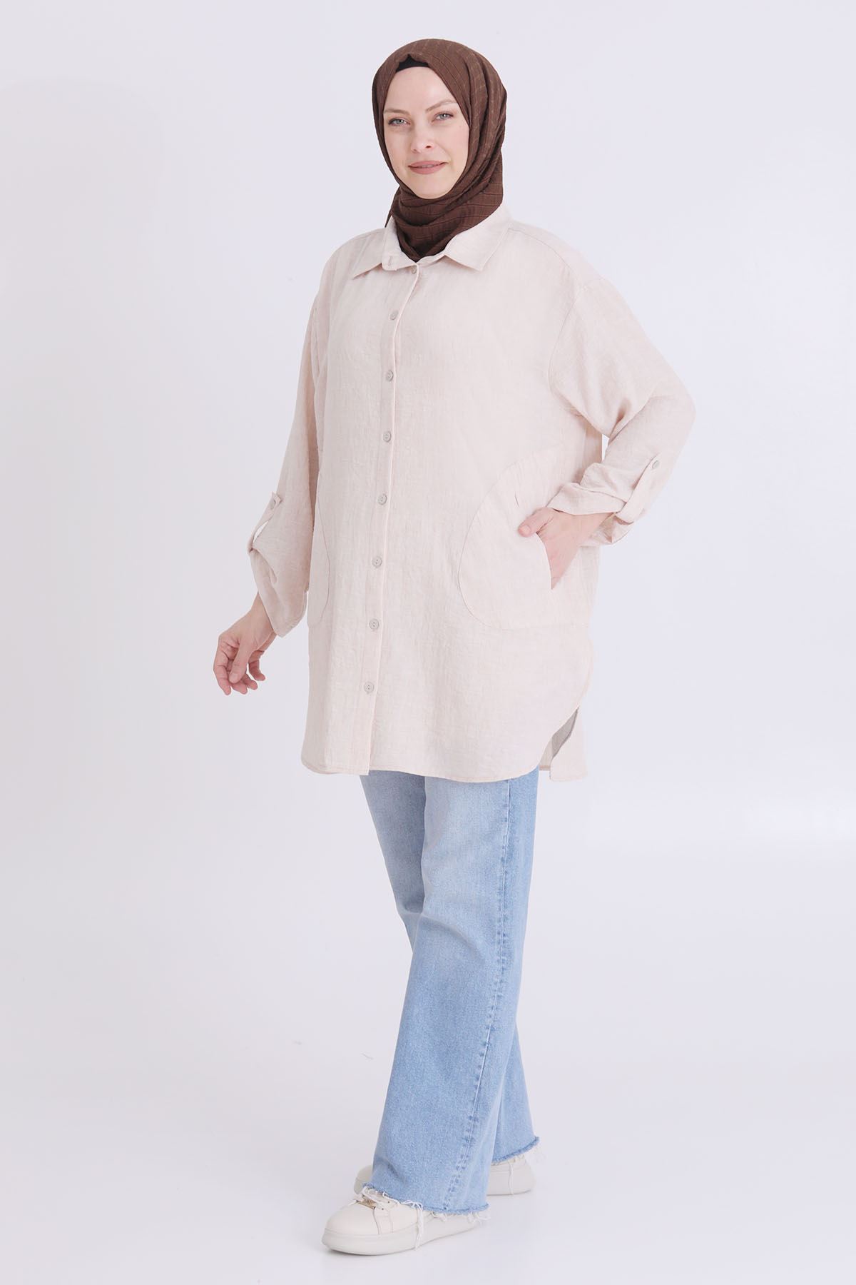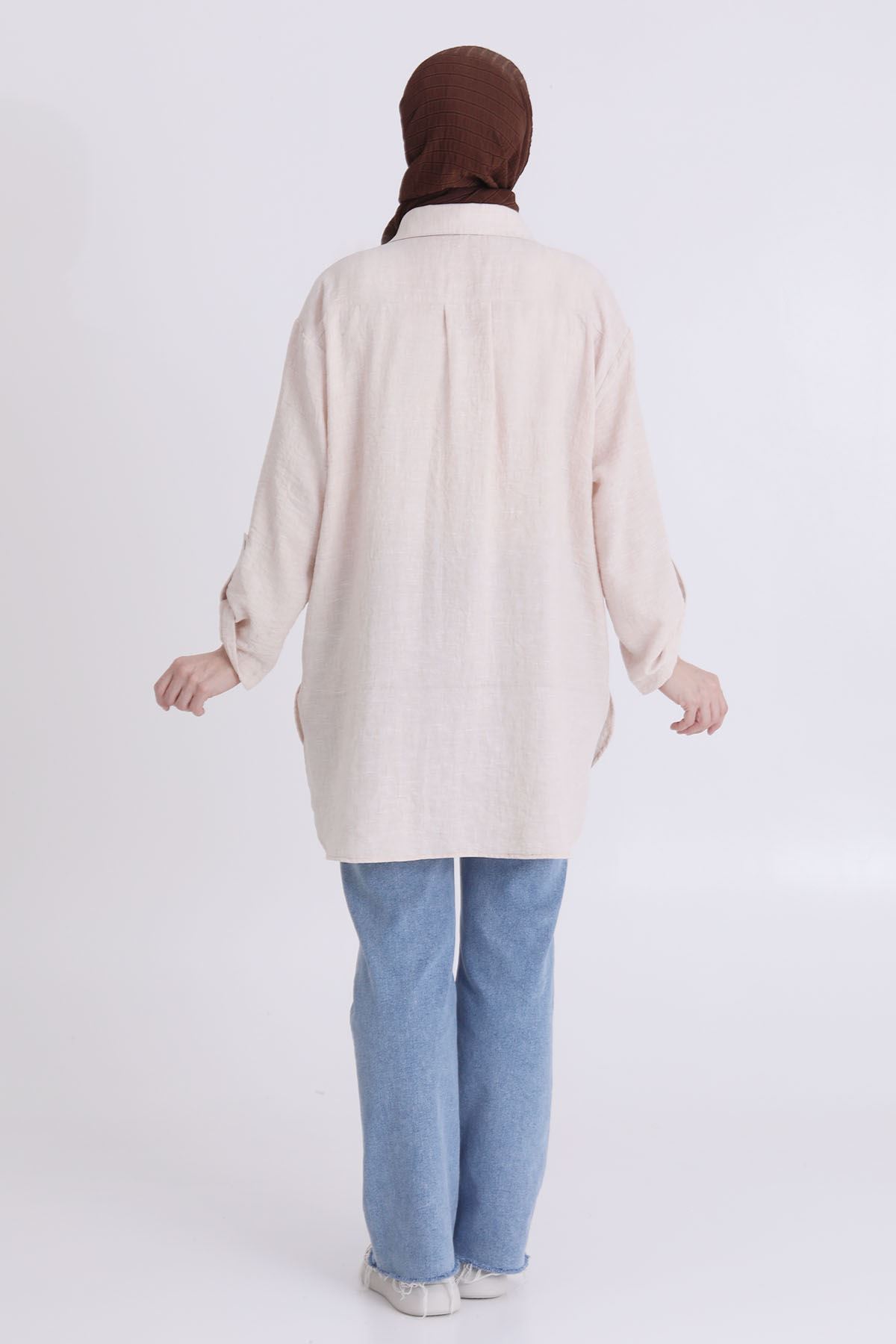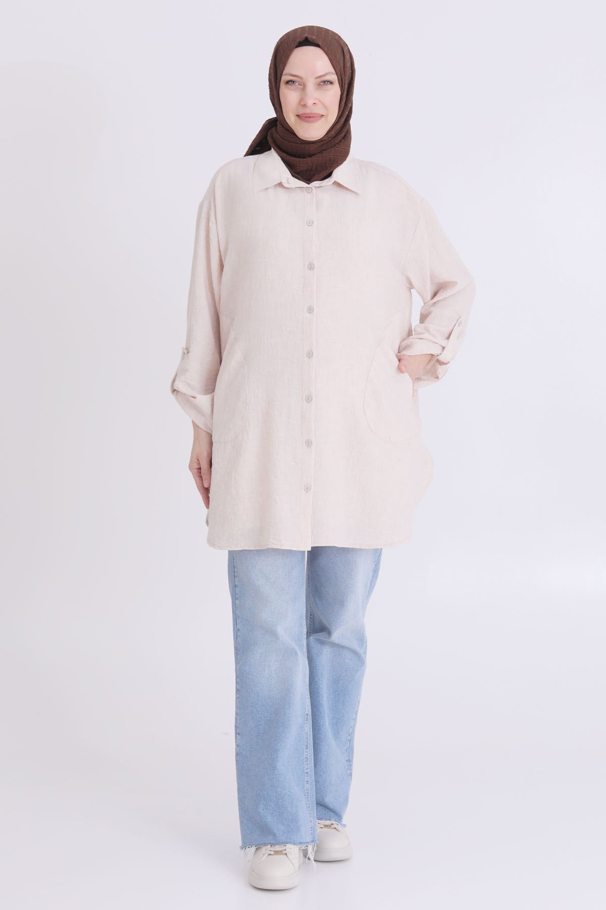 Ürün Detayları: Önden düğmeli modelimizin kolları apoletlidir. İki yandan ceplidir. Arkası robalı A pilelidir. Oversize kalıptır.