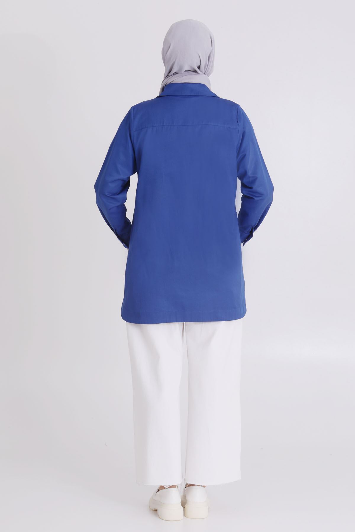 Ürün Detayları: Önden düğmeli modelimizin kolları manşetlidir. Önü çakma taşlar ile hareketlendirilmiştir.