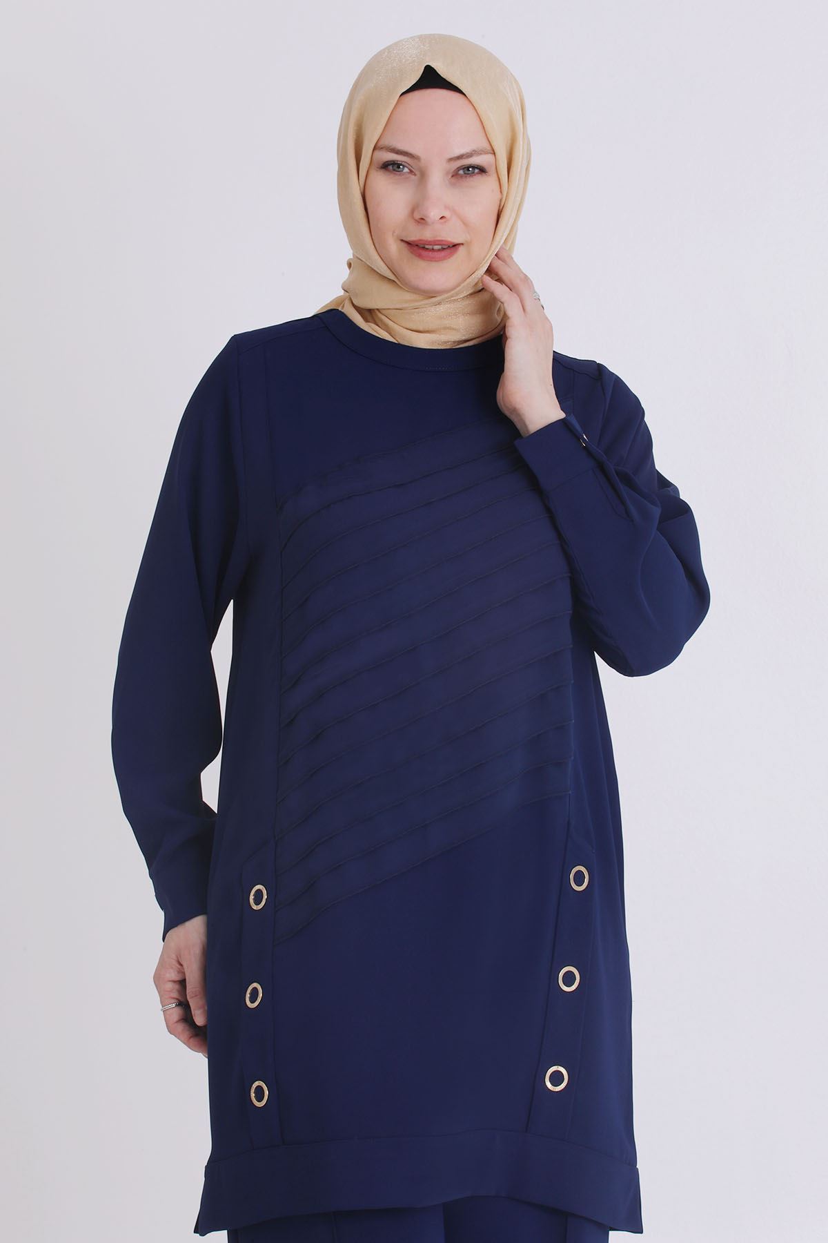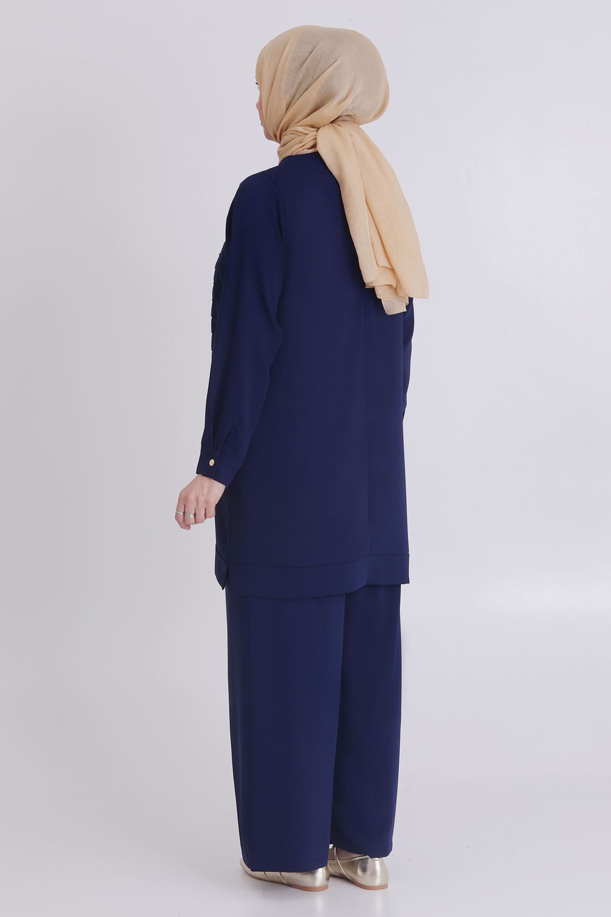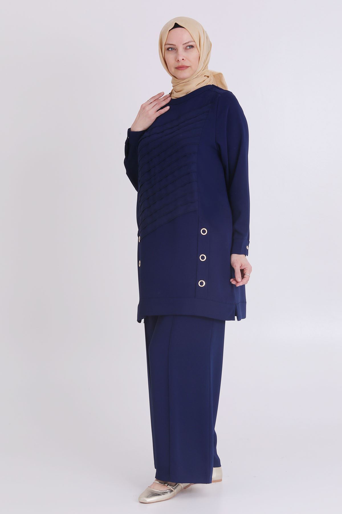 Büyük Beden Tesettür Pantolonlu Dokuma Takım 35114