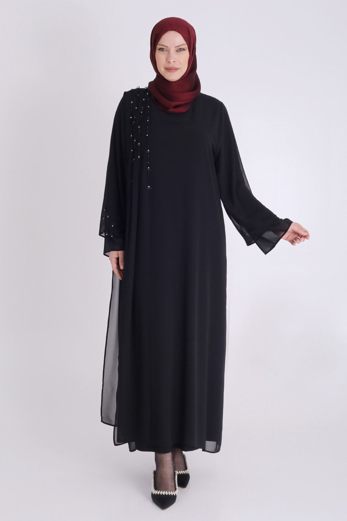 Büyük Beden Tesettür Şifon Kaplama Abiye Elbise 50026