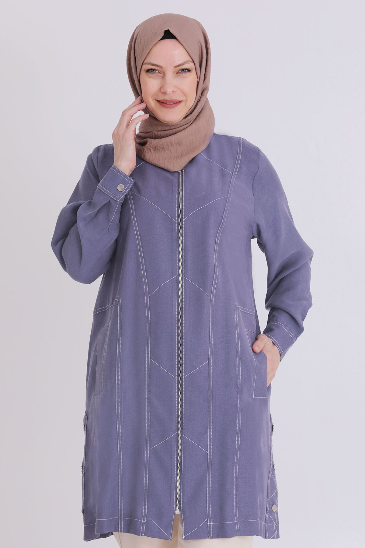 Büyük Beden Tesettür Tensel Fermuarlı Kap 25113
