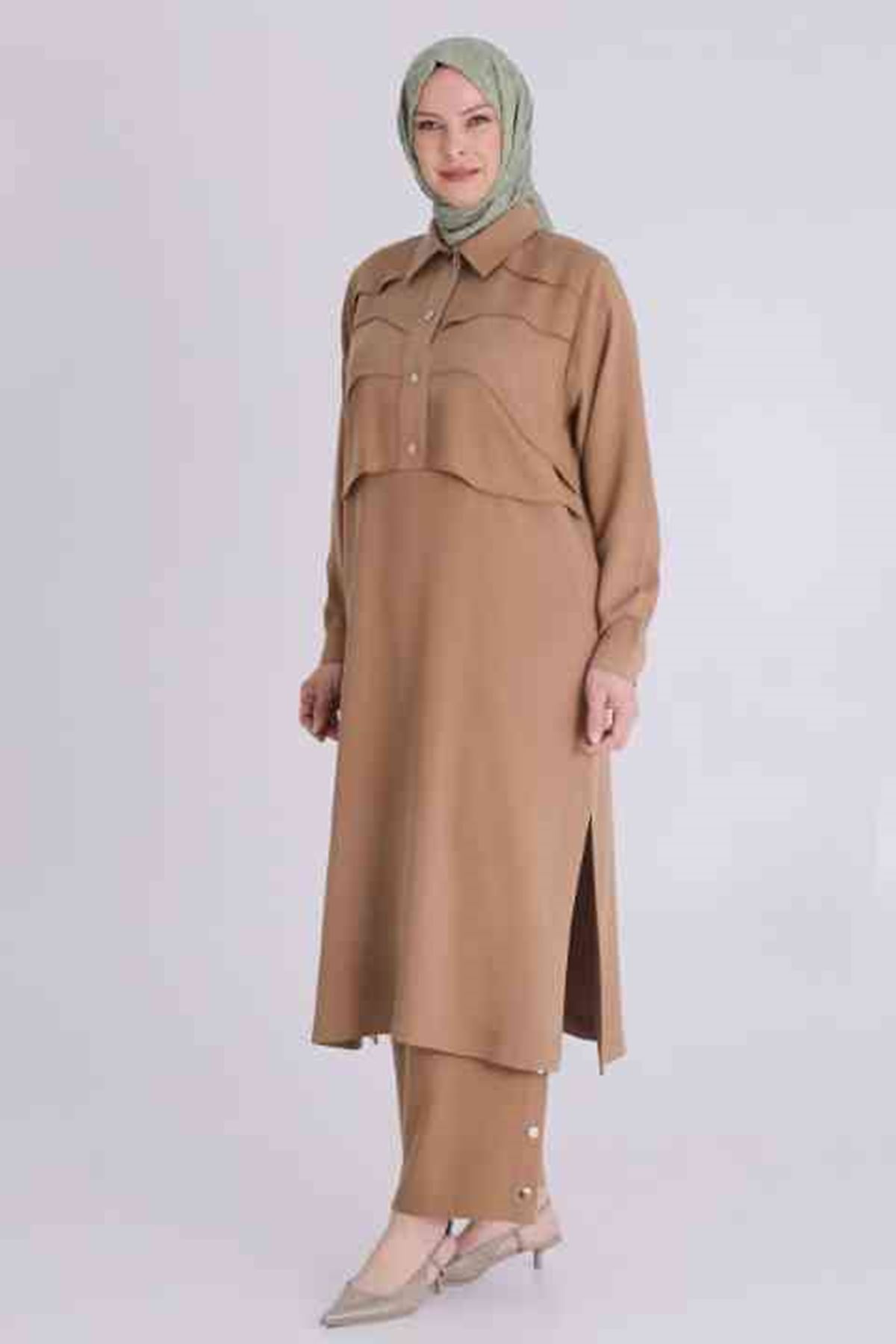 Büyük Beden Tesettür Tensel Pantolonlu Takım 3545