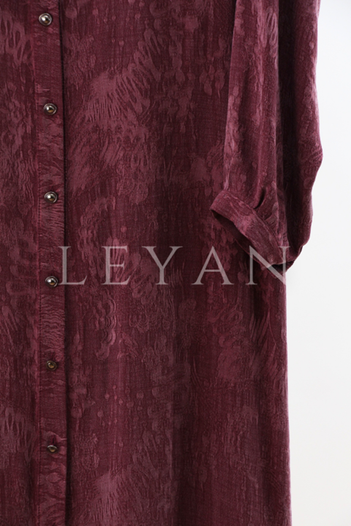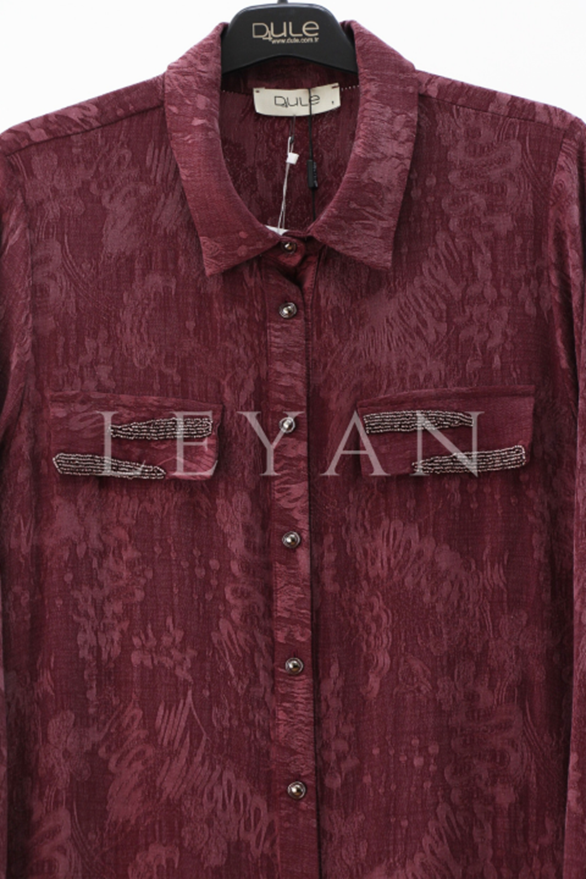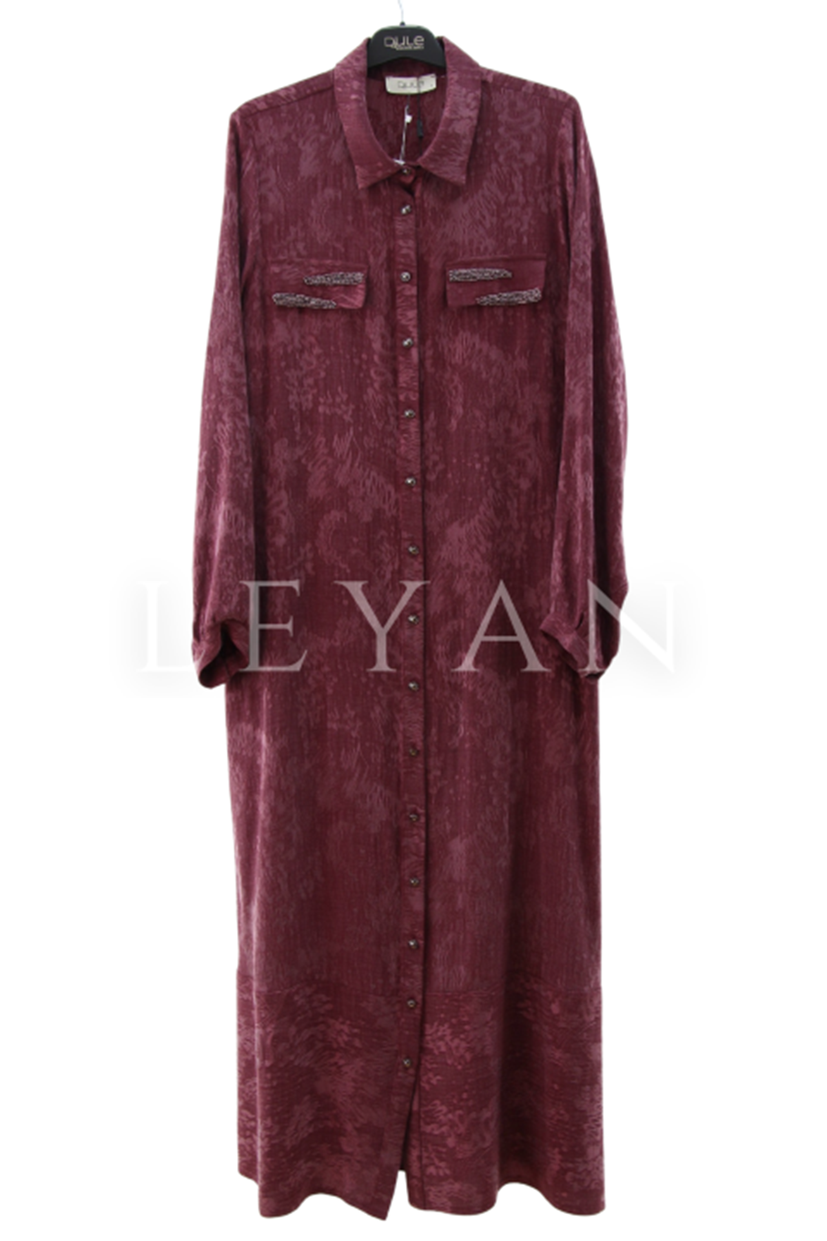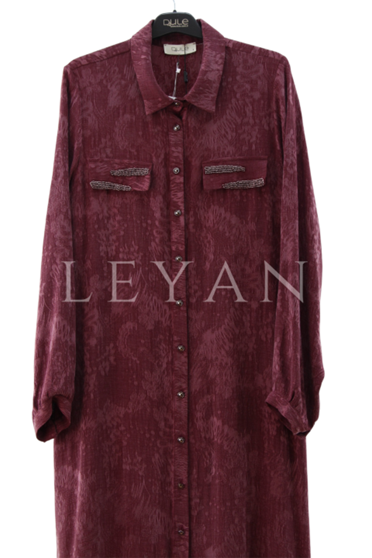 Dule Cebi Taşlı Desenli Gömlek Elbise- LYN03985 Bordo