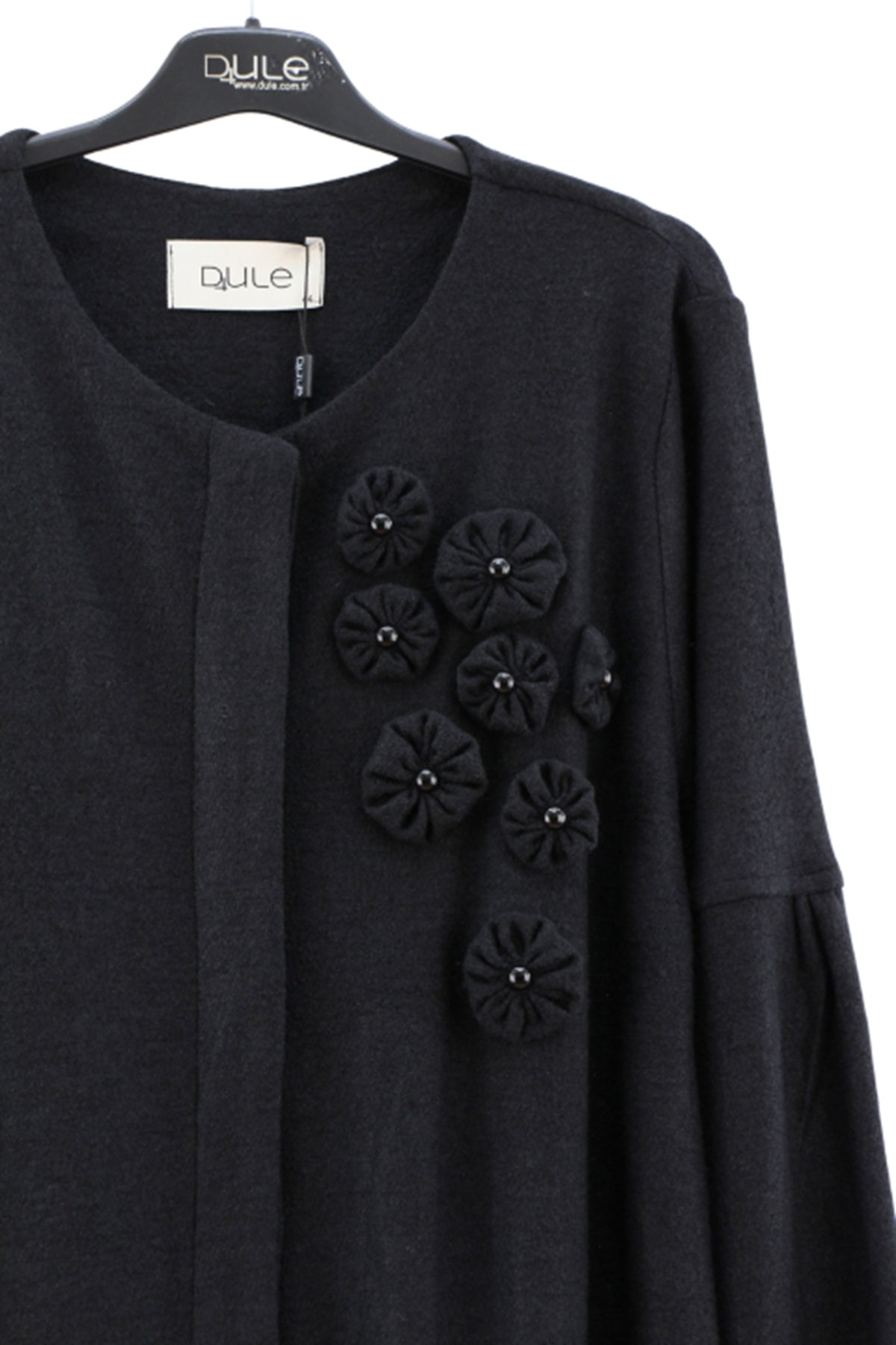 Dule Çiçek Detaylı Ferace- LYN04209 Siyah