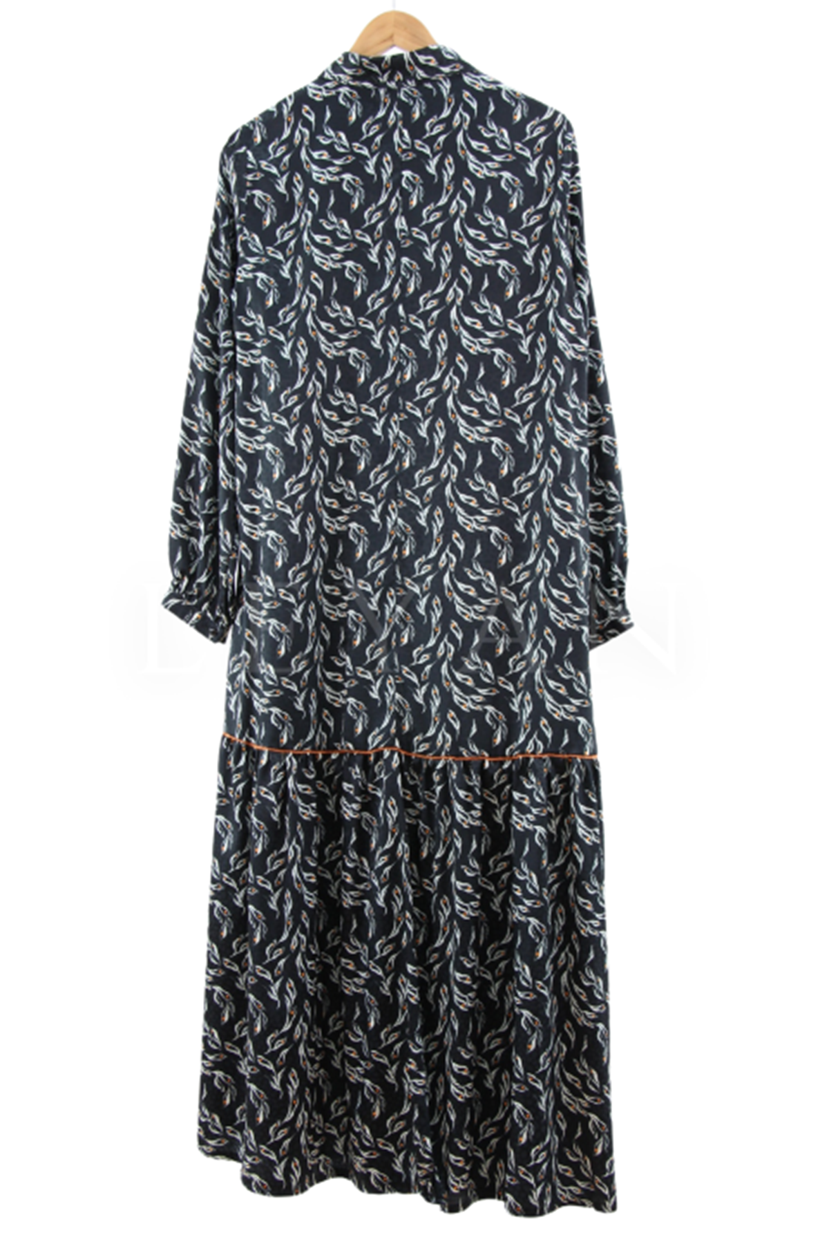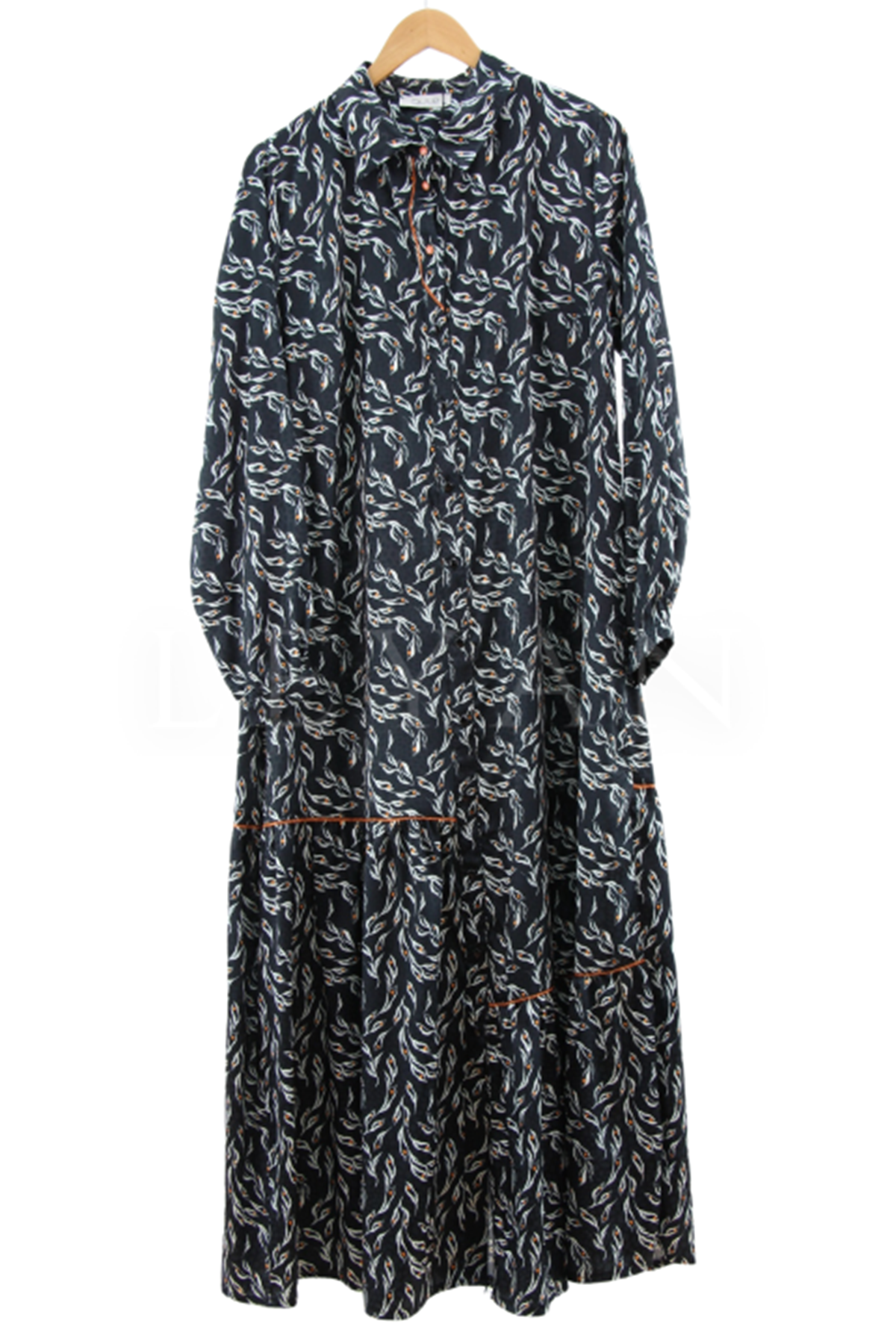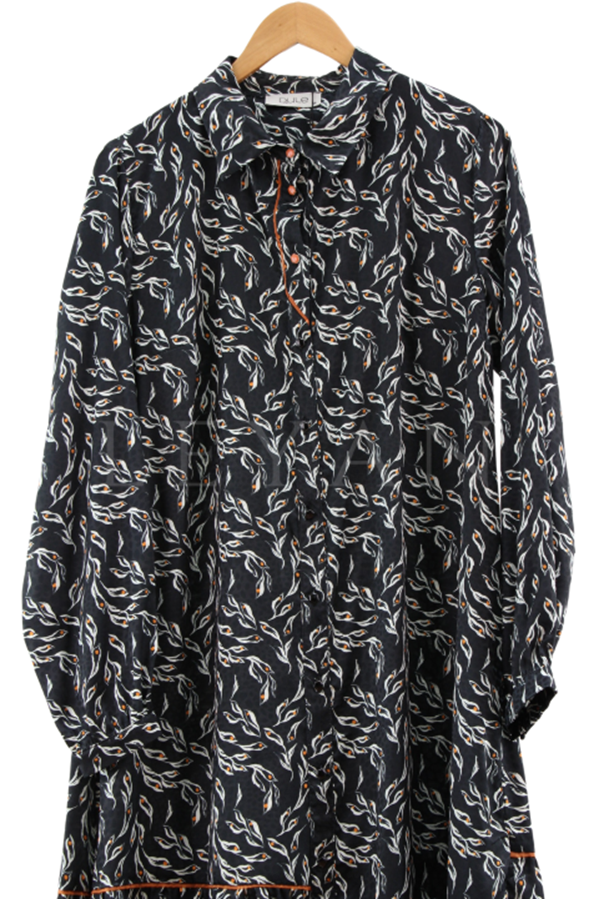 Dule Saten Desenli Gömlek Elbise- LYN03158 Oranj