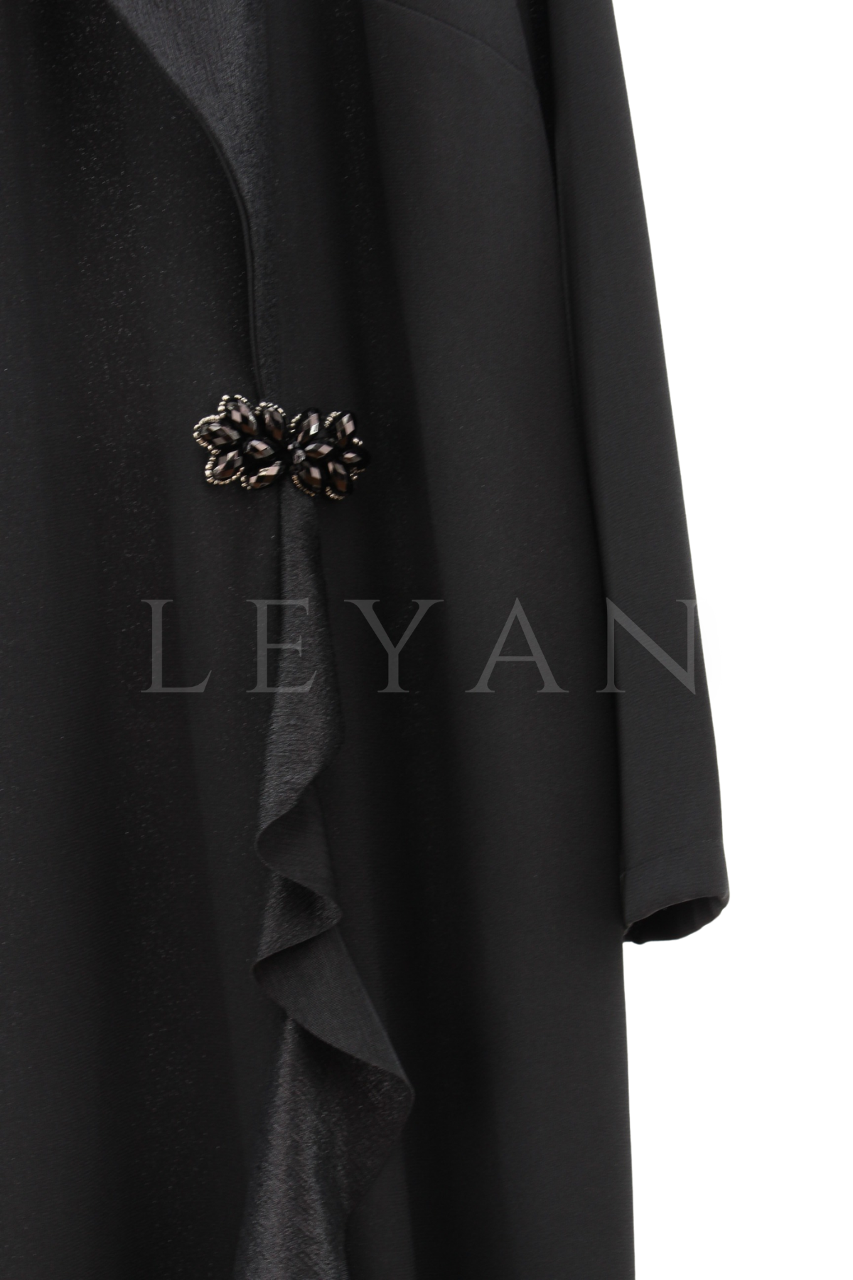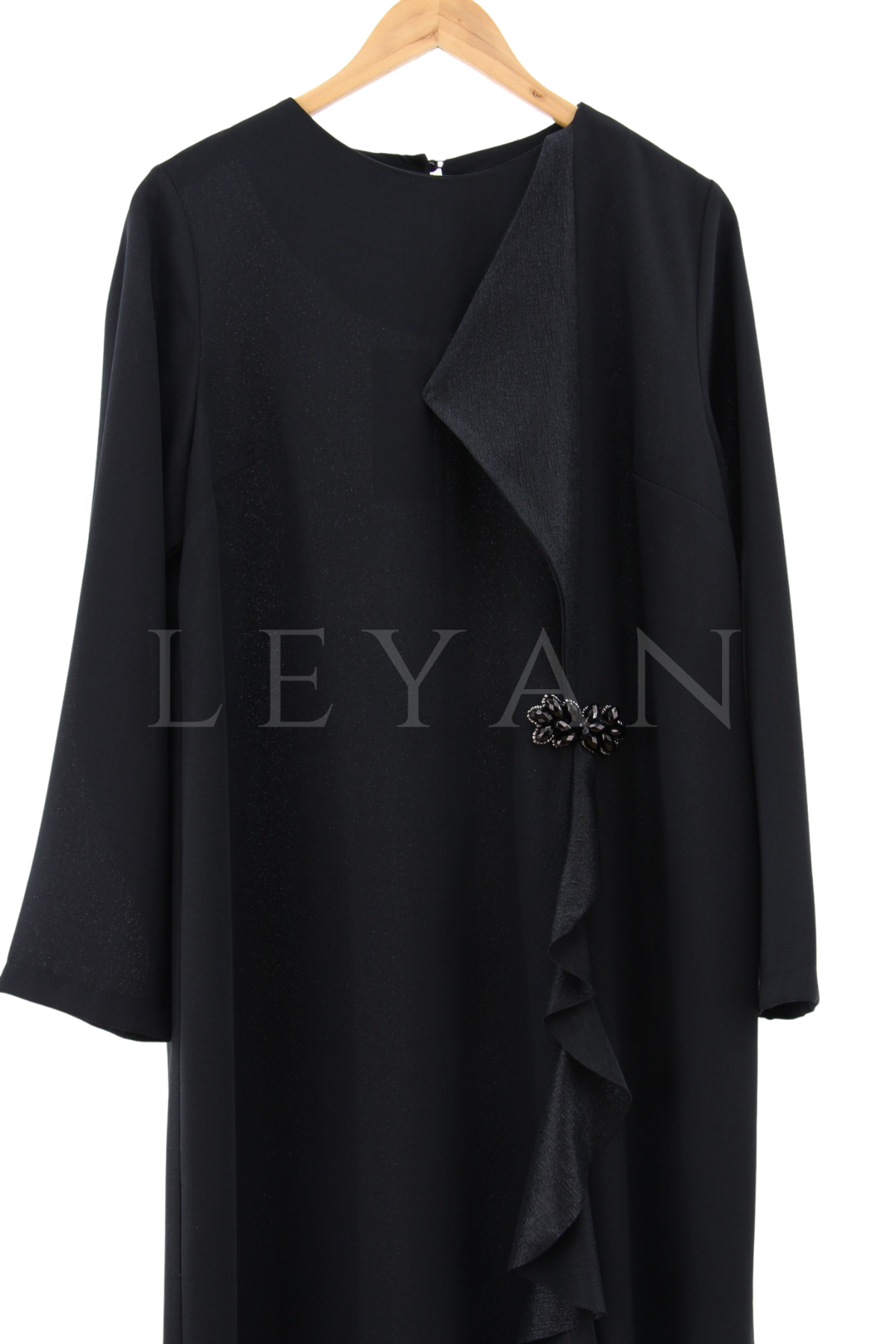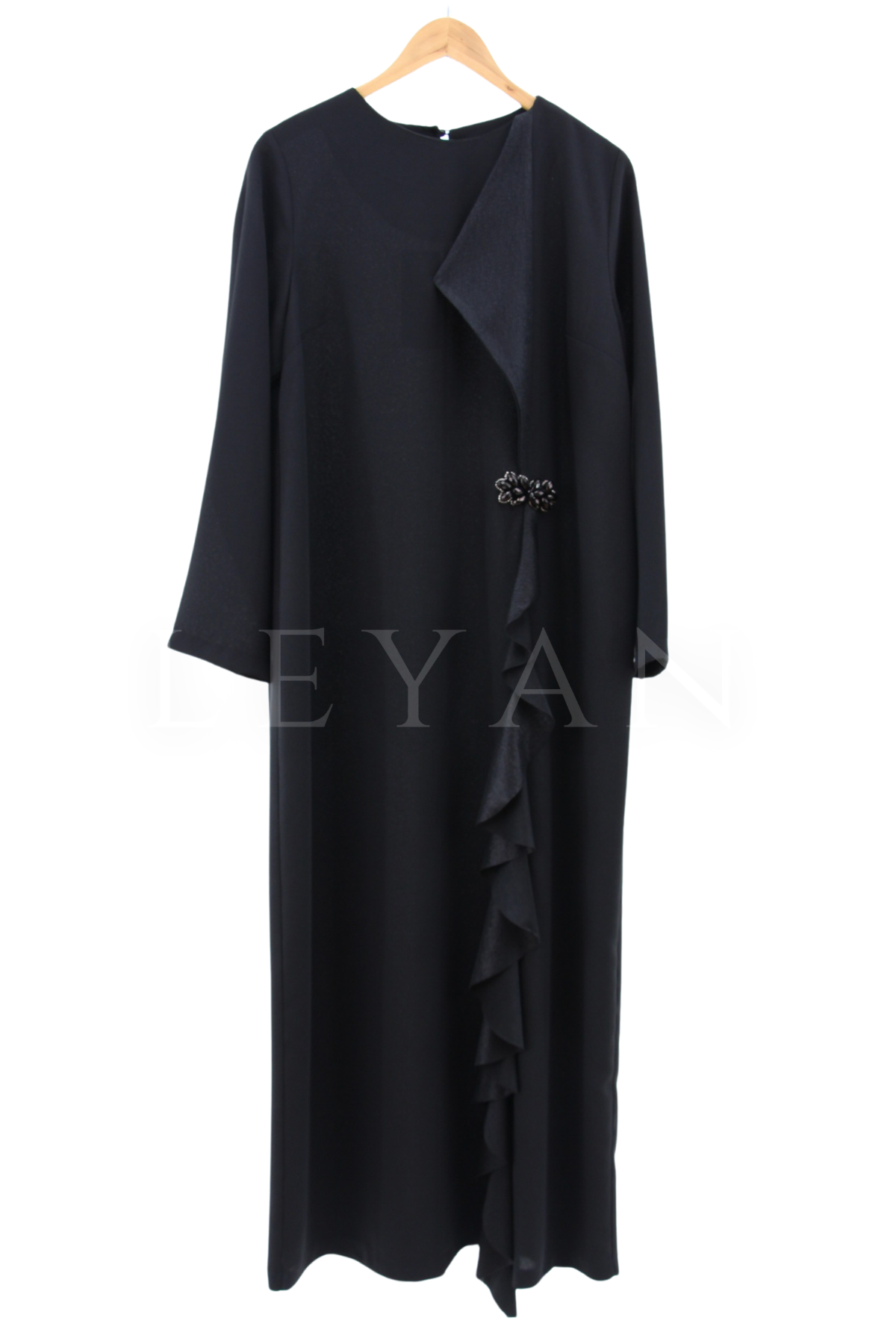 Dule Volanlı Krep Elbise- LYN03295 Siyah