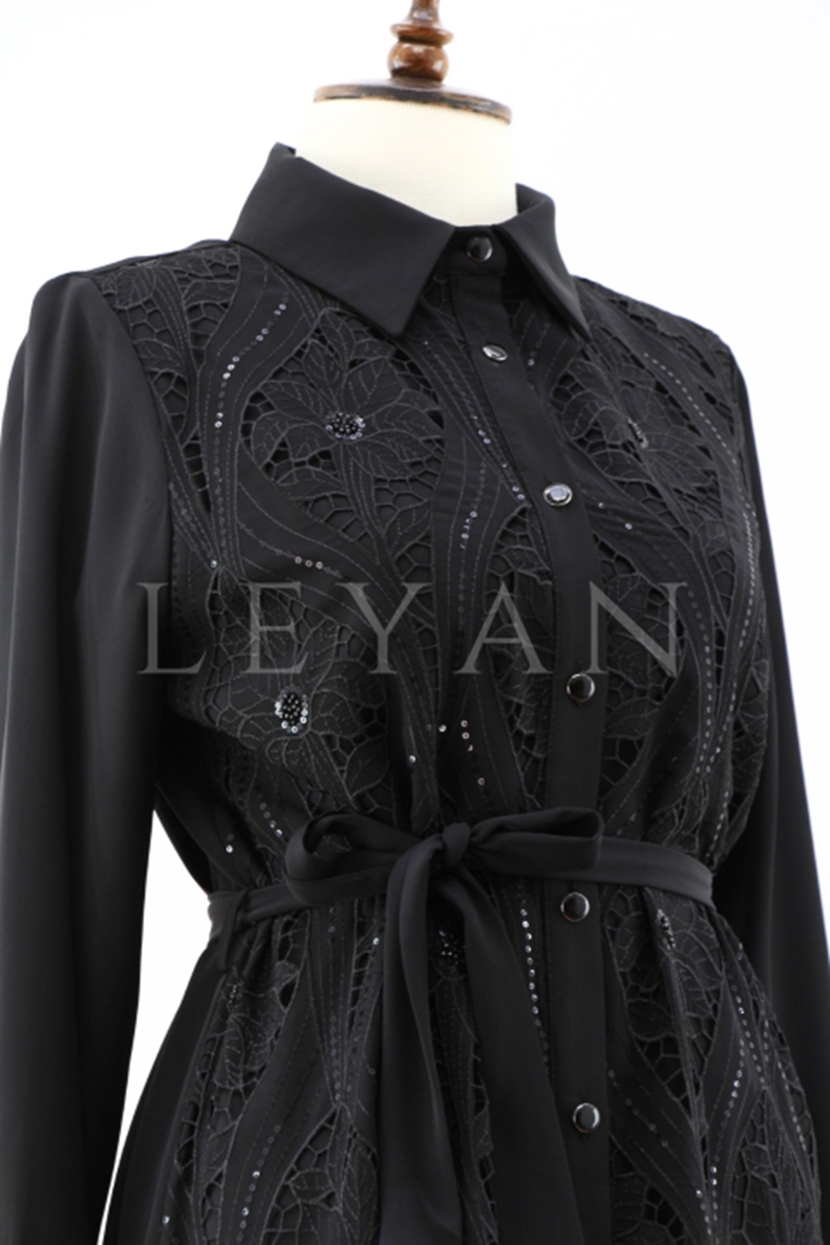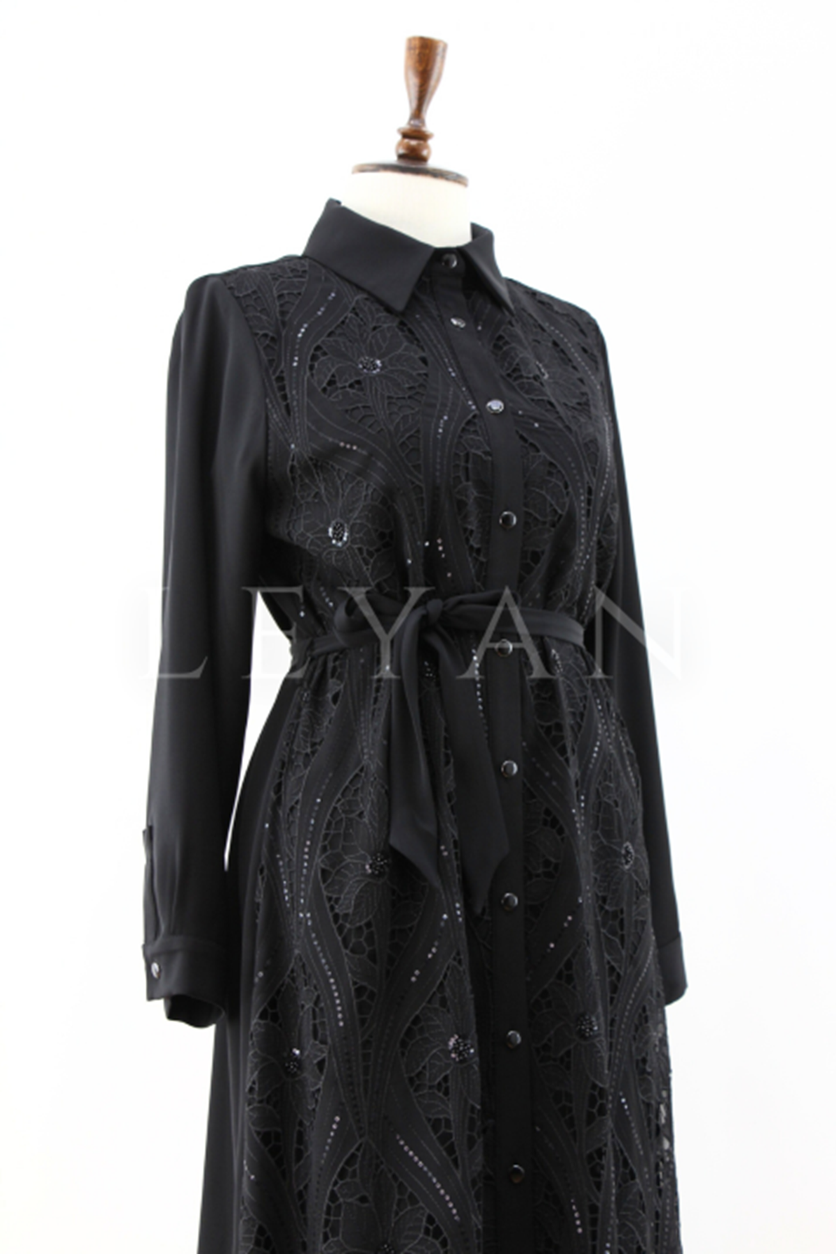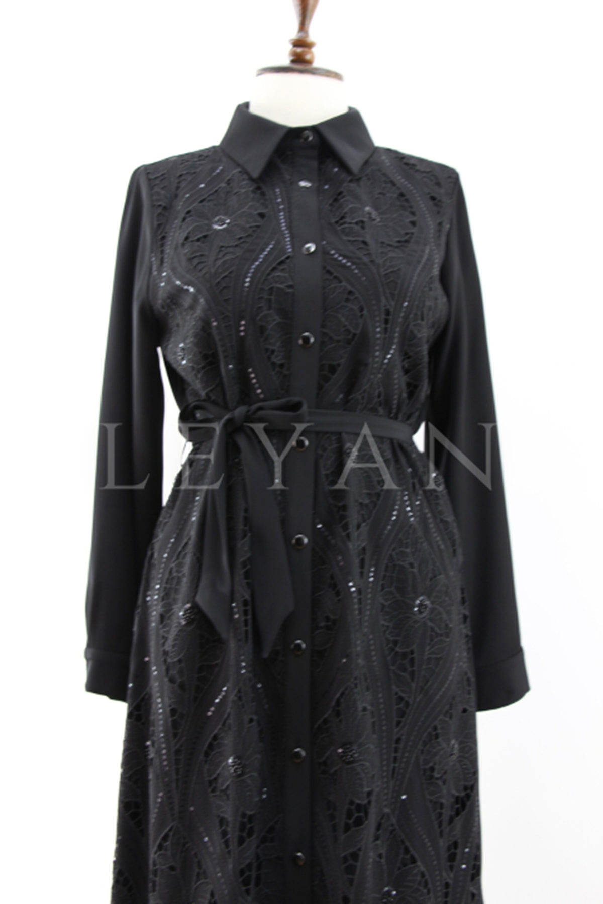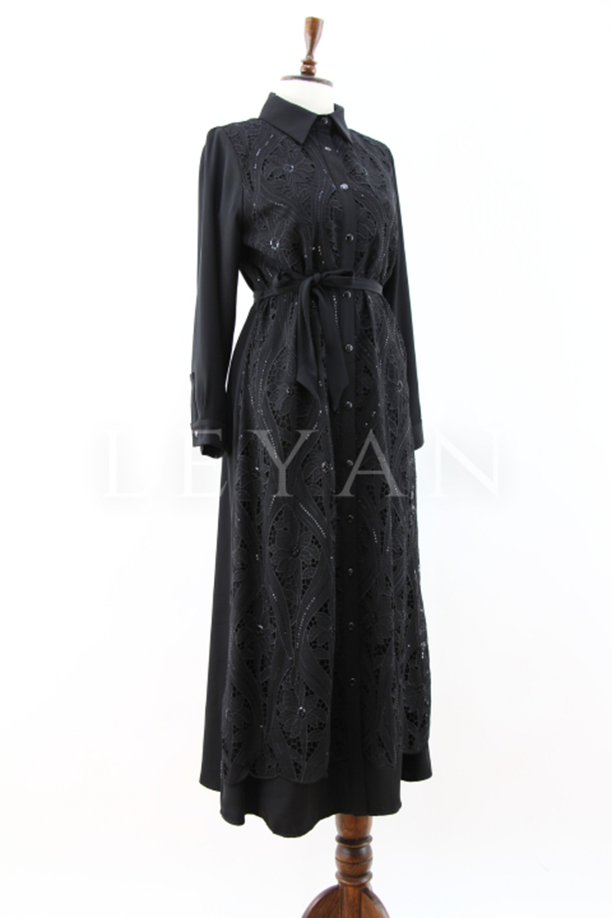 Fuat Gürşen Güpür Detaylı Elbise- LYN03950 Siyah