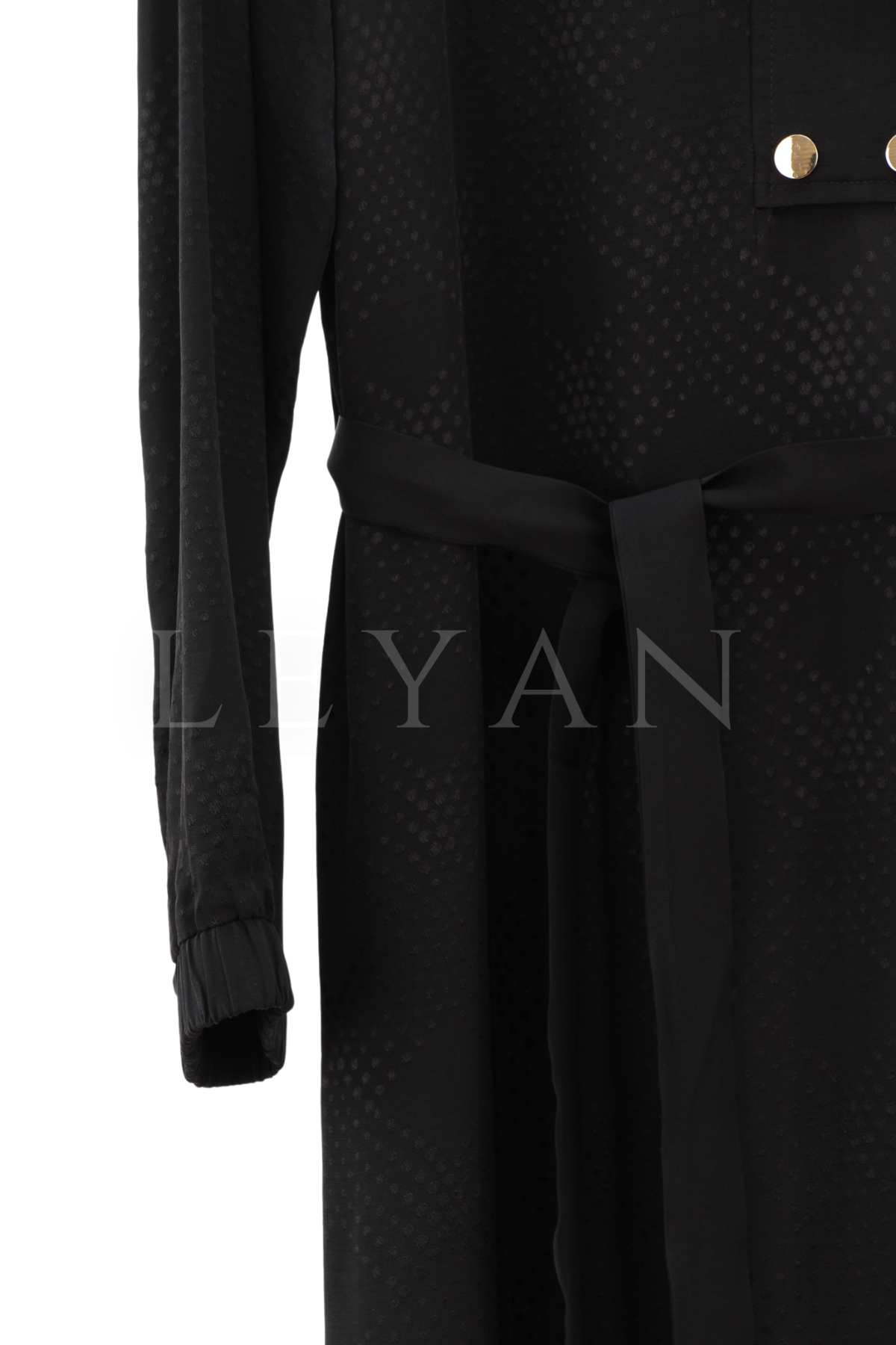 Defrina Deri Ve Jakar Detaylı Elbise- LYN03878 Siyah