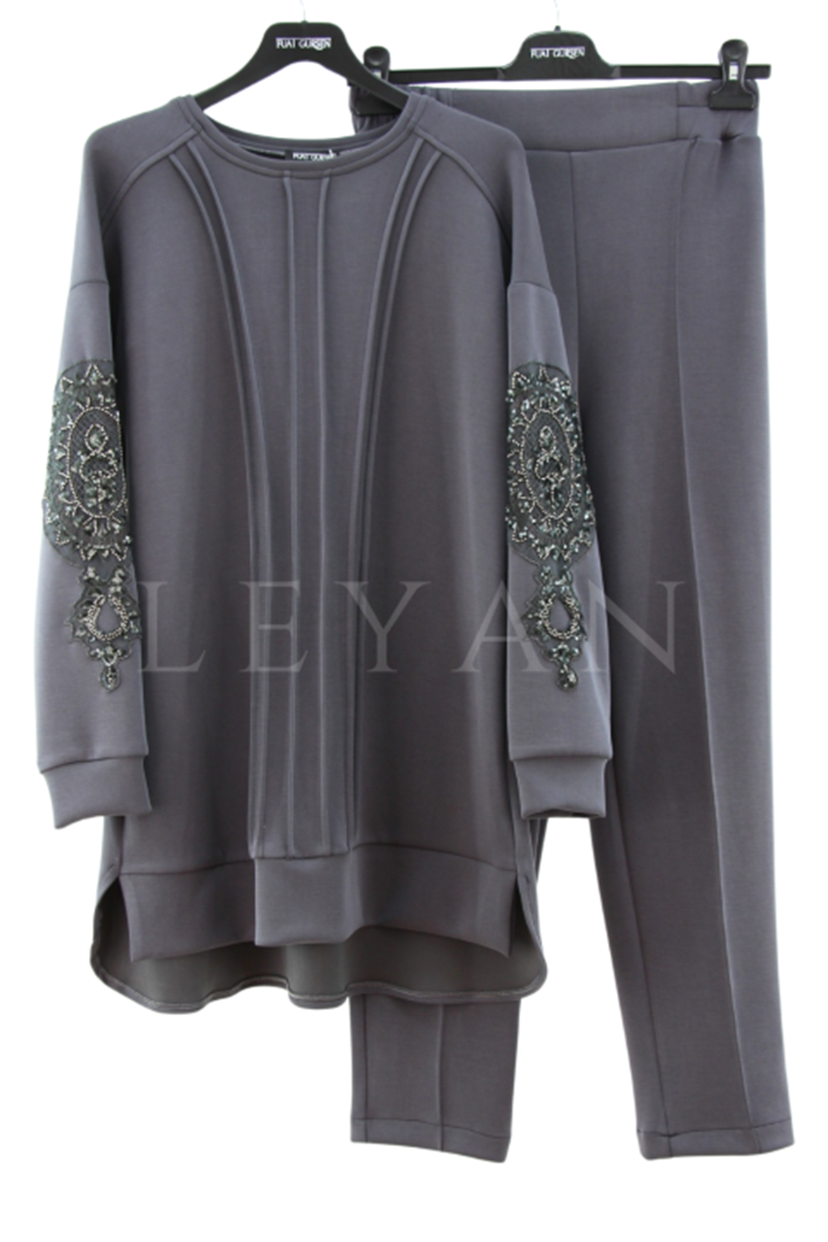 Fuat Gürşen Kolları Taşlı Takım- LYN04164 Antrasit