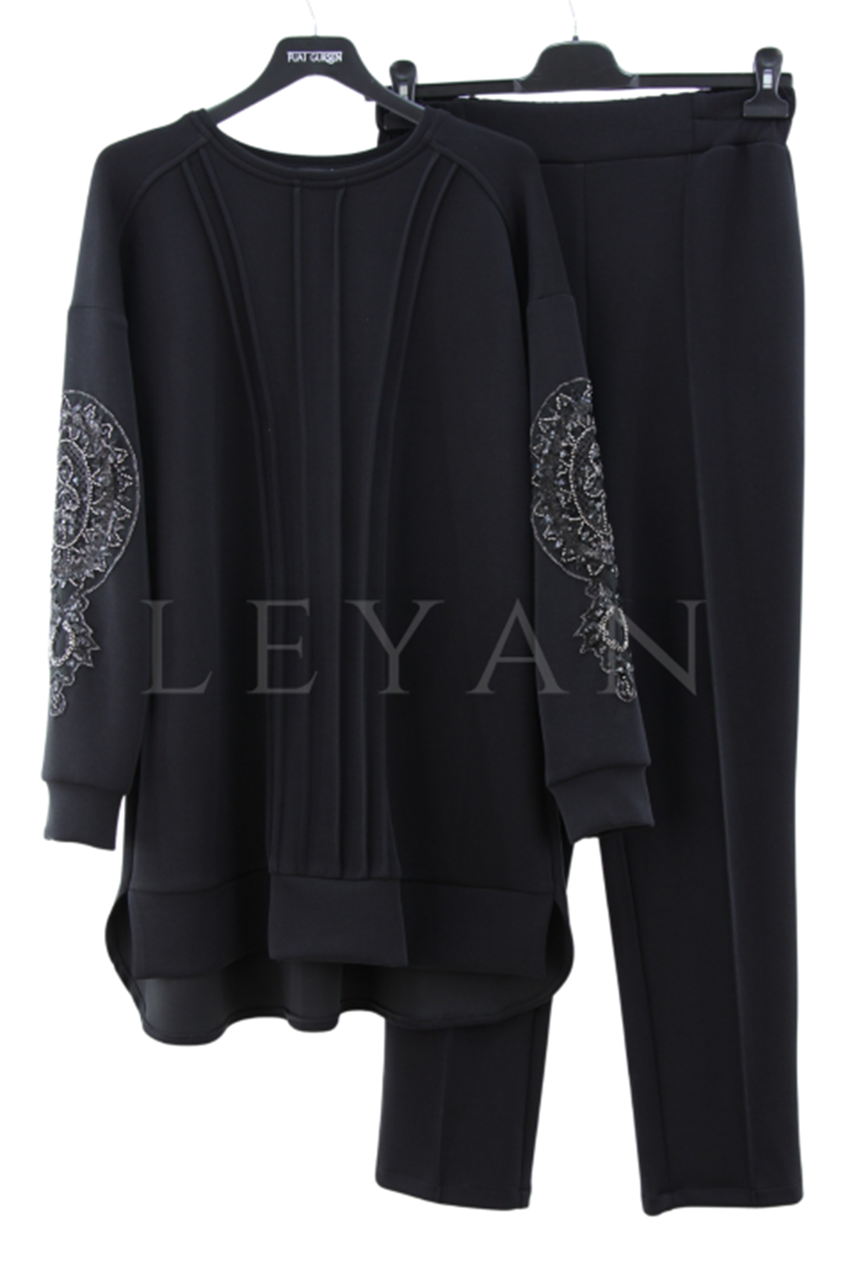 Orhan Store Kolları Organze Takım- LYN03833 Siyah