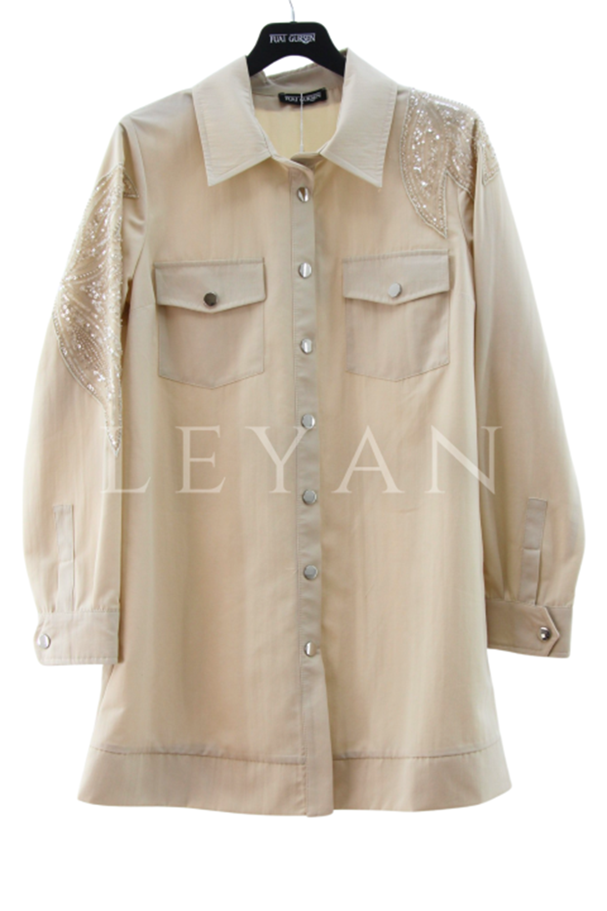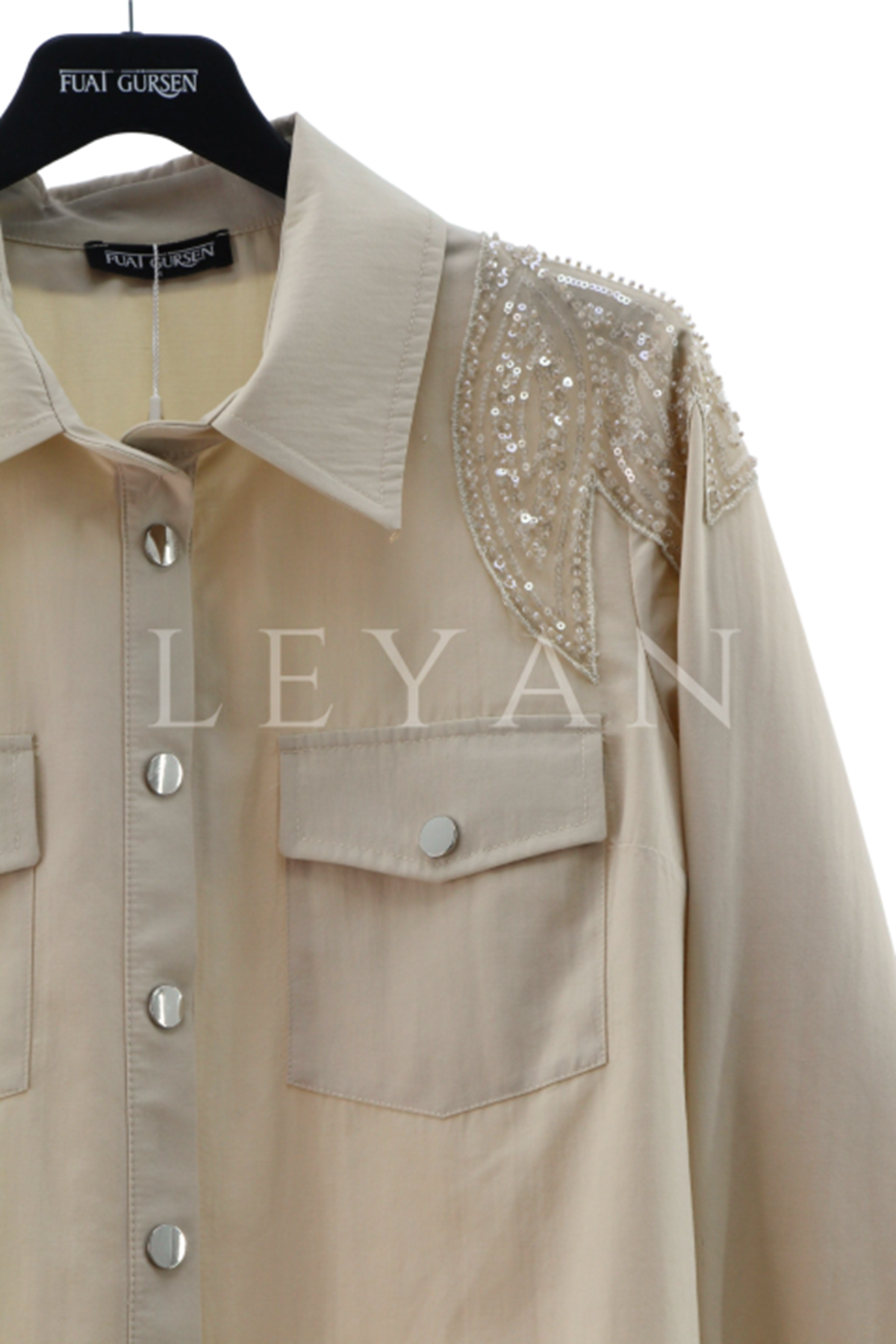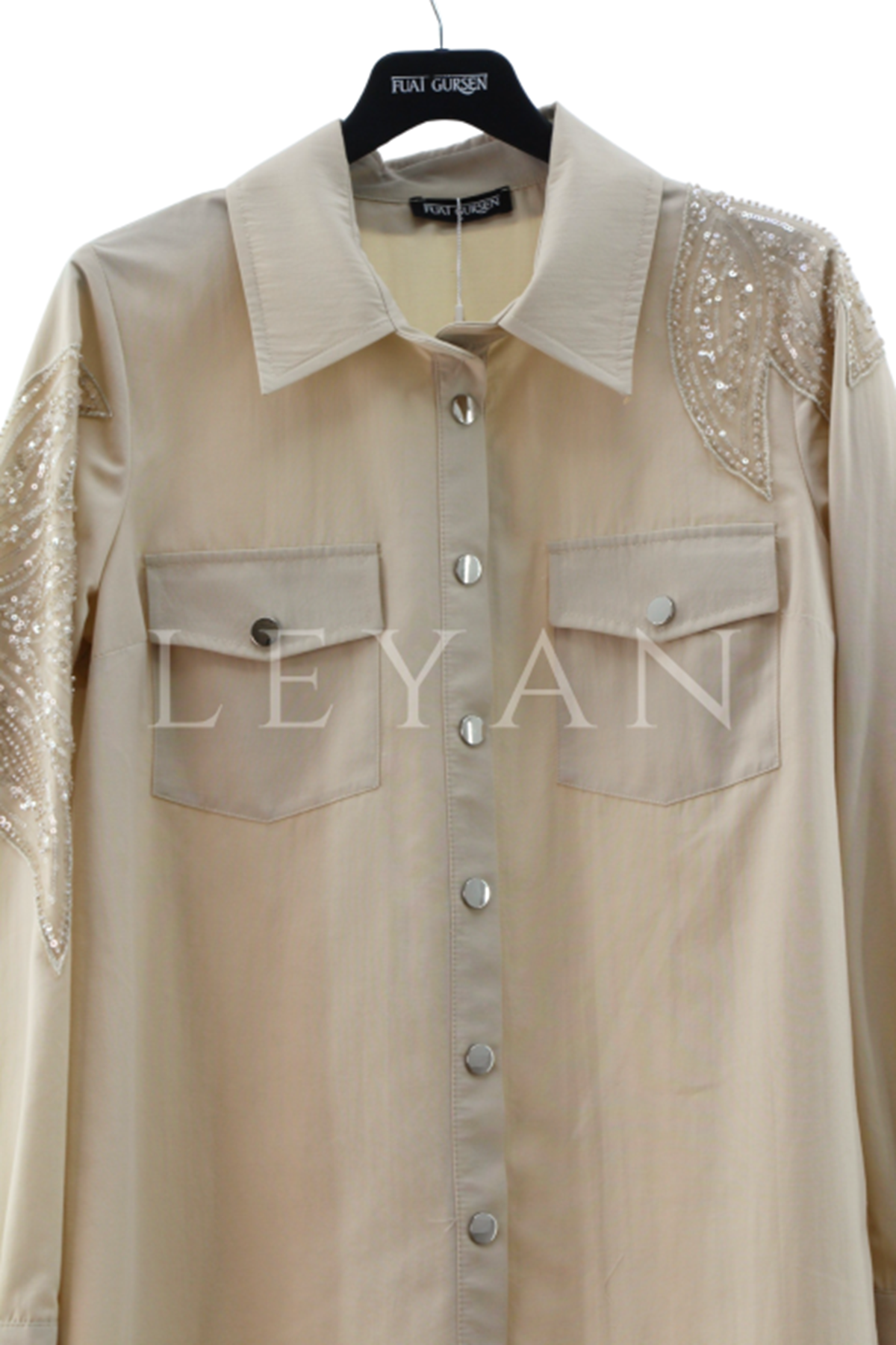 Fuat Gürşen Omzu Payet İşlemeli Gömlek- LYN03938 Bej