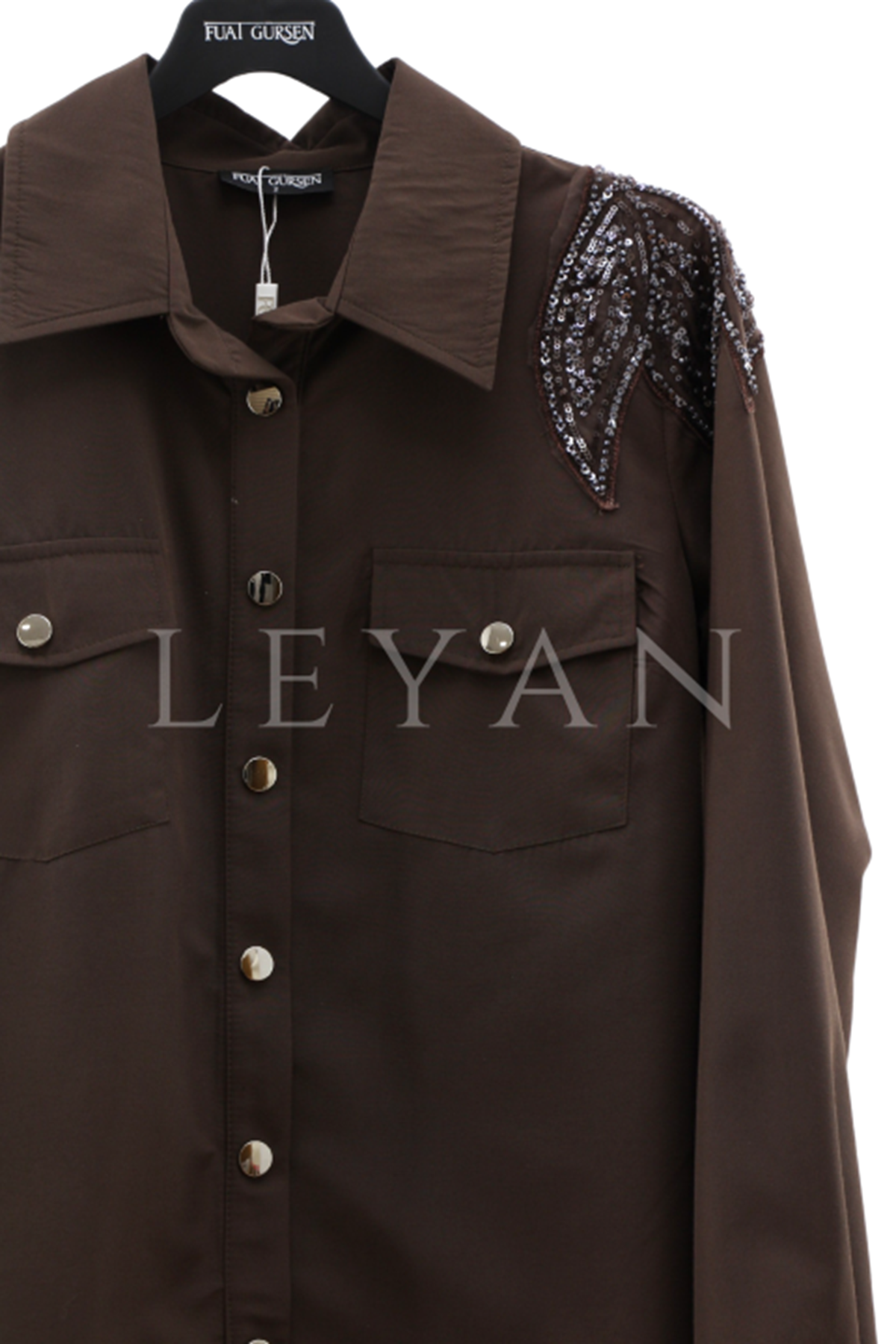 Omzu Payet İşlemeli Gömlek- LYN03938