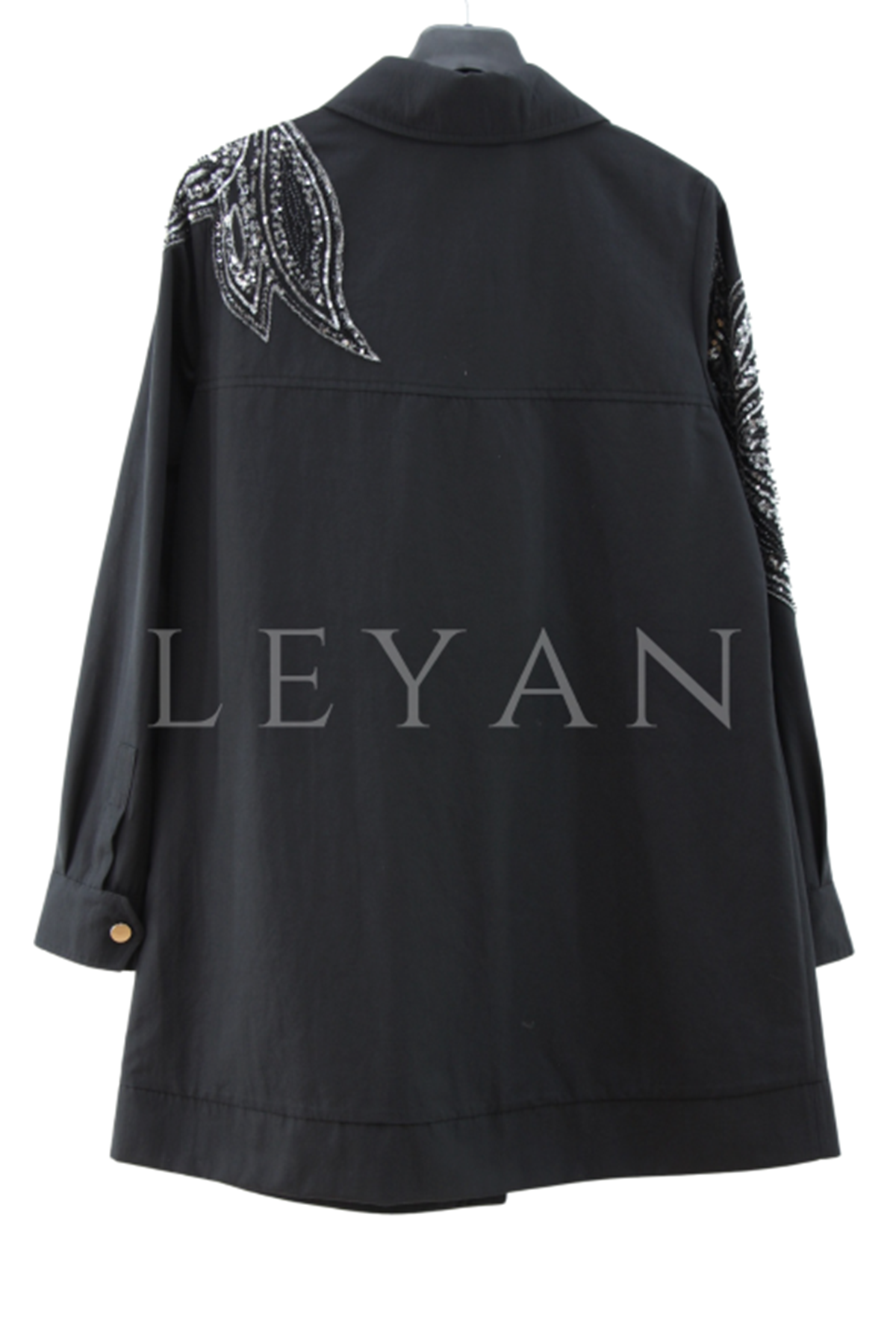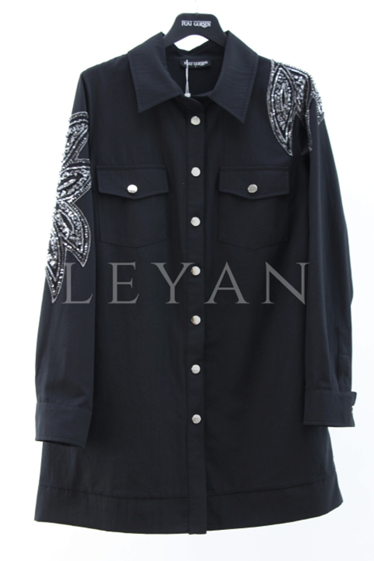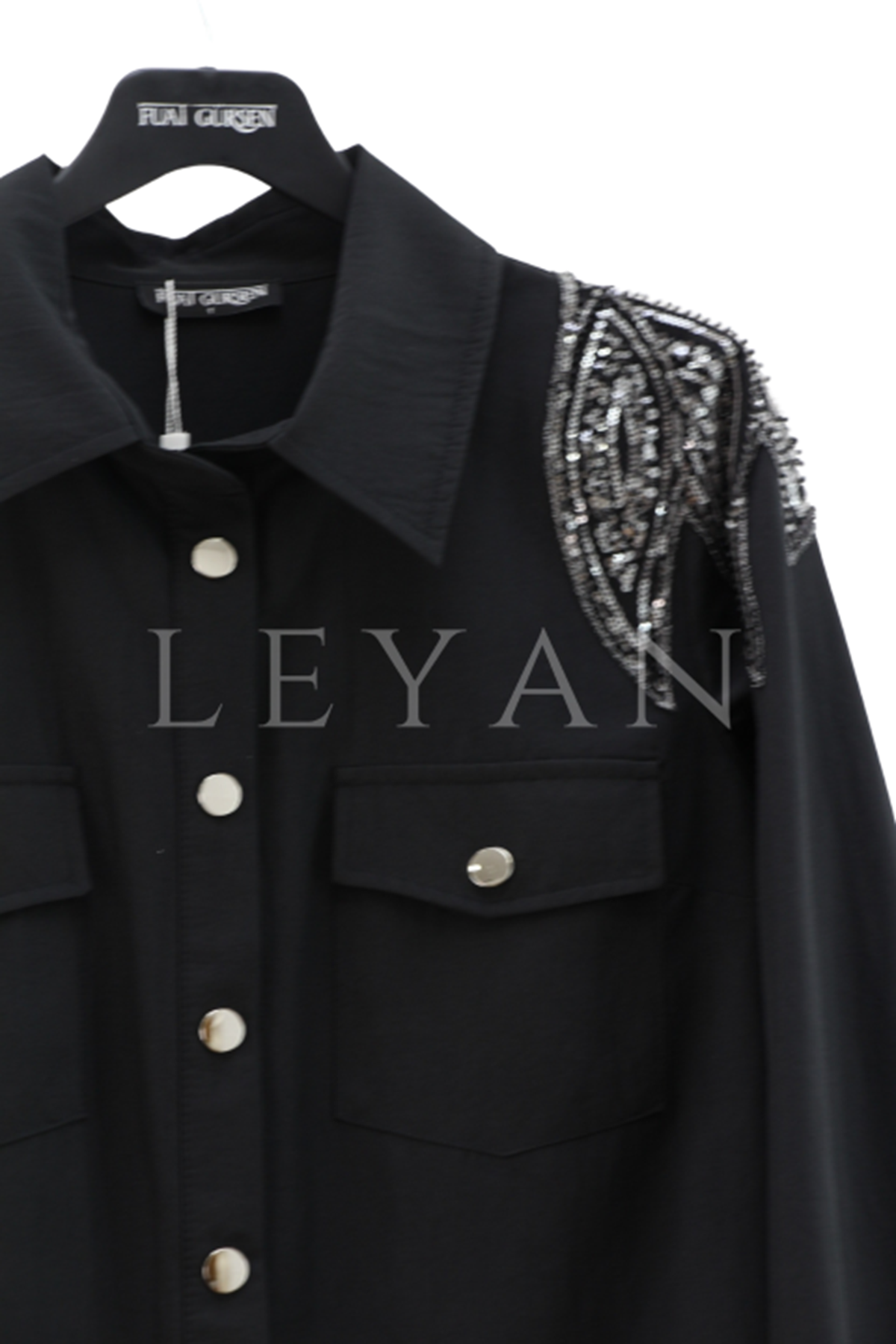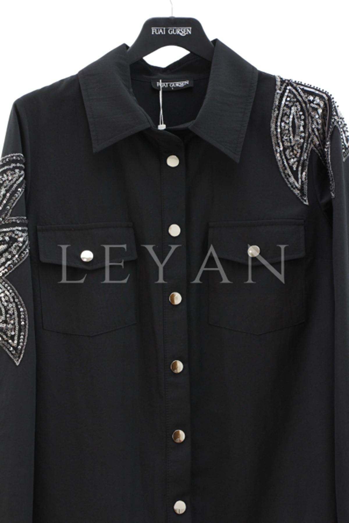 Fuat Gürşen Omzu Payet İşlemeli Gömlek- LYN03938 Siyah