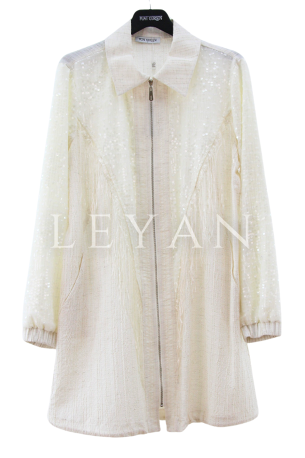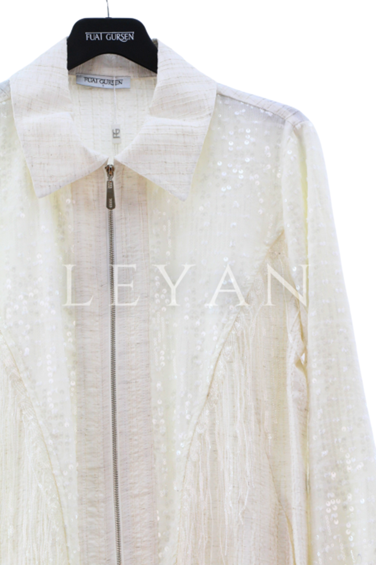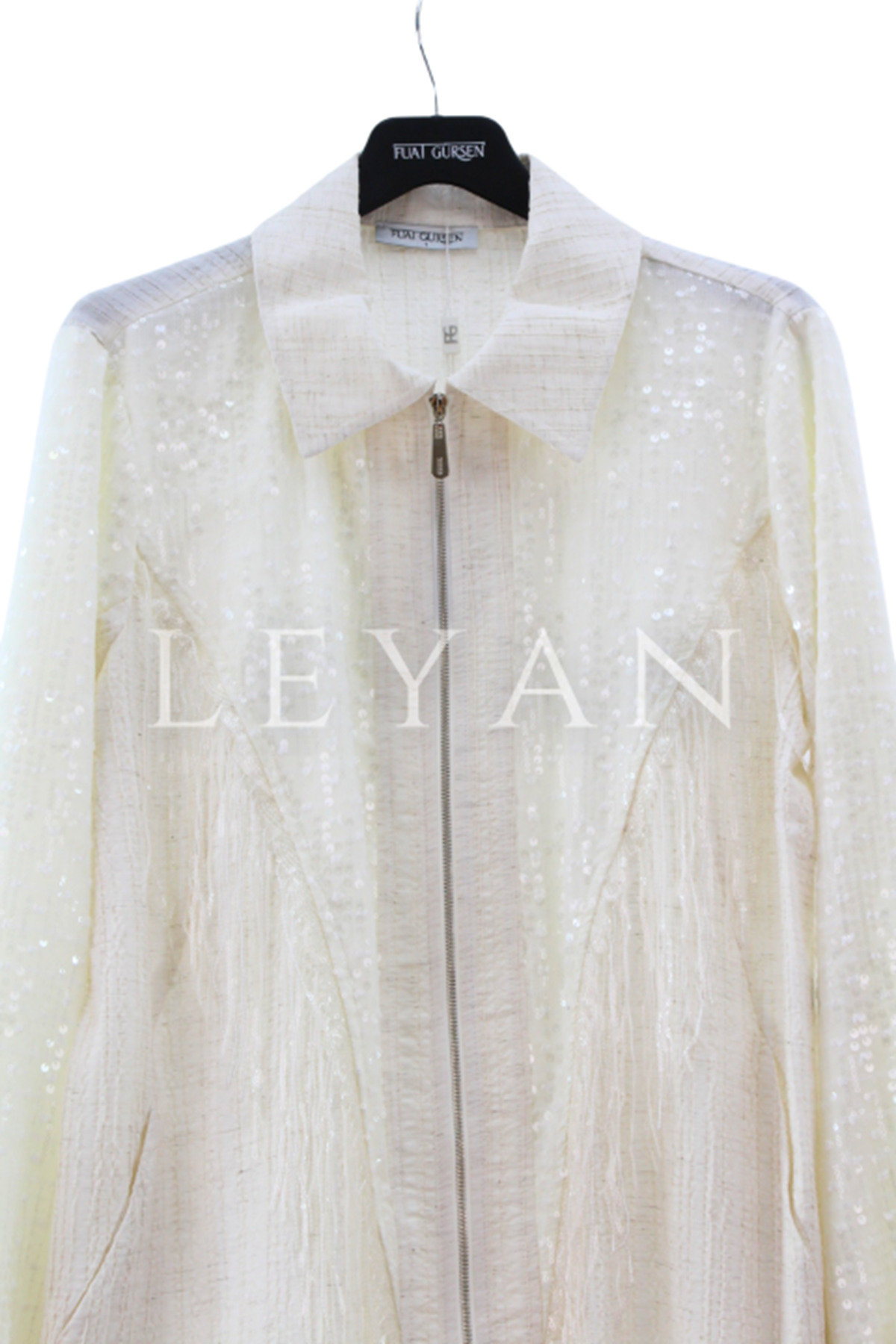 Fuat Gürşen Püskül Payetli Kap- LYN03723 Ekru