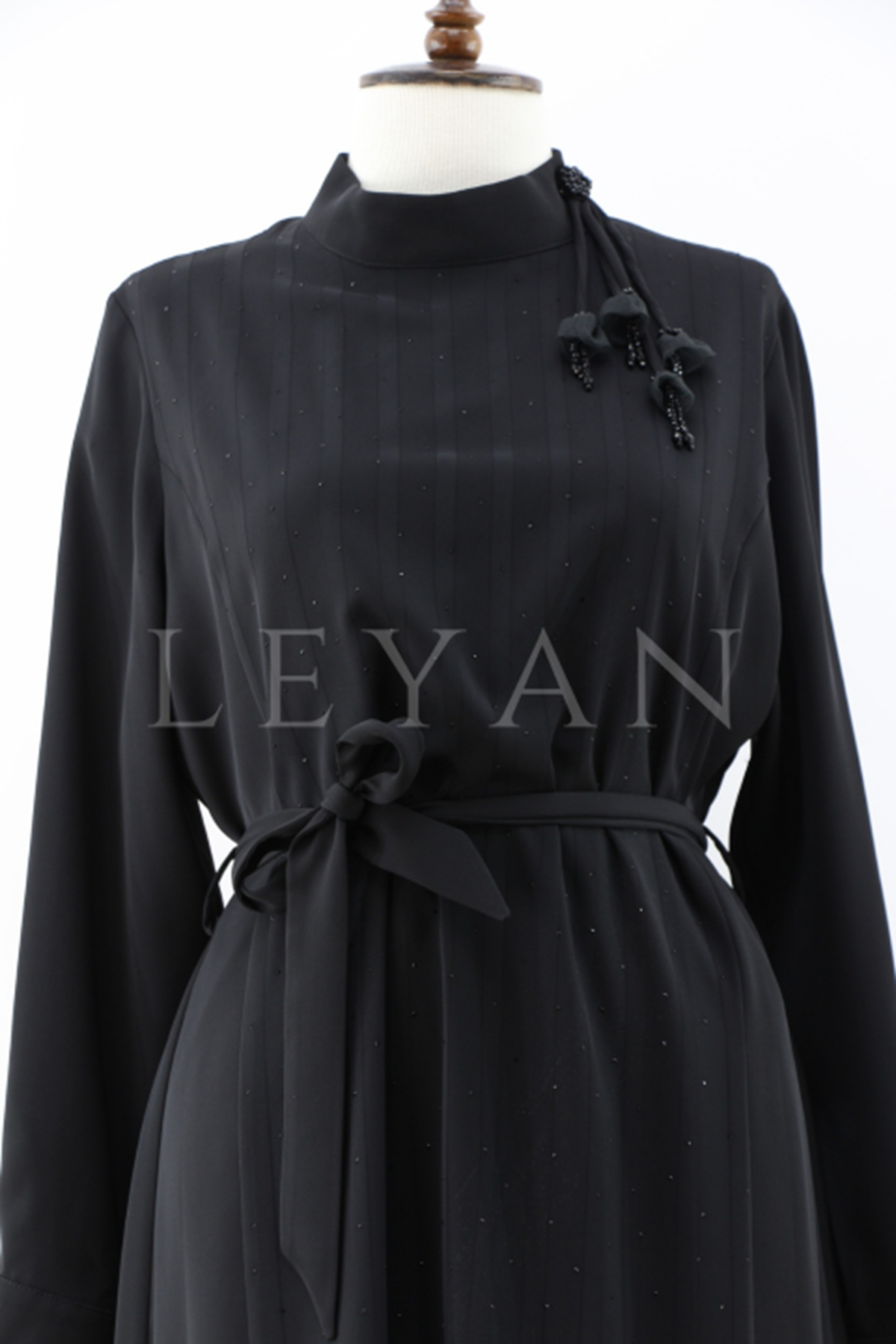 Editör Notu: Taş işleme detayı ile hareketlendirilen elbise modelimiz, 40-50 beden aralığına uyumludur. Hem konforu hem de zarafeti bir arada sunarak gün boyu şıklığınızı korumanıza yardımcı olur.