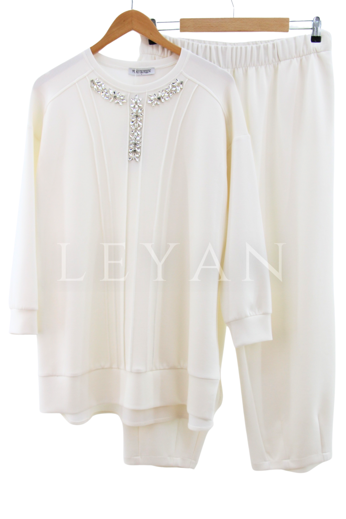 Fuat Gürşen Yakası Taş Detaylı Takım- LYN03310 Ekru