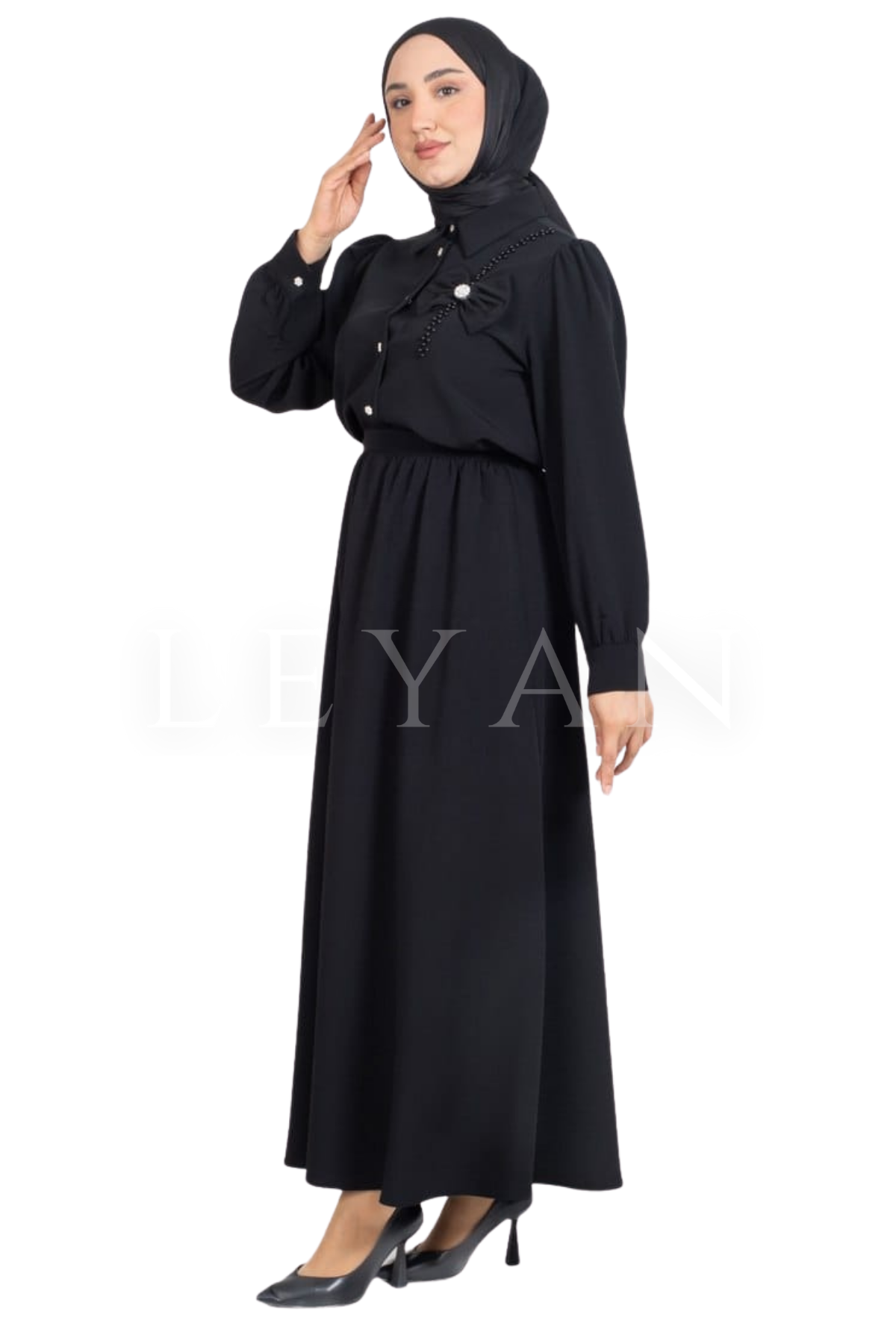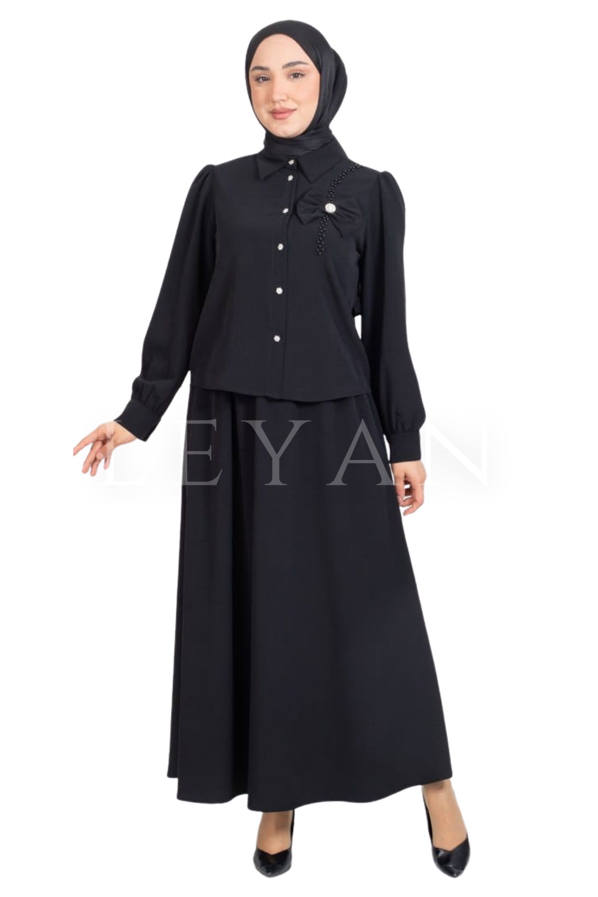 İnci Detaylı Etekli Takım- LYN03812 Siyah