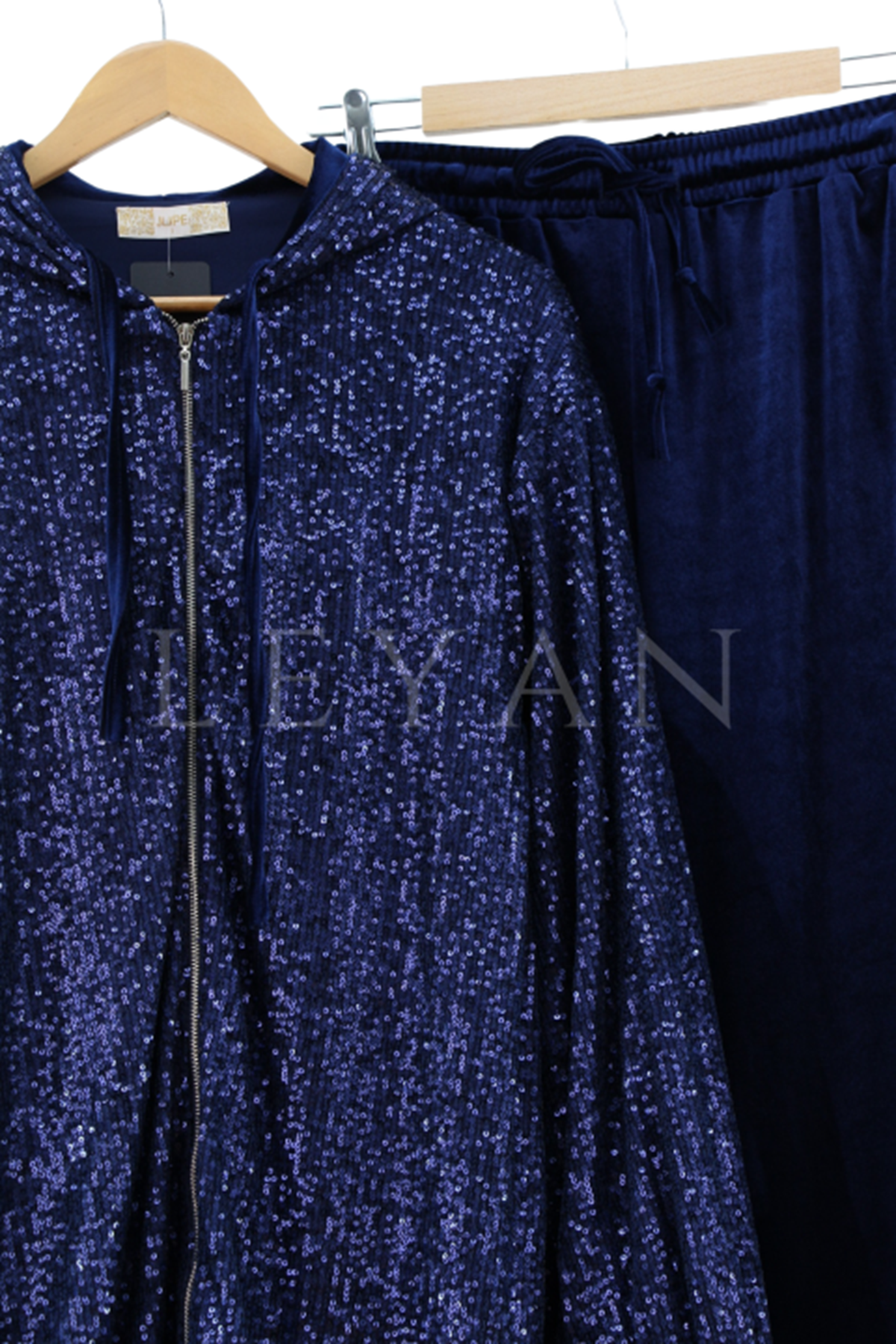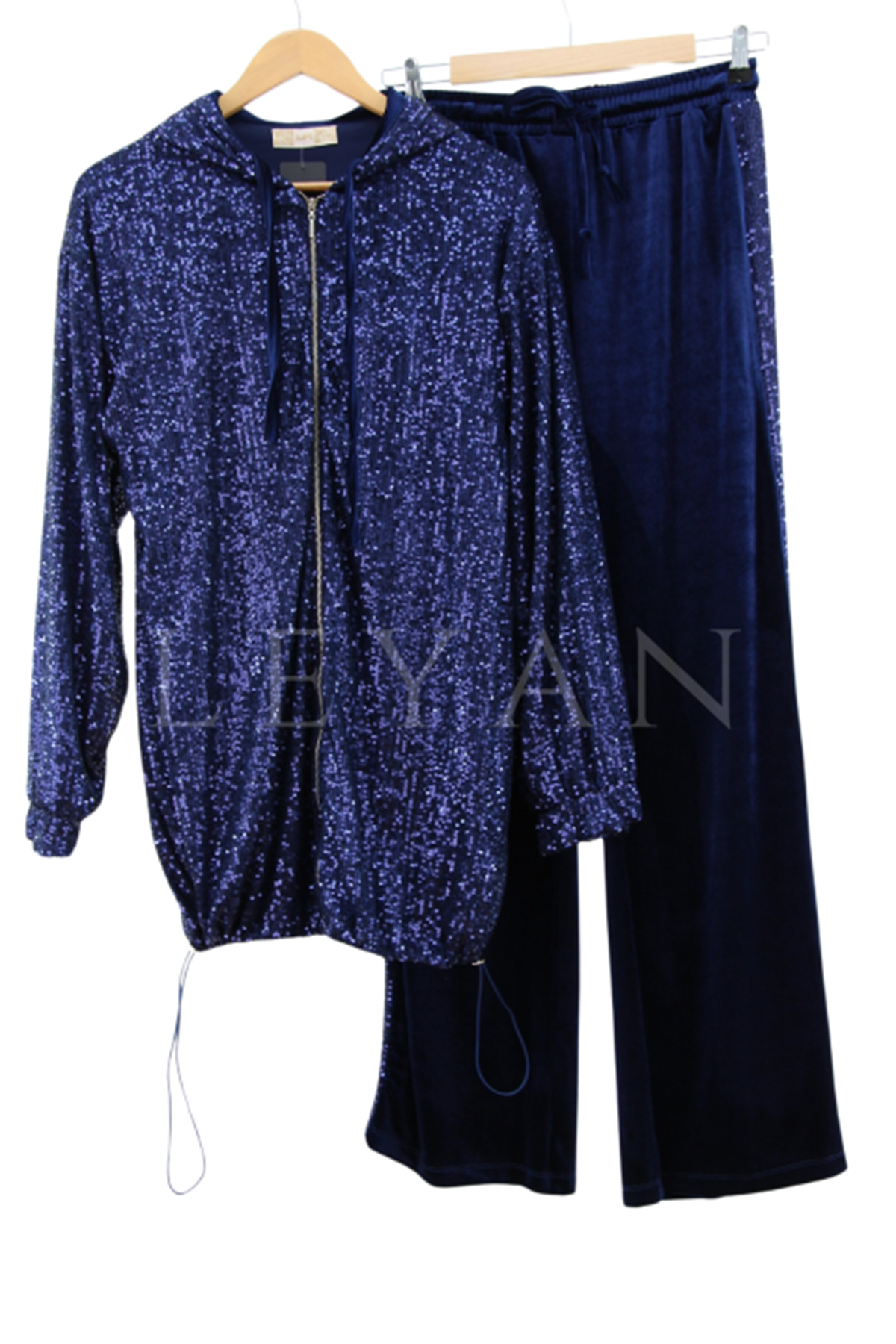 Jupe Payet Ceketli Kadife Takım- LYN02775 Lacivert