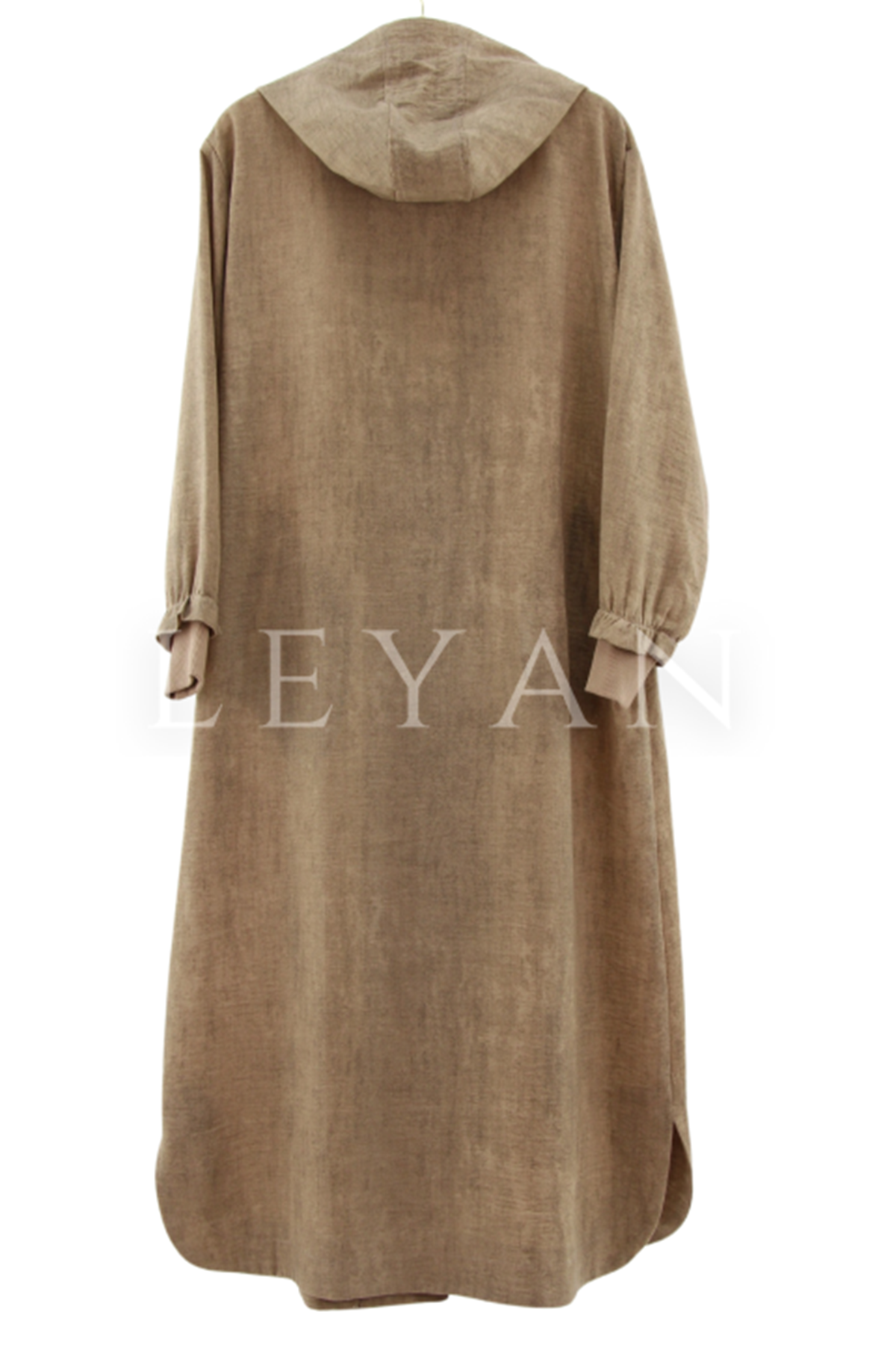 Kapşonlu Keten Kap- LYN03659 Siyah