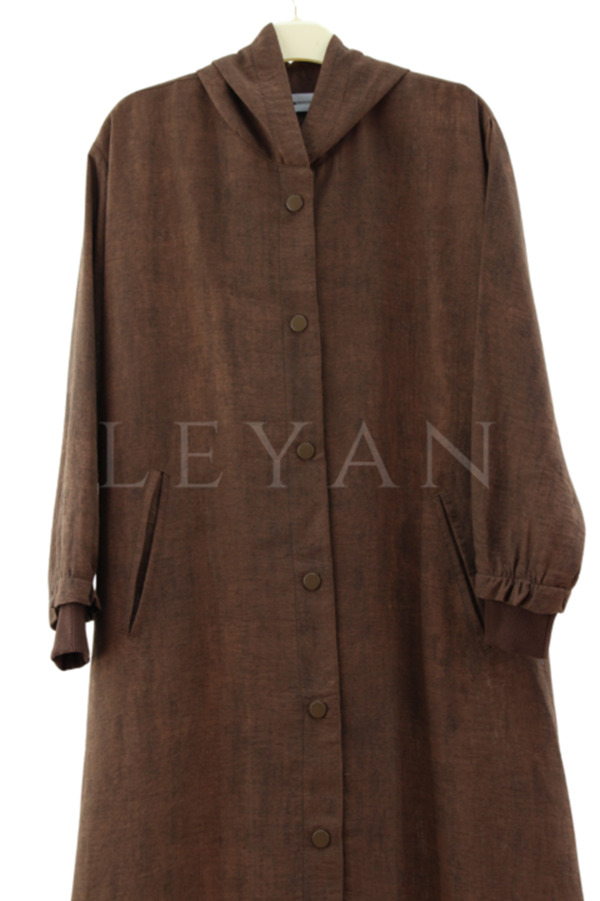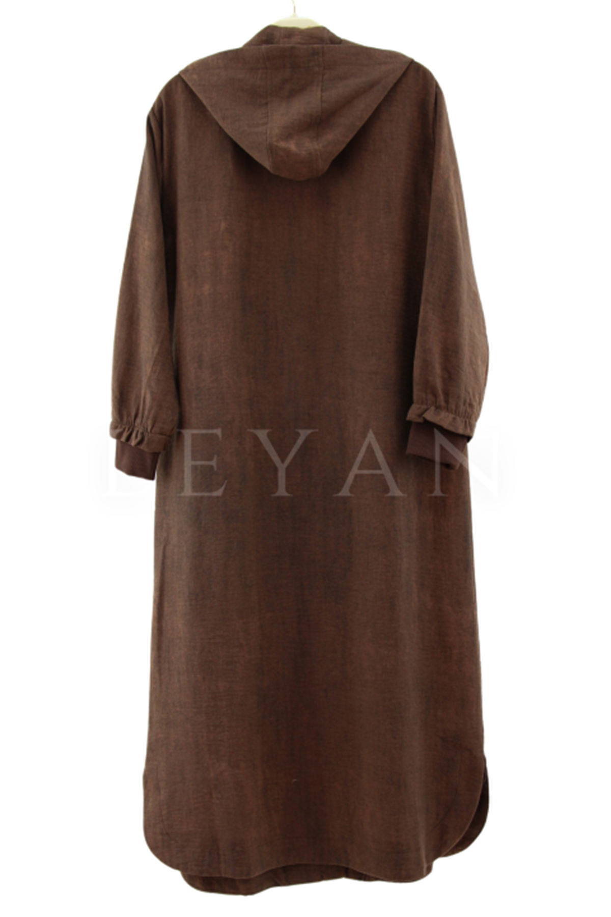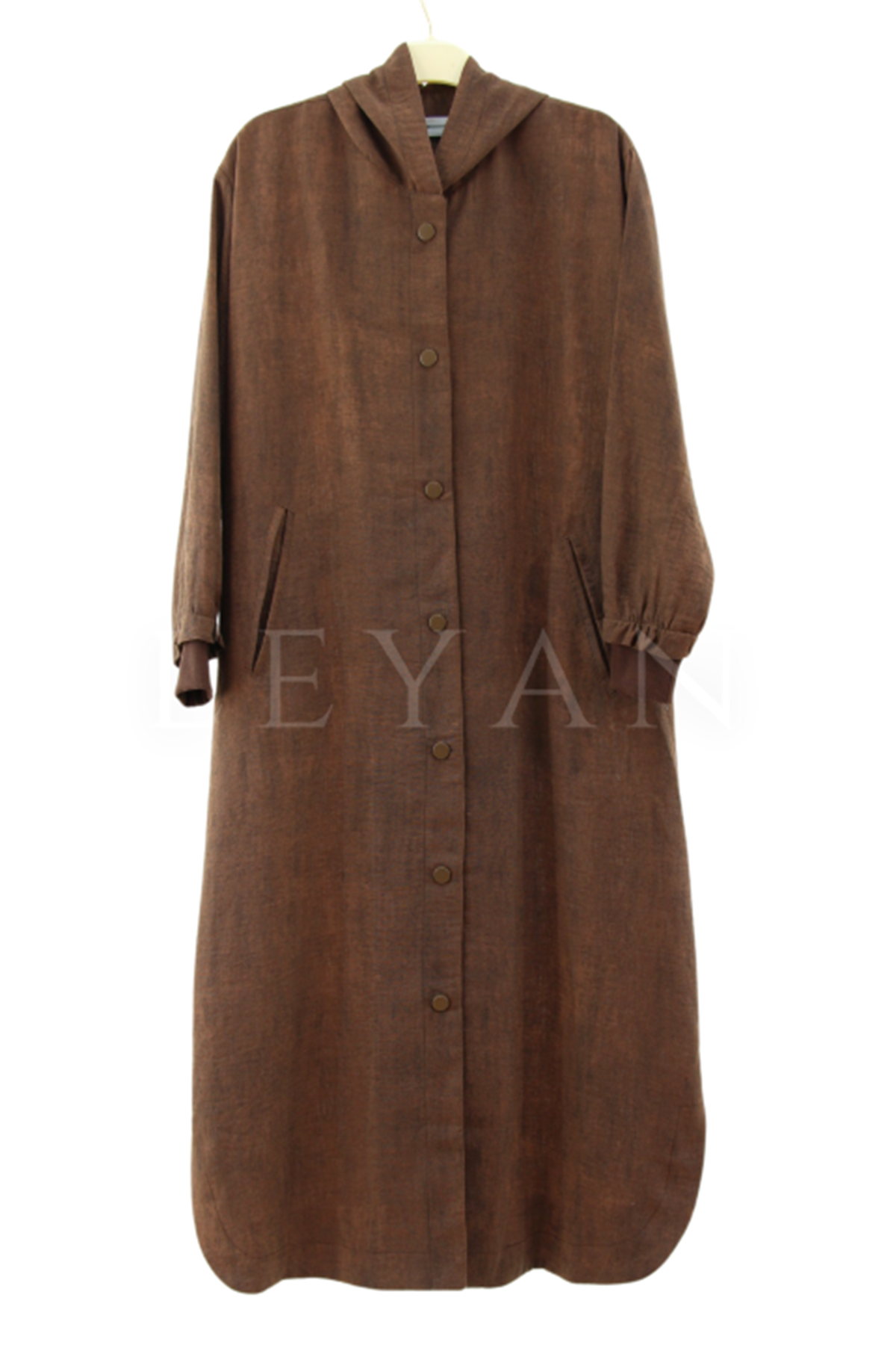 Kapşonlu Keten Kap- LYN03659 Siyah