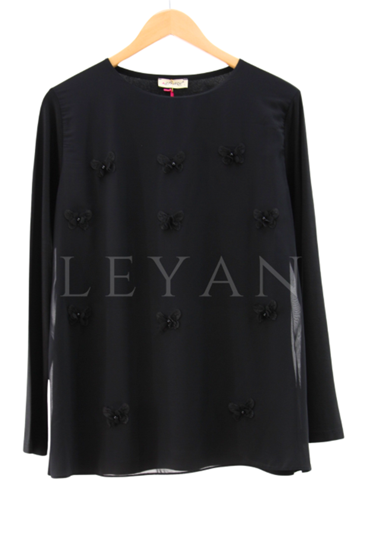 Kelebek Detaylı Şifonlu Bluz- LYN03847 Siyah