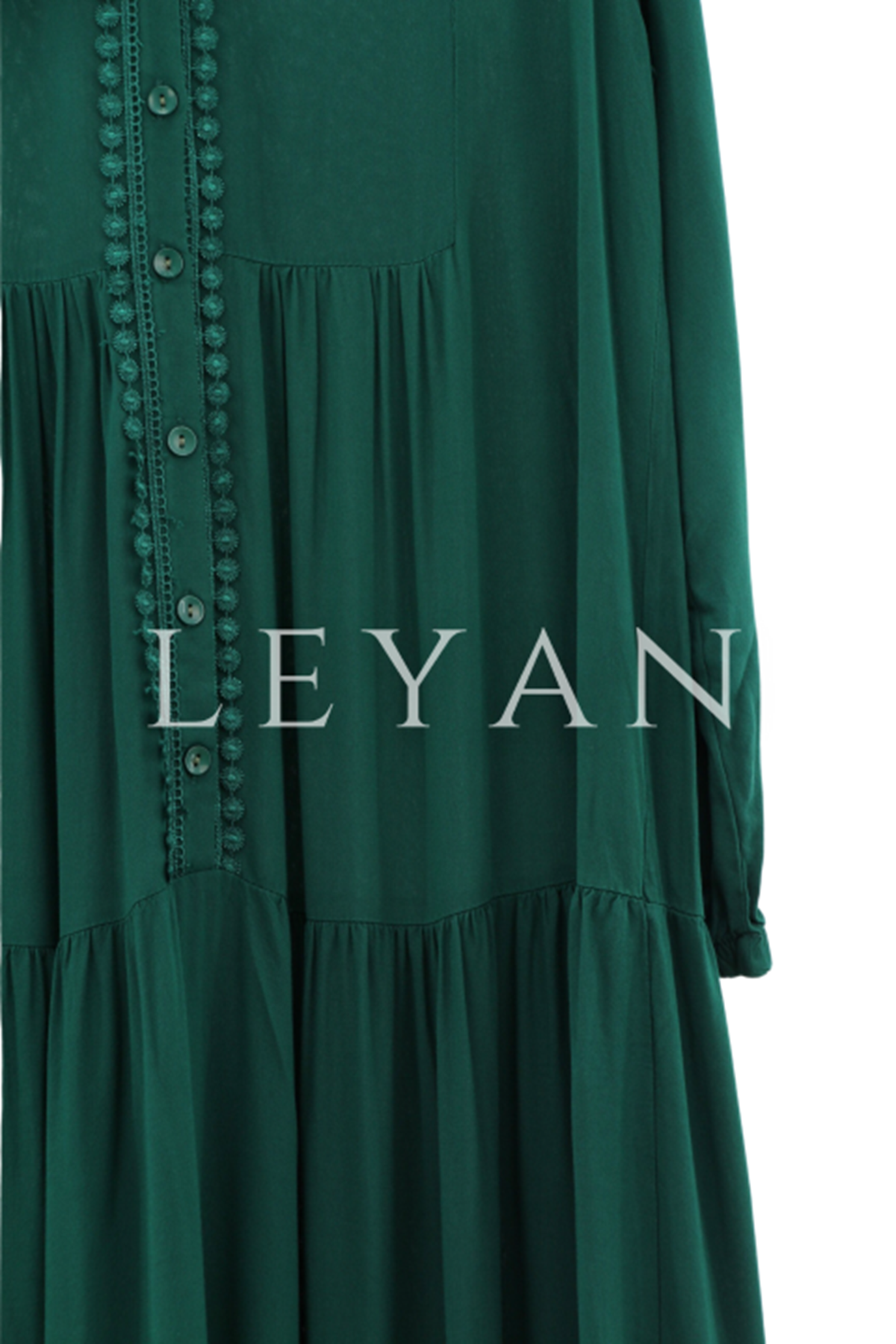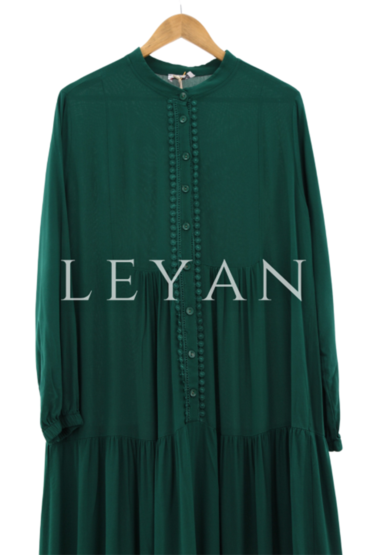 Küpür Detaylı Viscon Elbise- LYN01305 Zümrüt