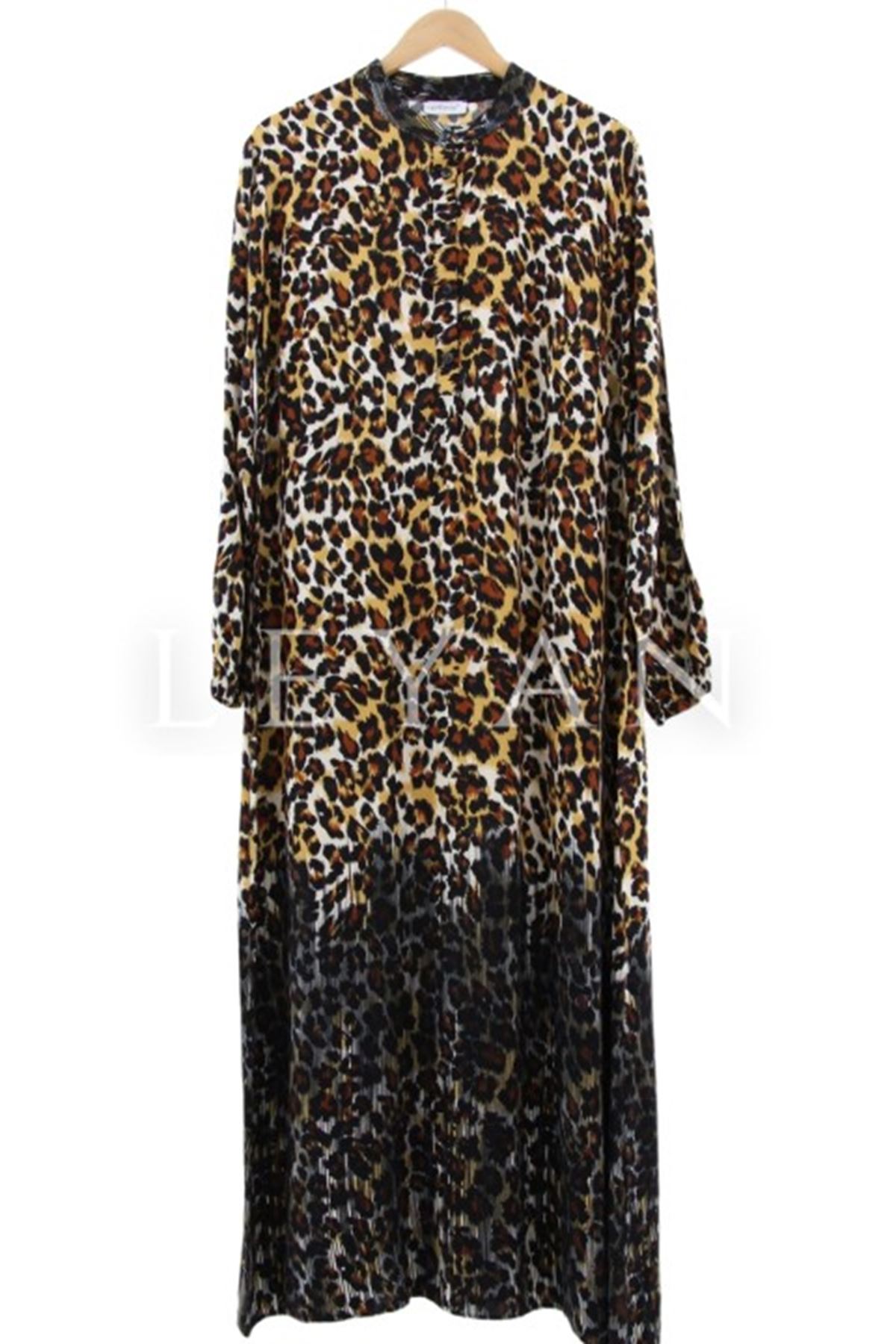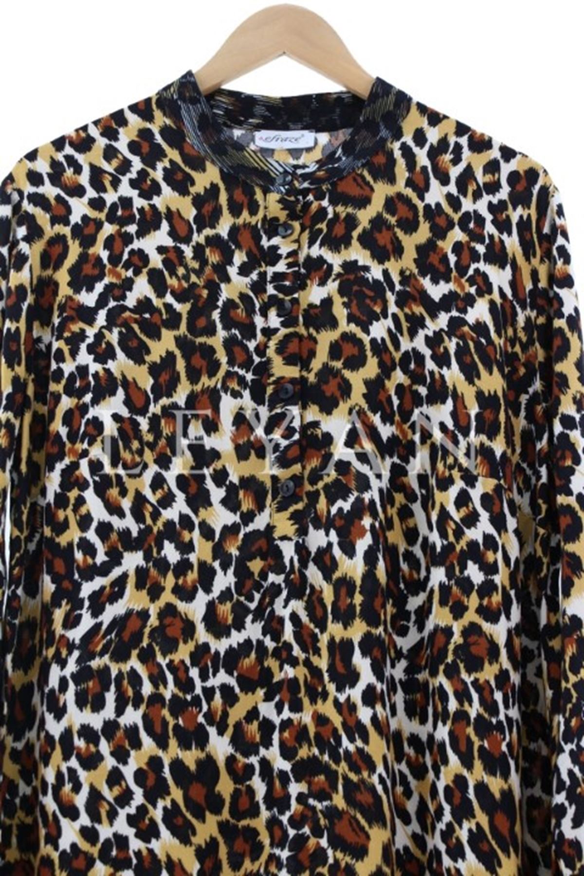 Dule Saten Desenli Gömlek Elbise- LYN03158 Oranj