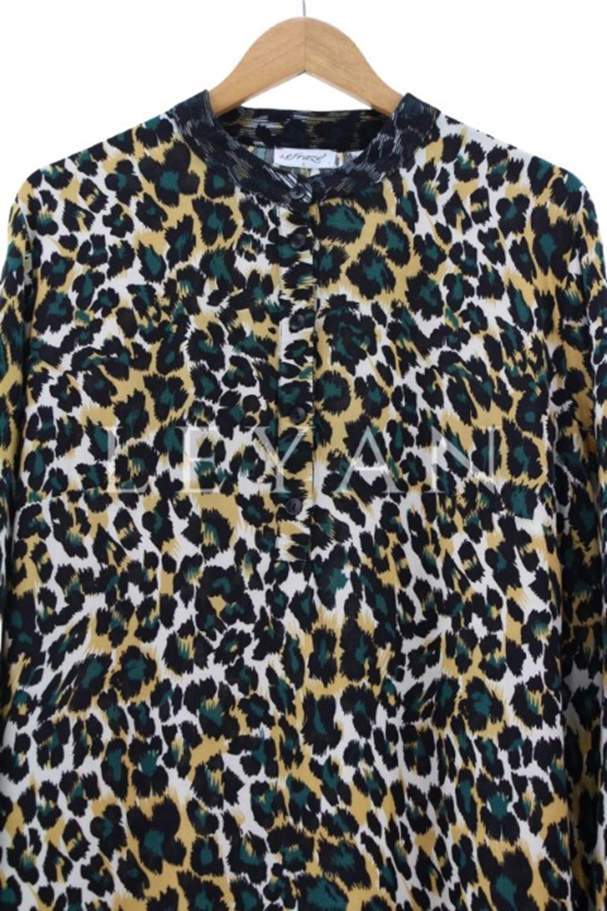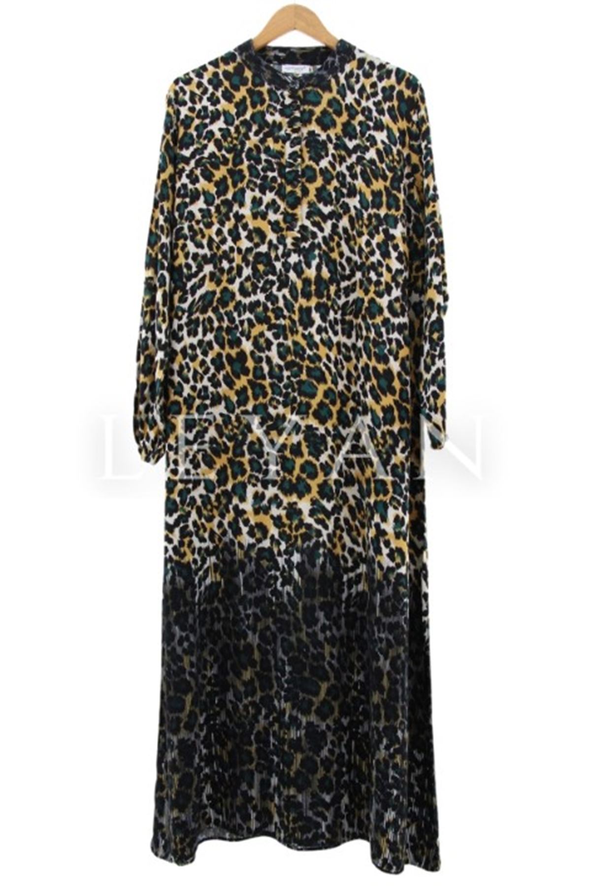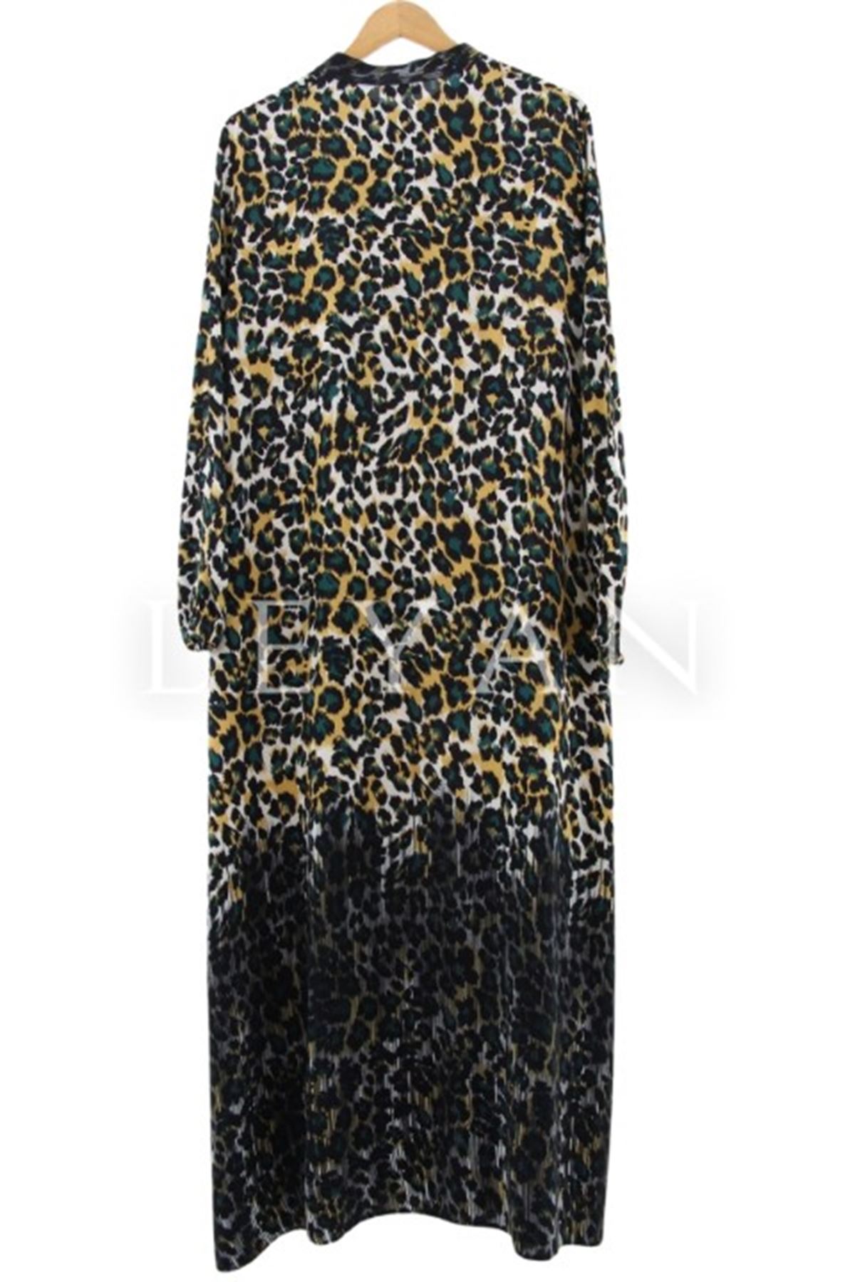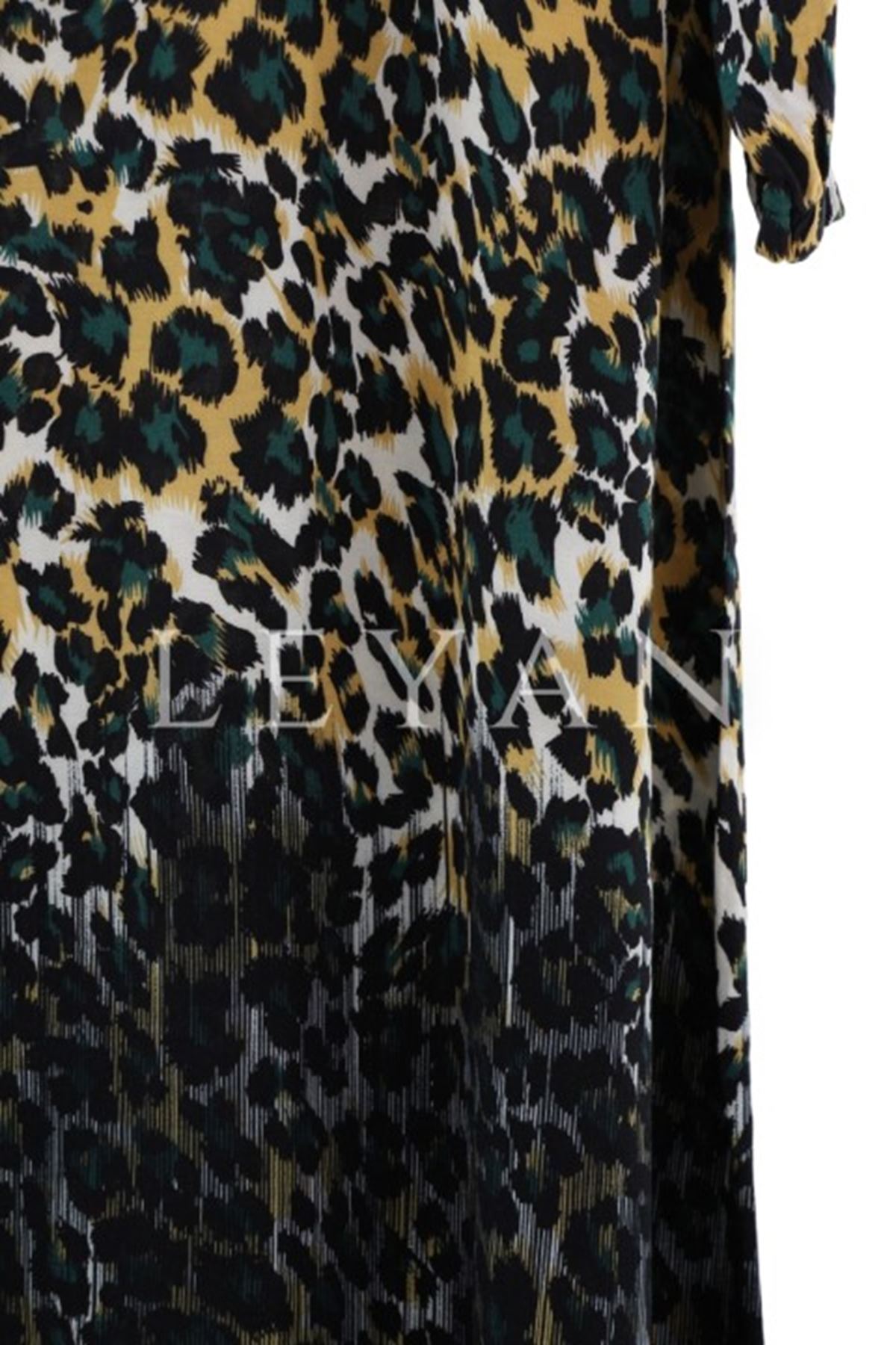 Leopar Desenli Elbise-LYN02540 Yeşil