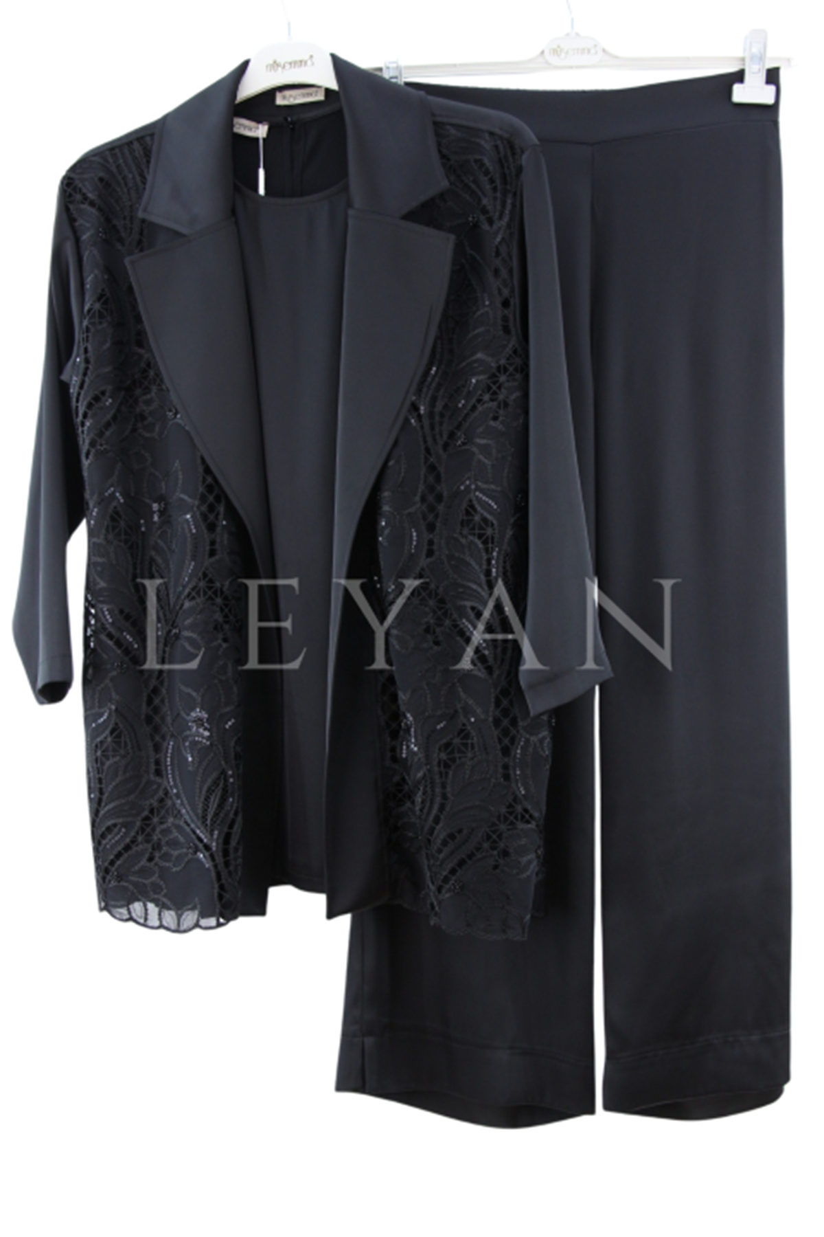 Dule Şifonlu Elbise Takım- LYN03776 Siyah