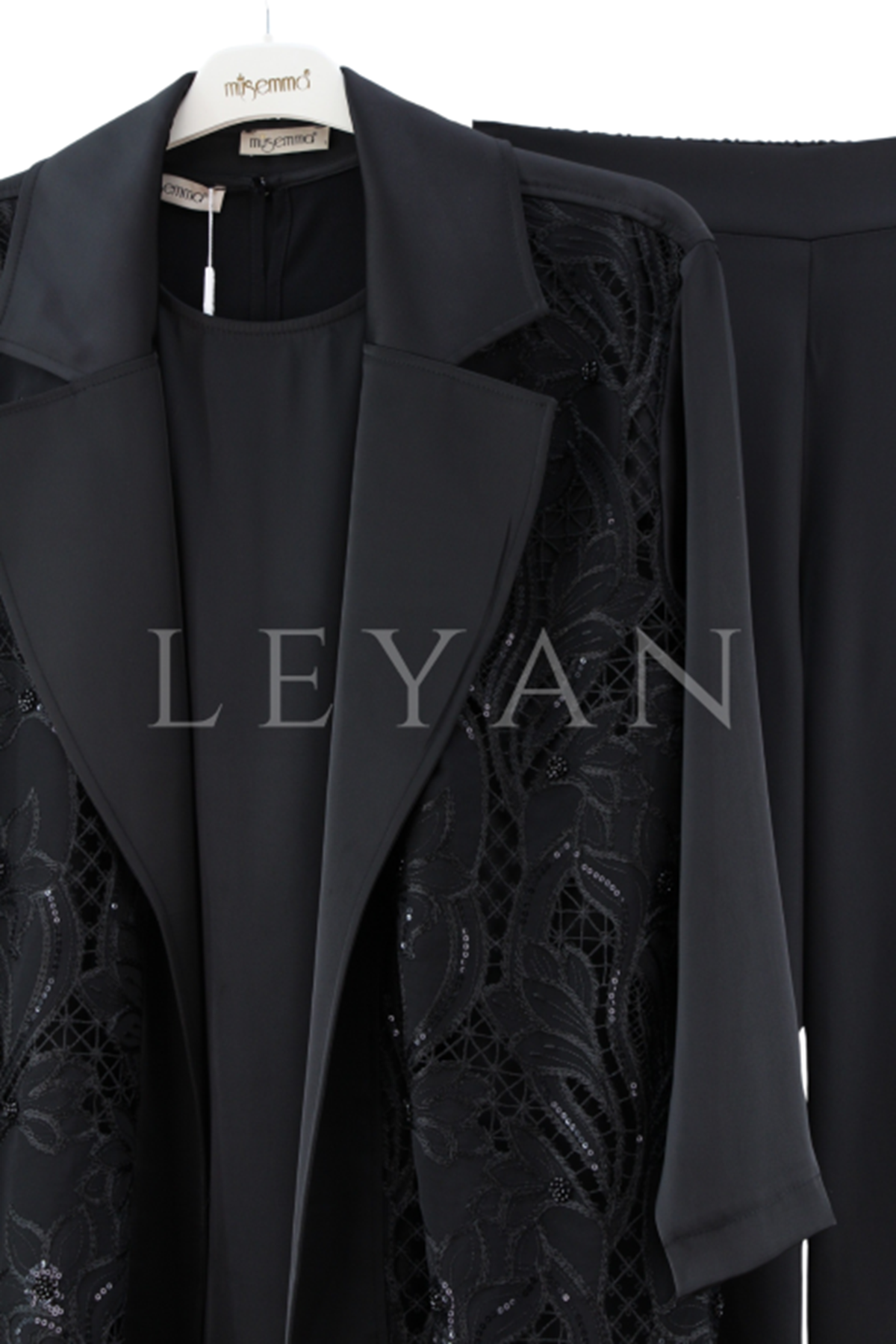 Behrem Boncuk İşlemeli Takım- LYN03904 Siyah
