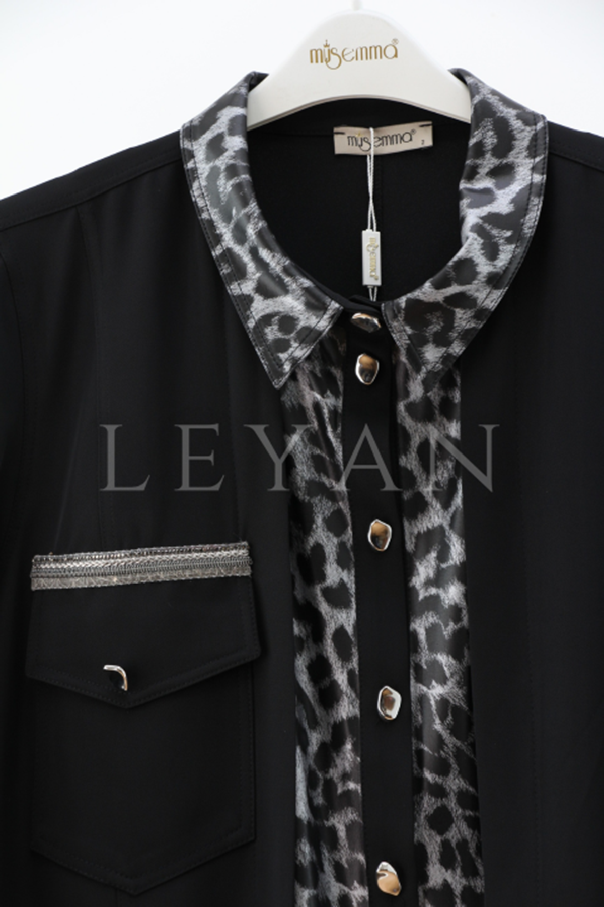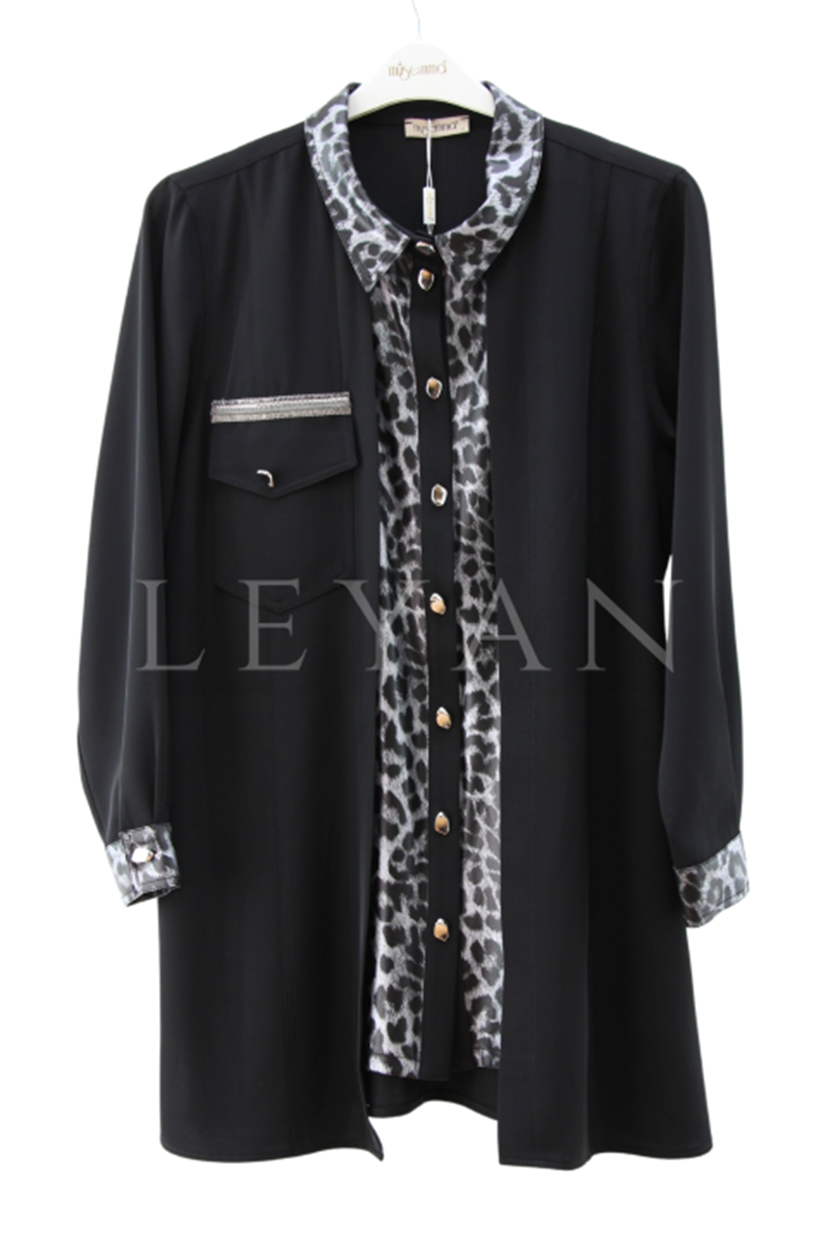 Nuss Leopar Desenli Merserize Tunik- LYN04069 Siyah