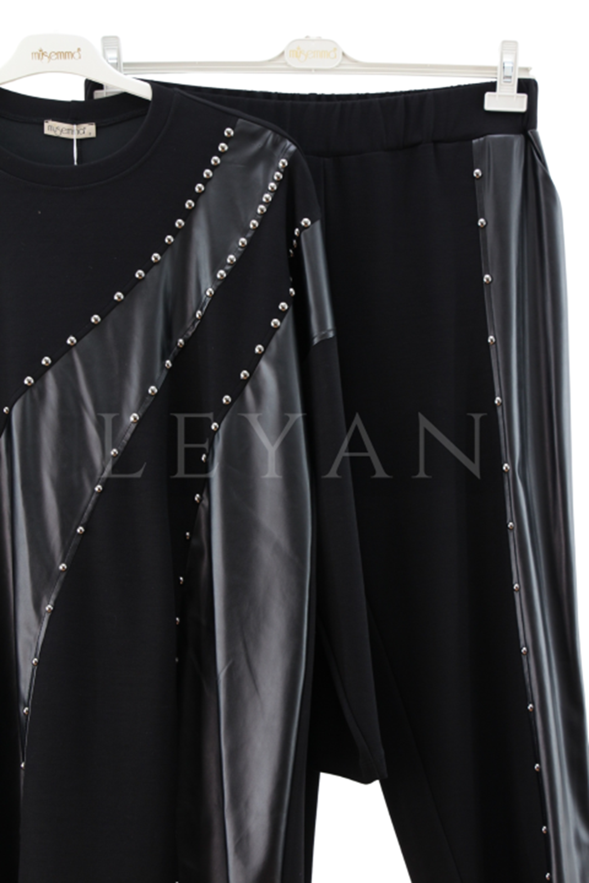 Tığ Triko Nakışlı Pantolonlu Takım- LYN03807 Bej
