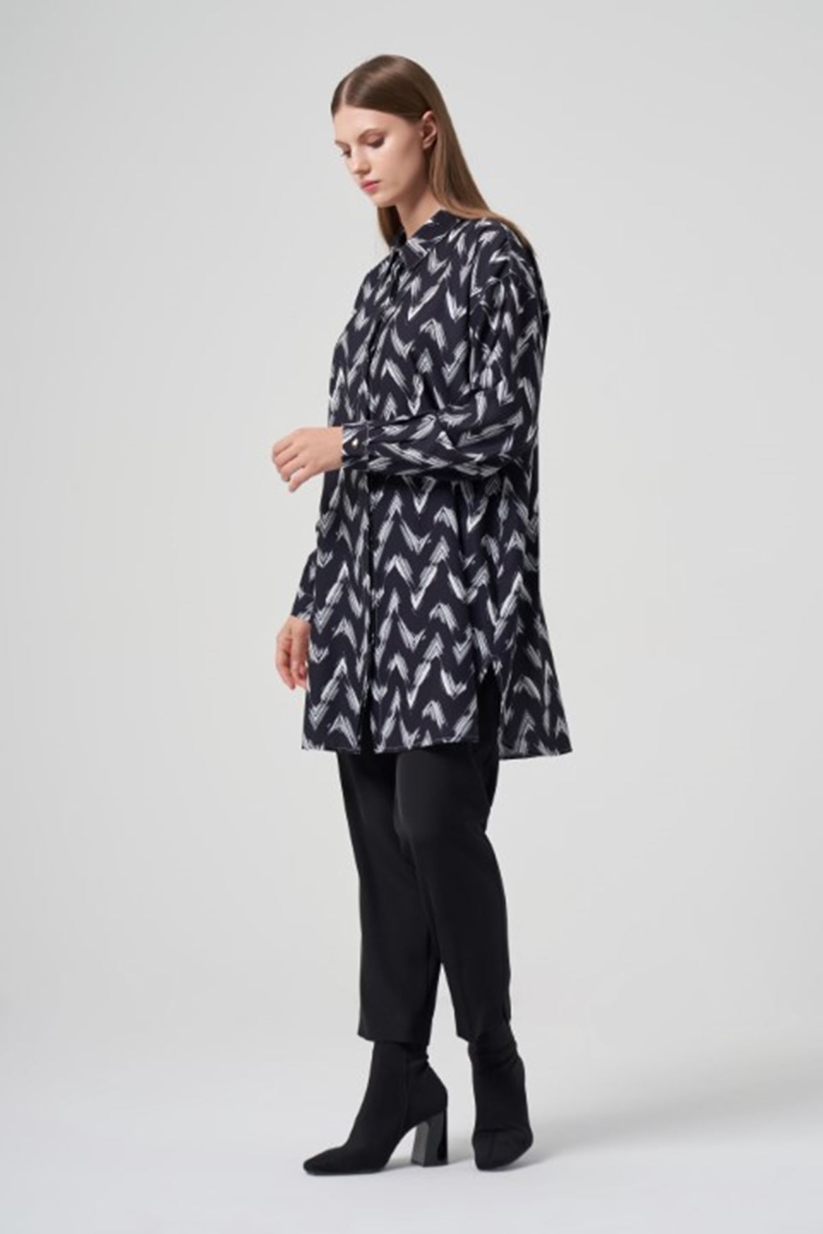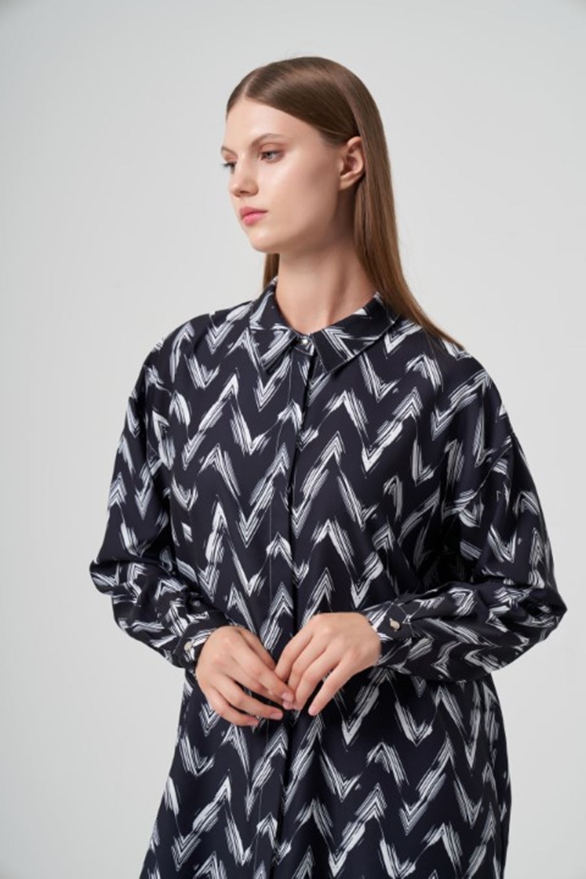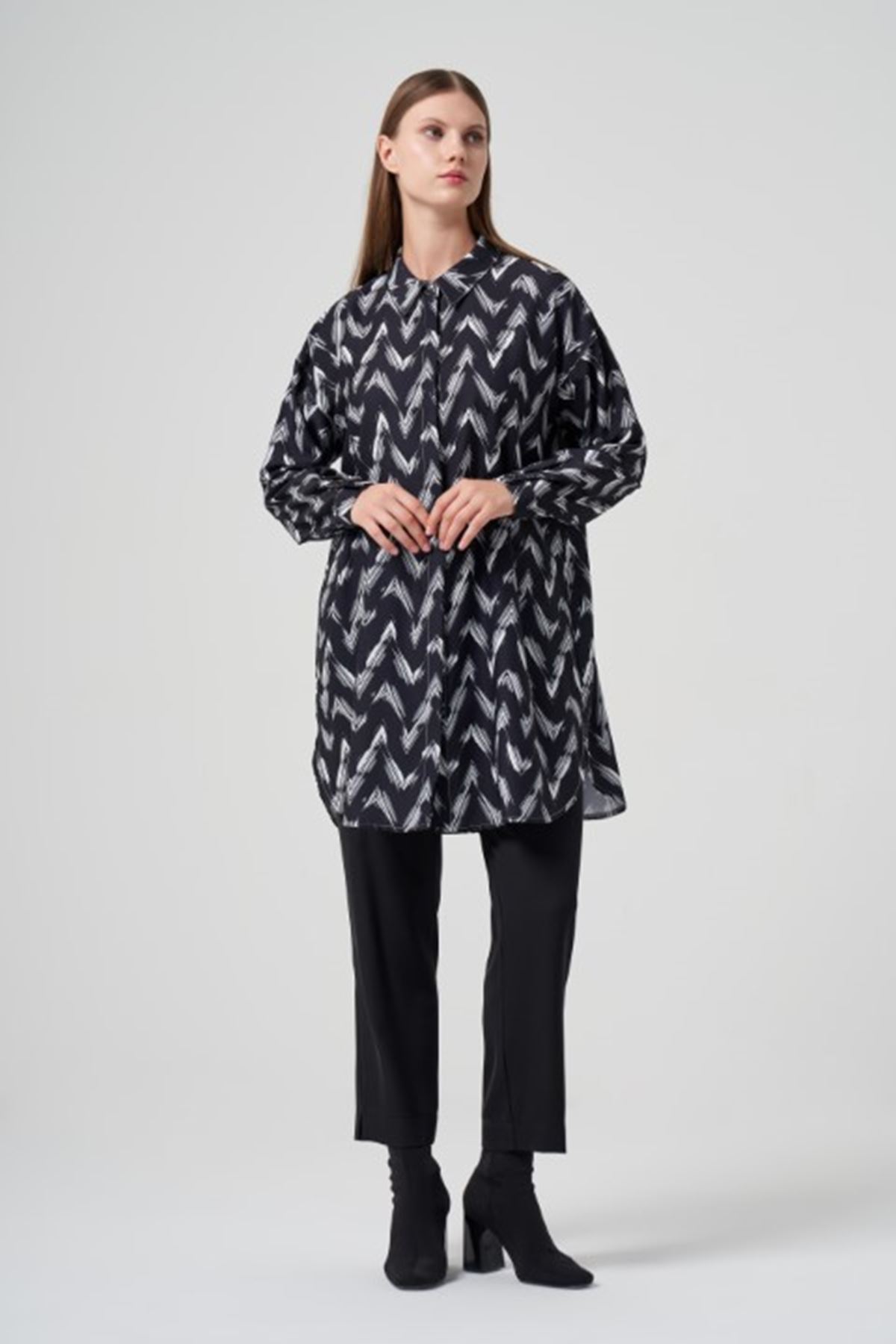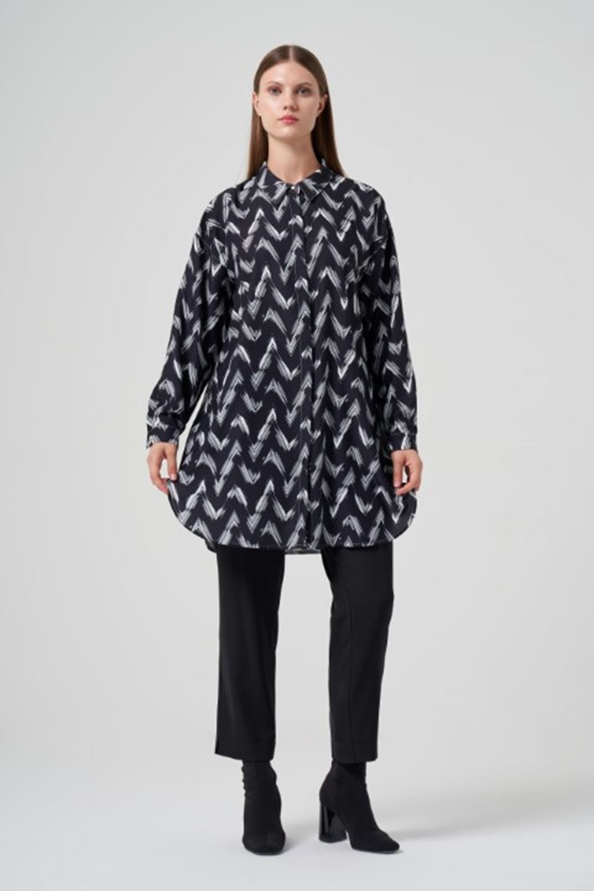 Müsemma Sade Gömlek- LYN03049 Siyah-Beyaz