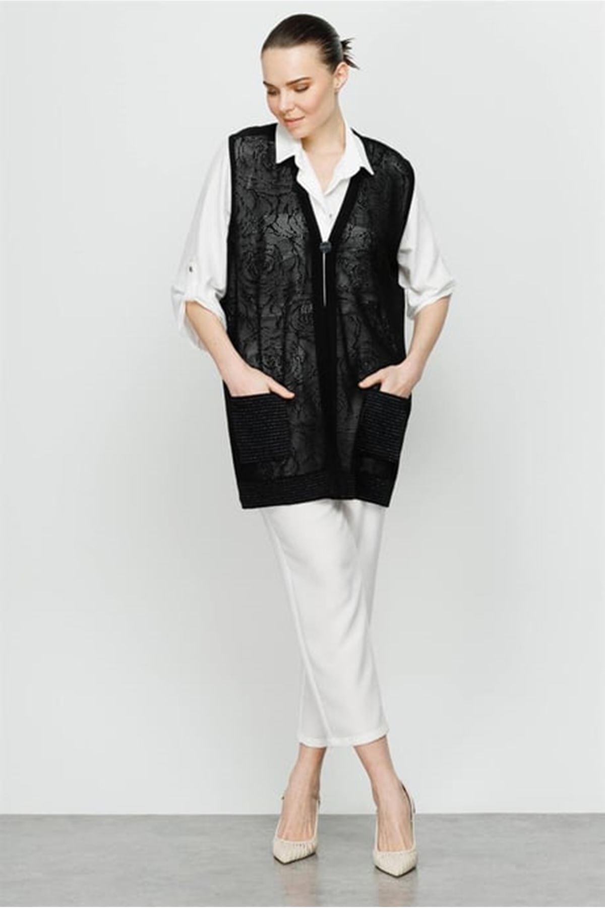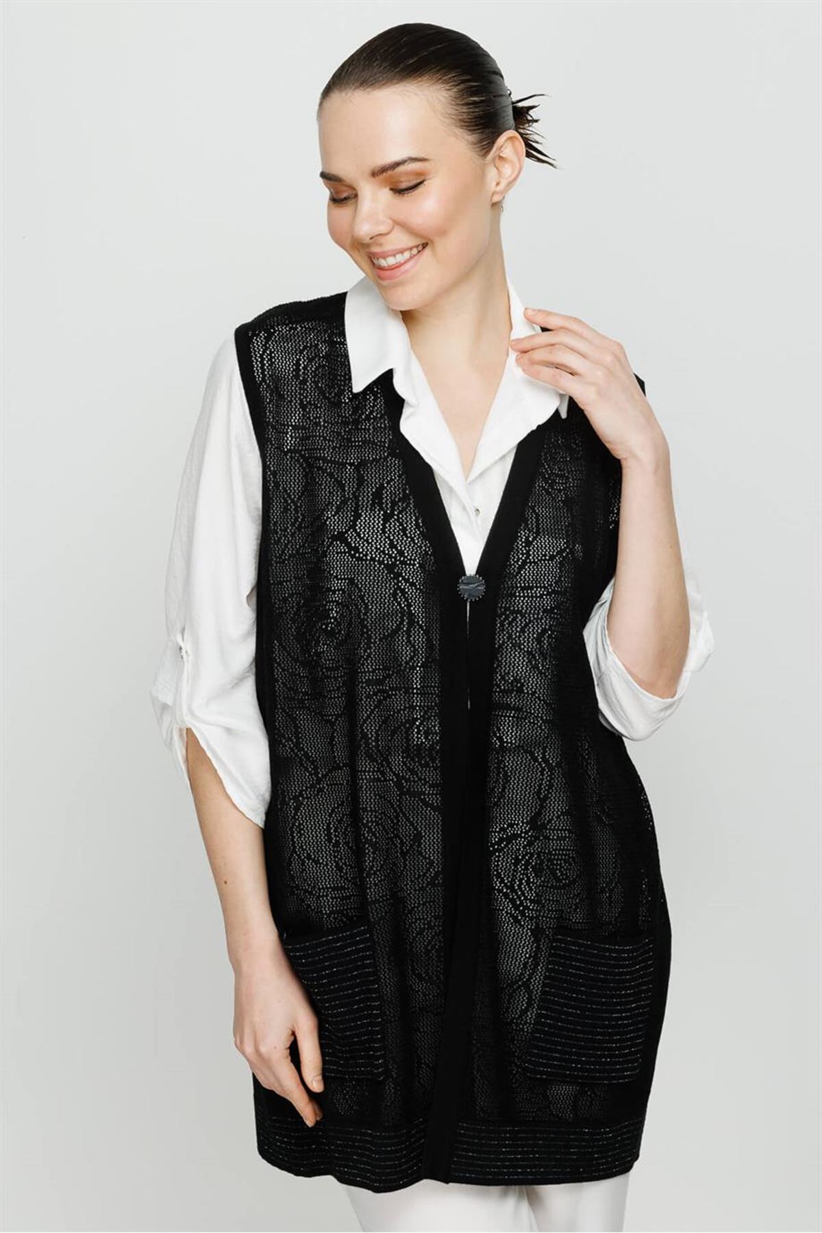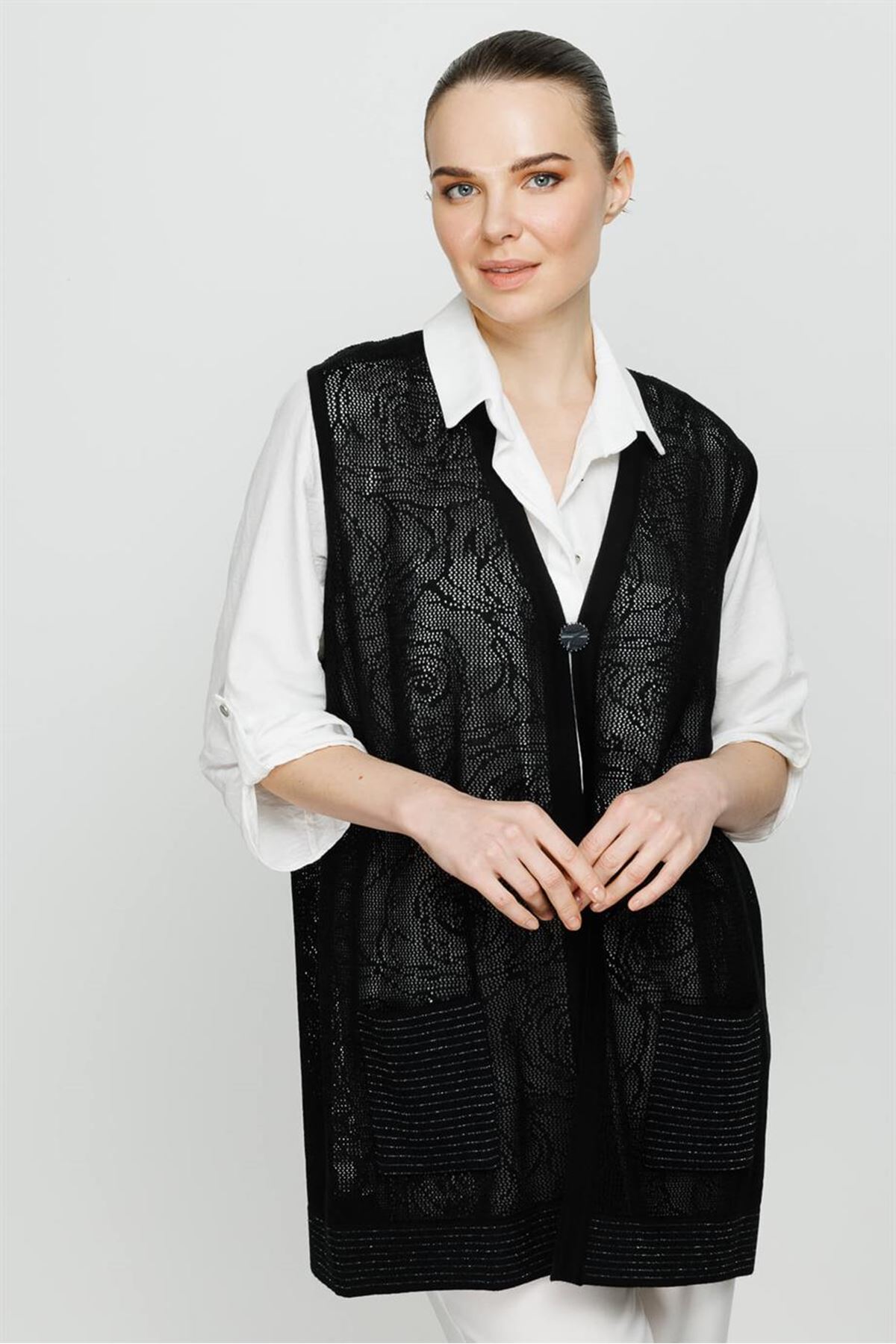 Mutlu Ertan Uzun Verev Yelek- LYN04050 Siyah