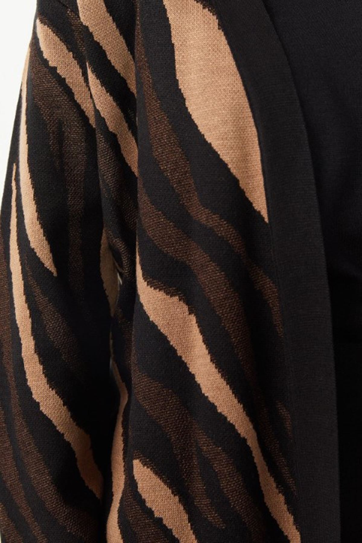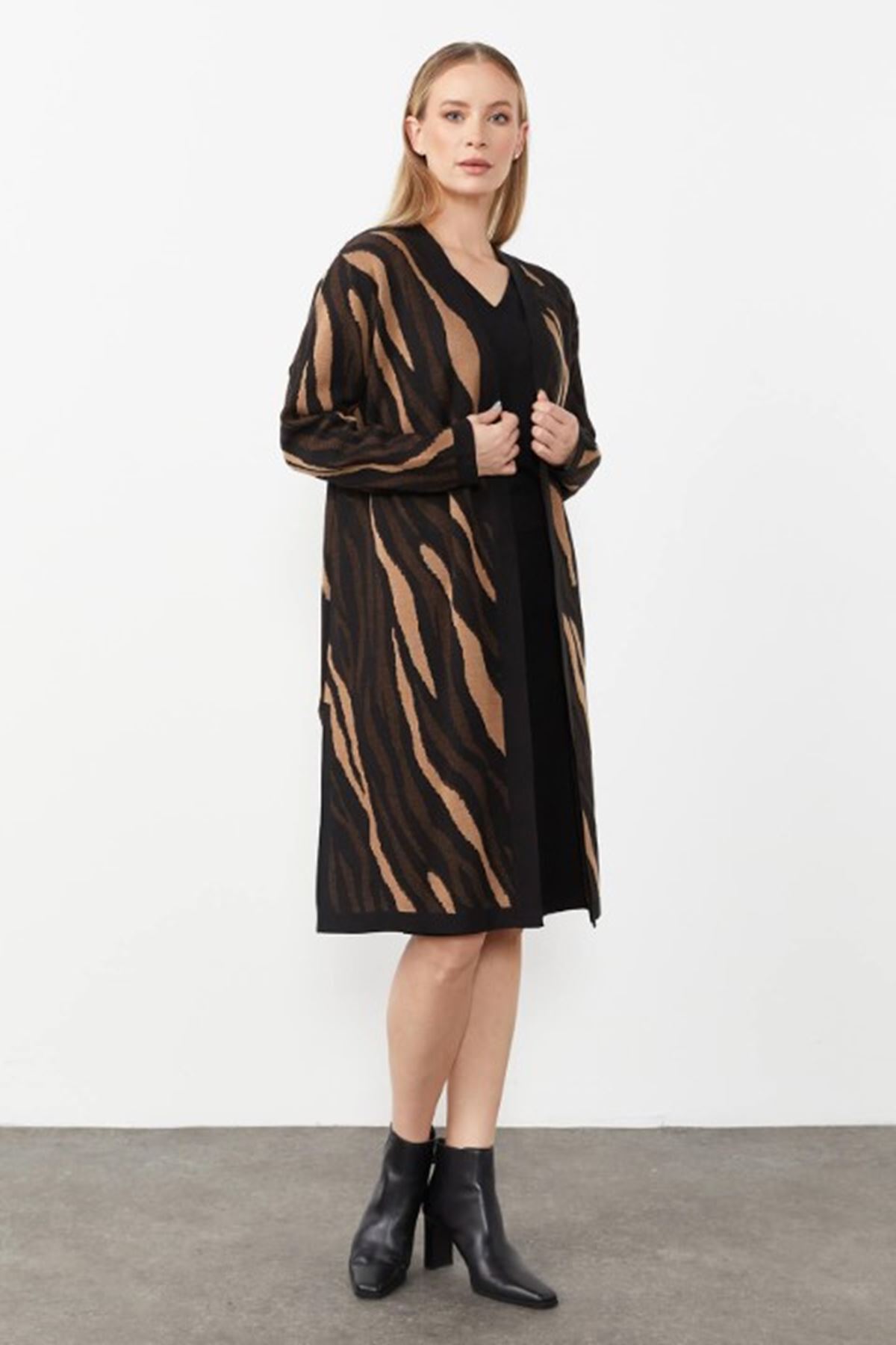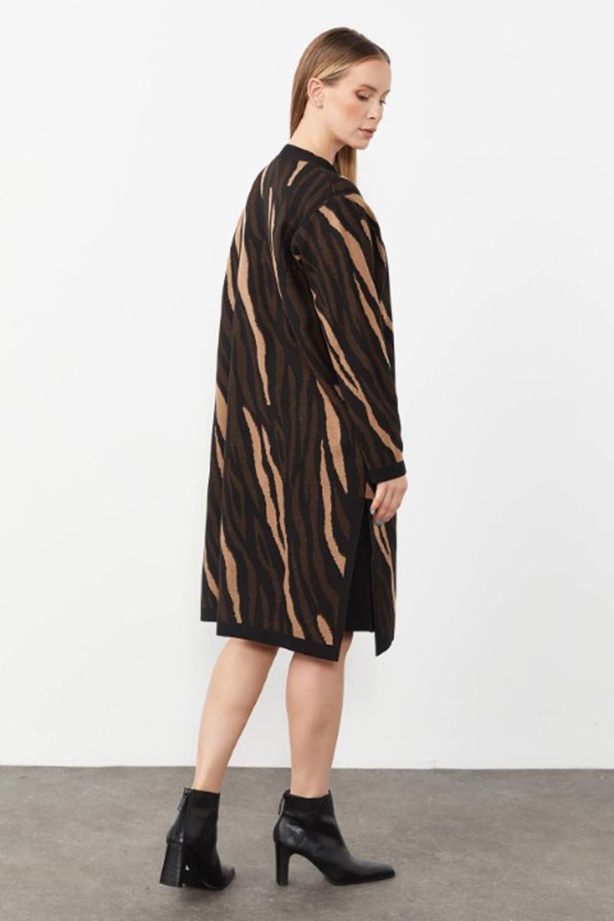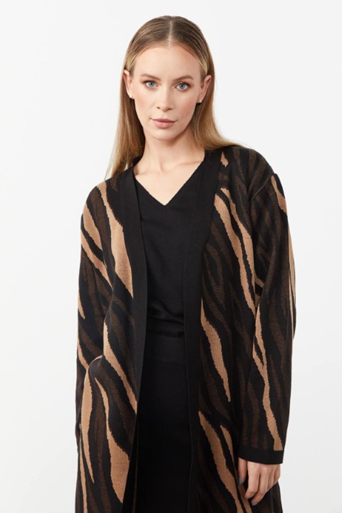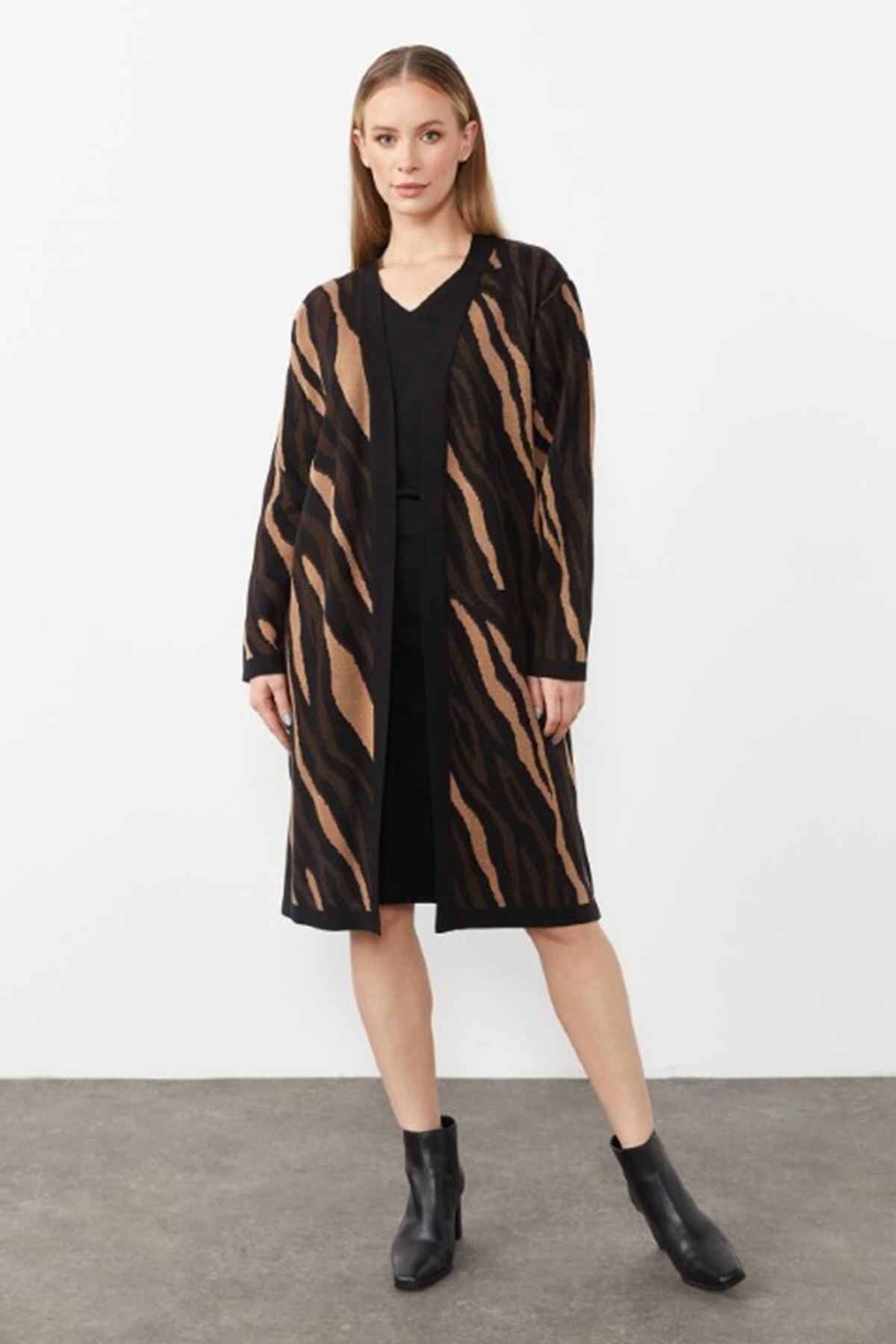 Mutlu Ertan Desenli Yırtmaç Detaylı Hırka- LYN02805 Siyah-Camel