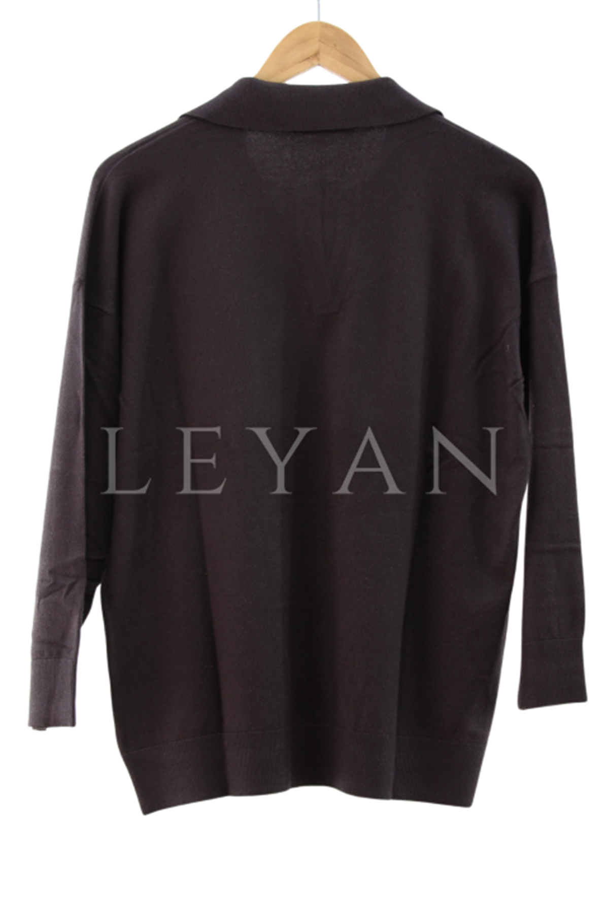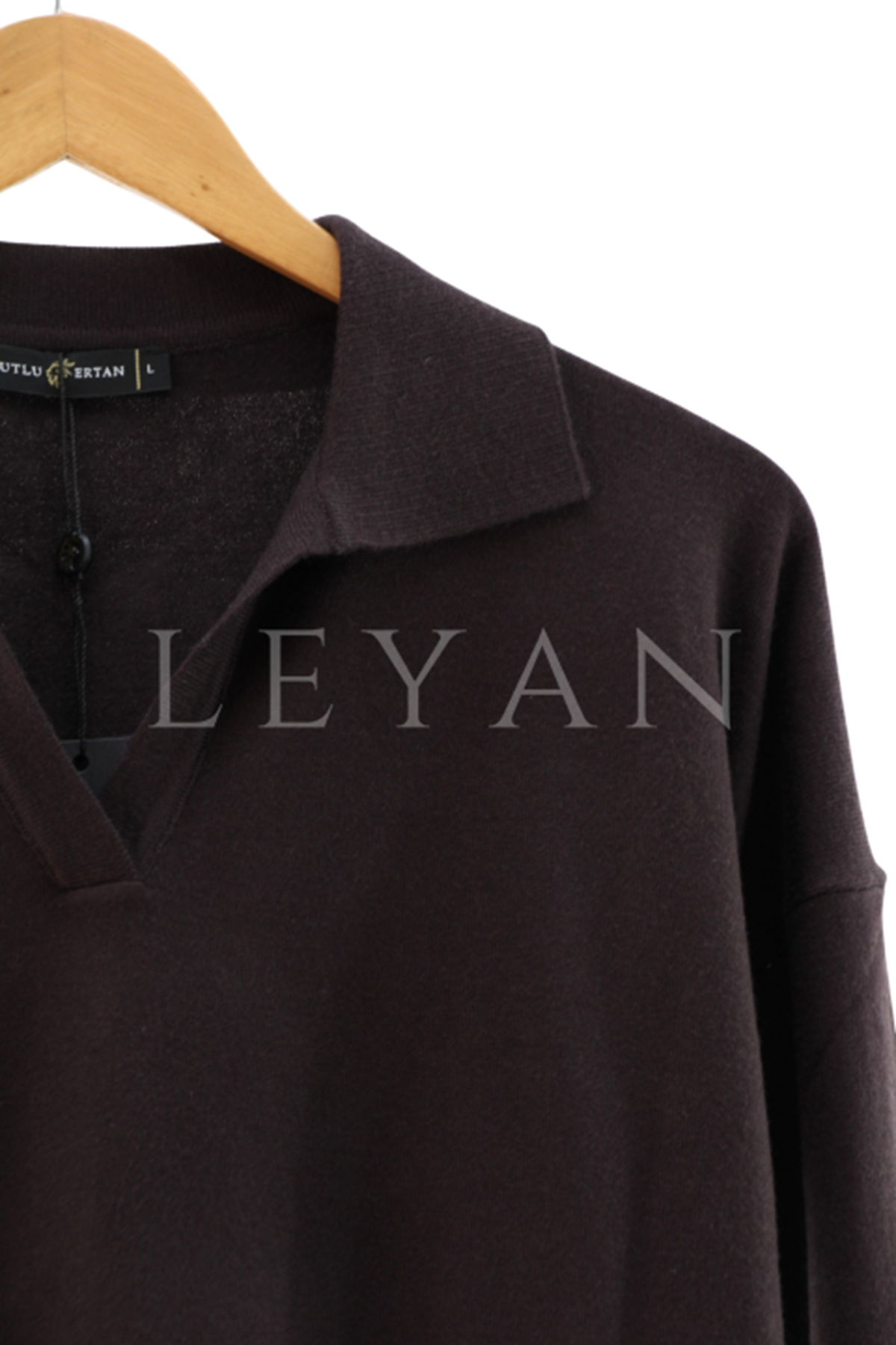 Mutlu Ertan Gömlek Yaka Triko Bluz- LYN02796 Kahve